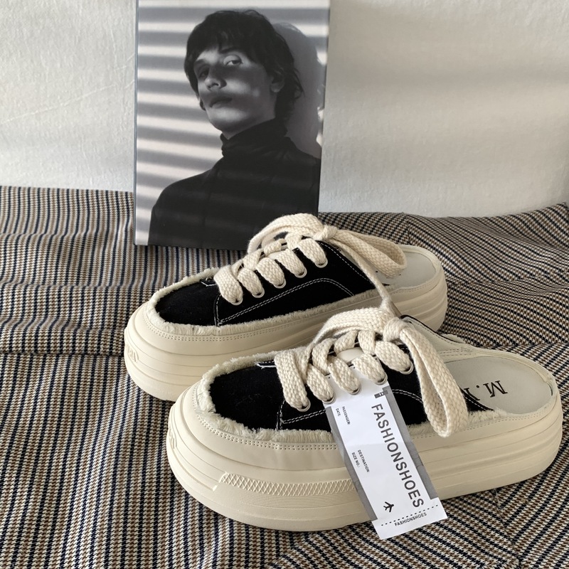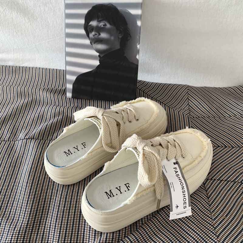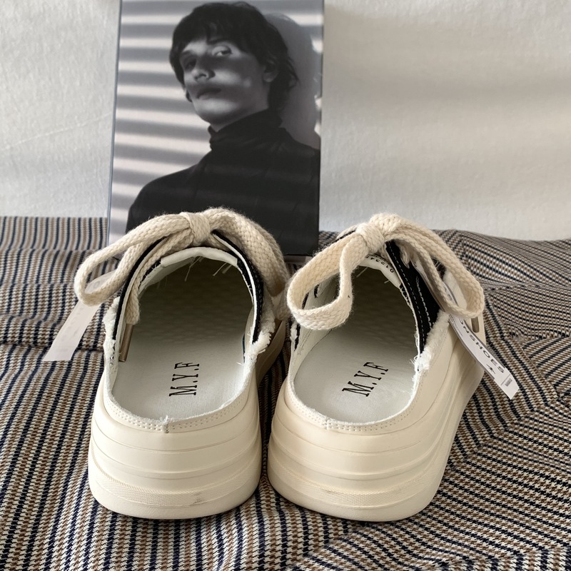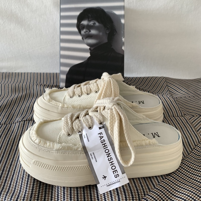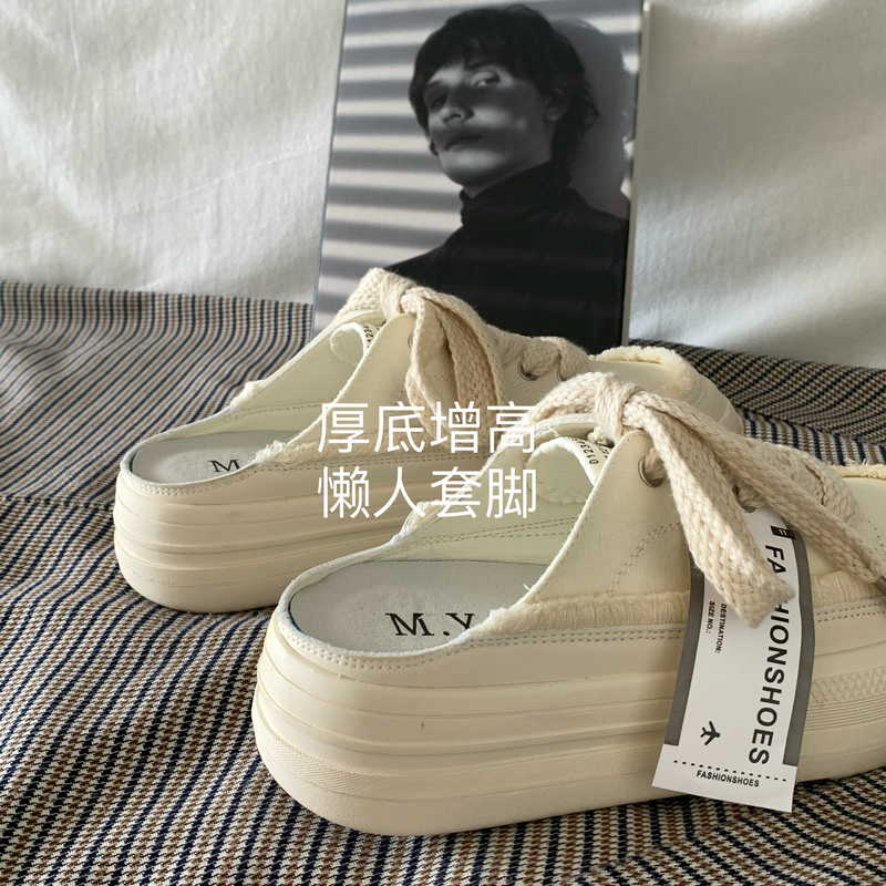 SUNTEK厚底增高懒人一脚蹬半拖鞋女夏季外穿2023超火百搭小白鞋板鞋