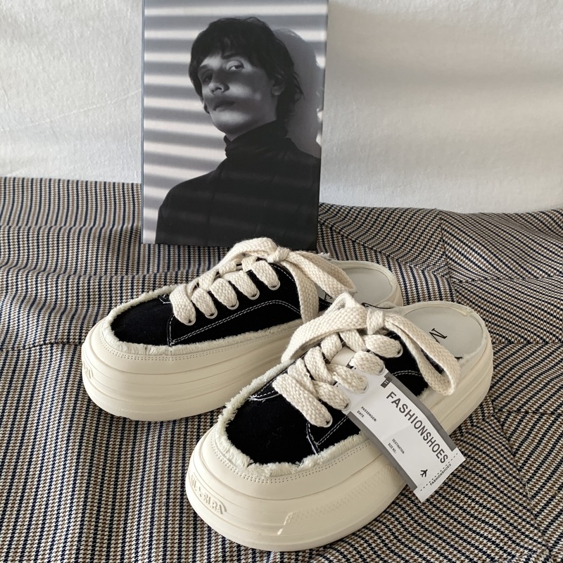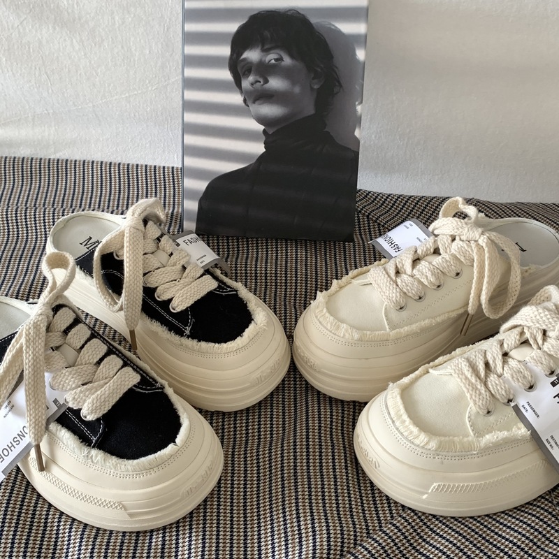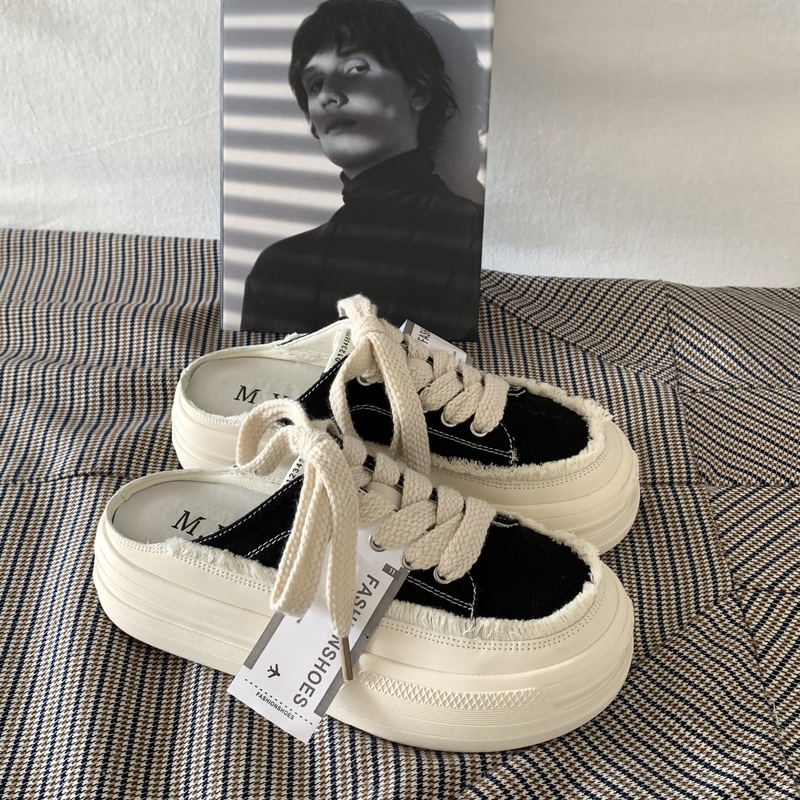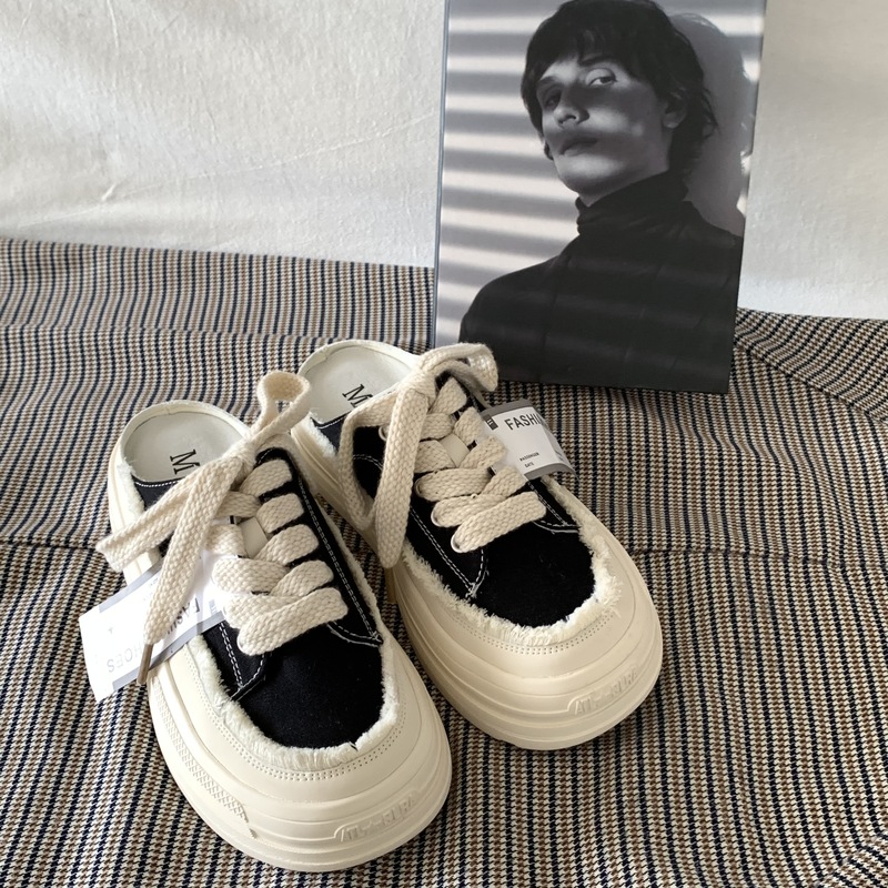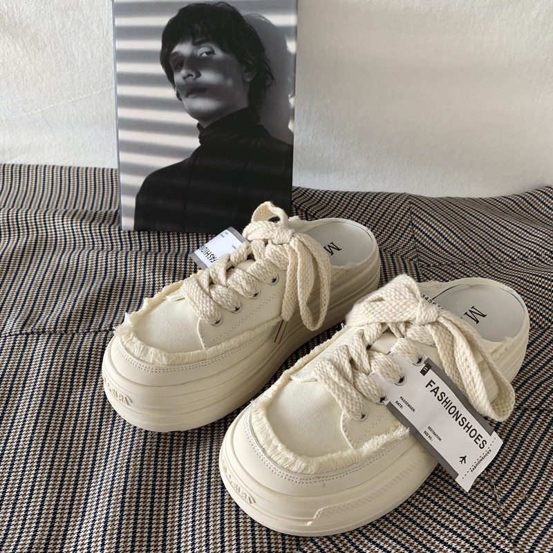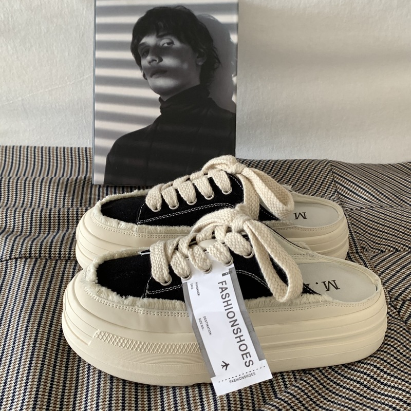 SUNTEK厚底增高懒人一脚蹬半拖鞋女夏季外穿2023超火百搭小白鞋板鞋