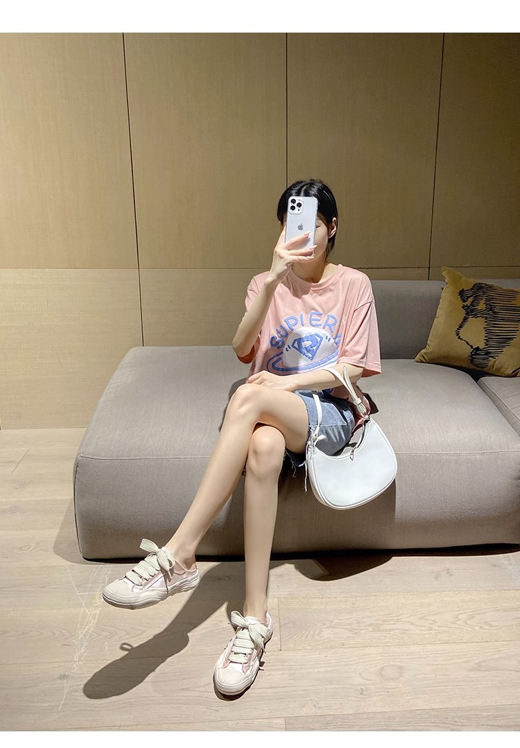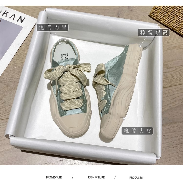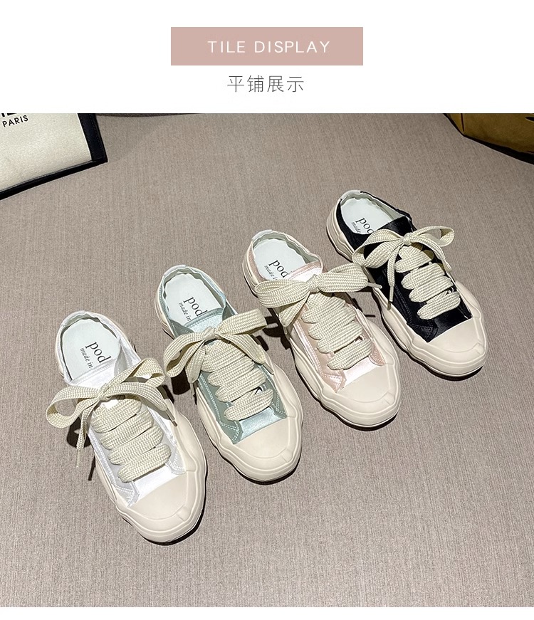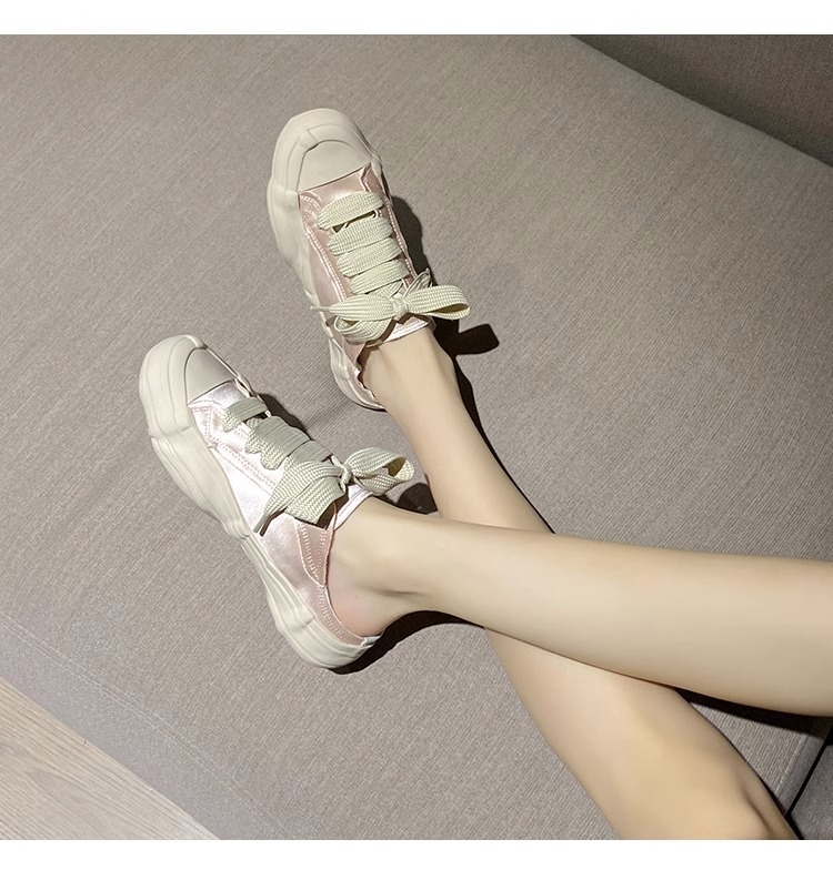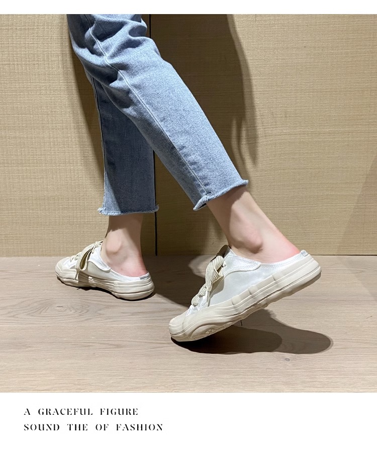 SUNTEK厚底增高懒人一脚蹬半拖鞋女夏季外穿2023超火百搭小白鞋板鞋