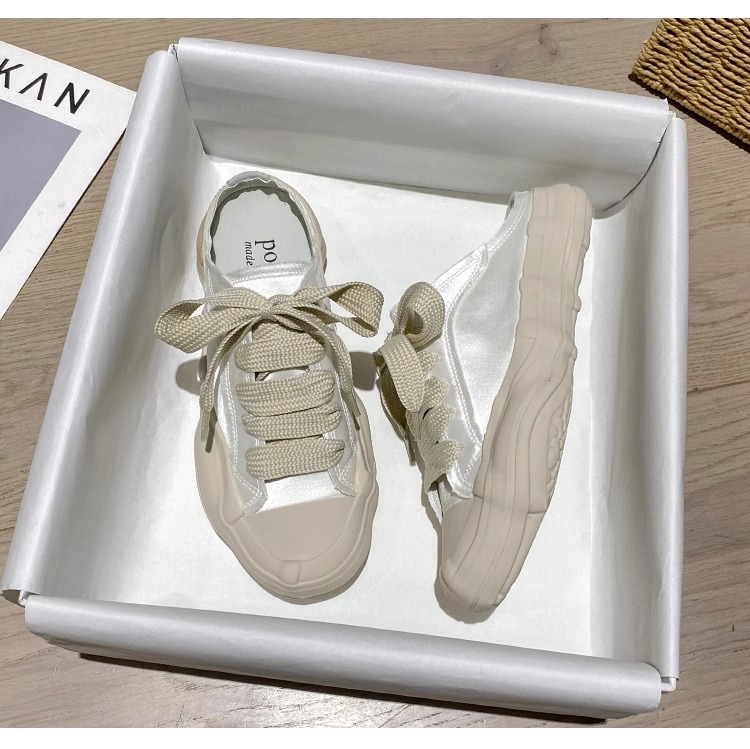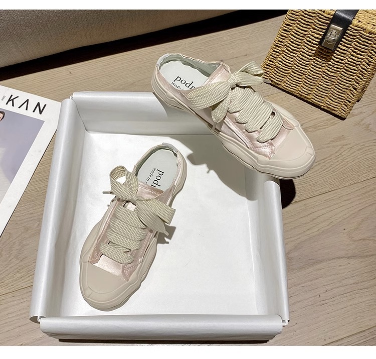 SUNTEK绸缎小白鞋女夏包头半拖鞋鞋厚底小众设计感一脚蹬休闲懒人鞋