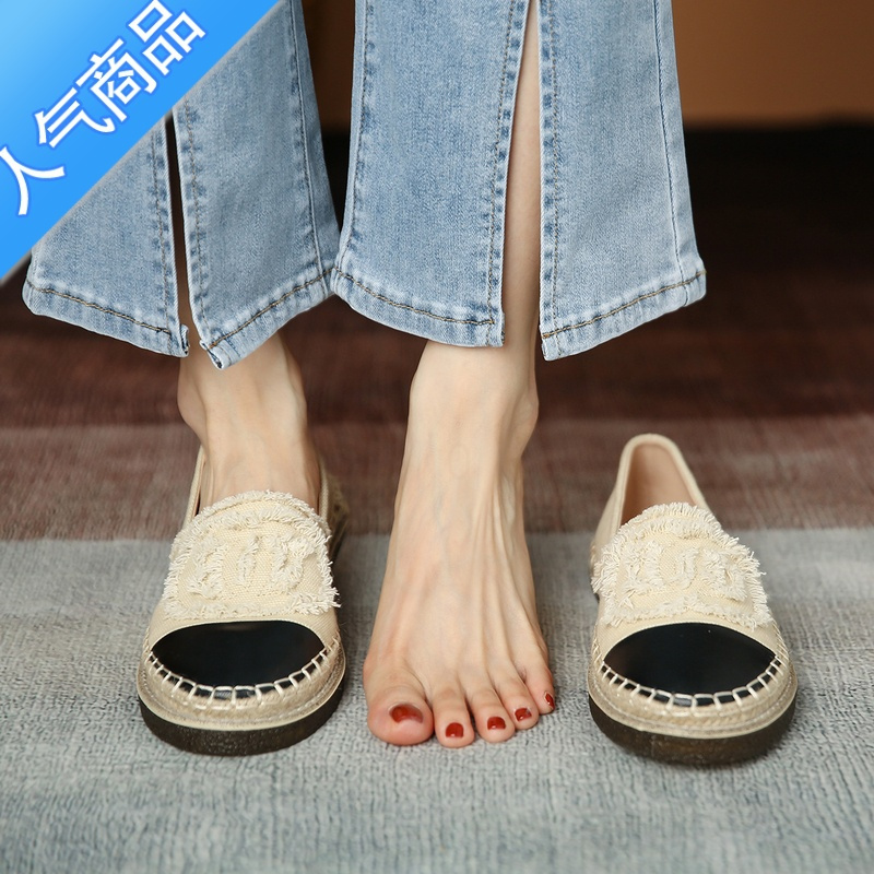 SUNTEK小香风渔夫鞋帆布女鞋新款夏季包头半拖鞋平底懒人一脚蹬单鞋
