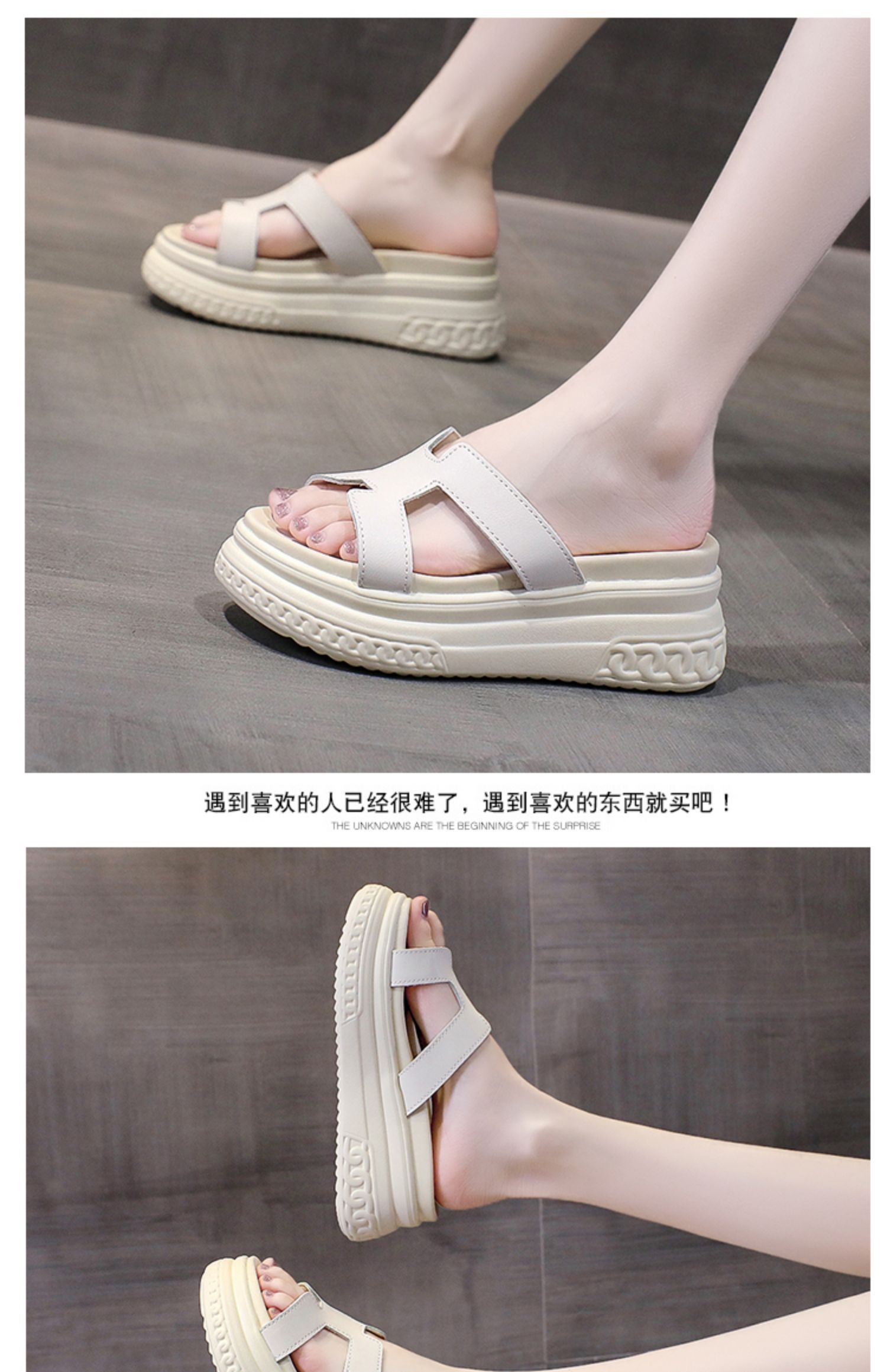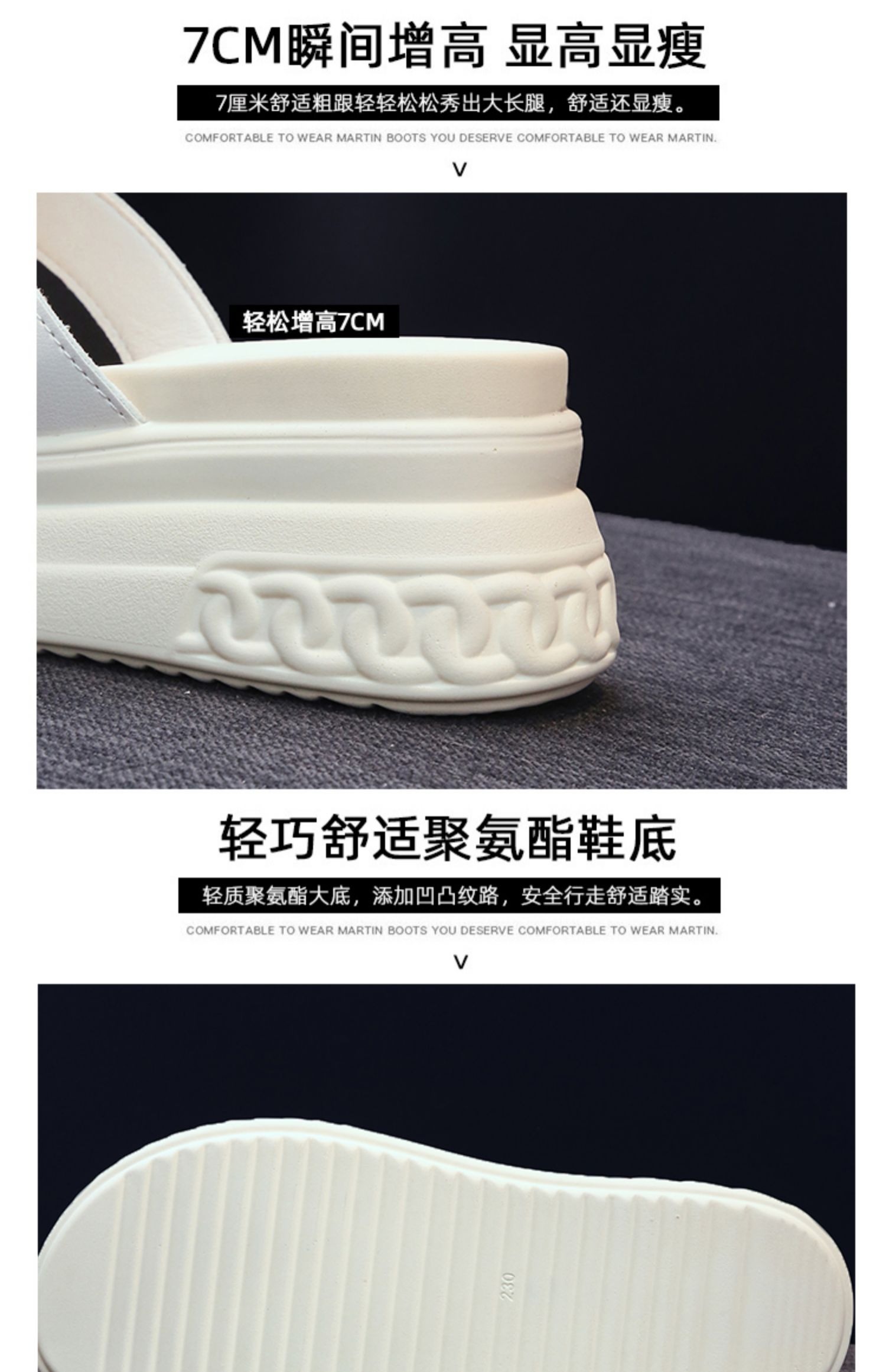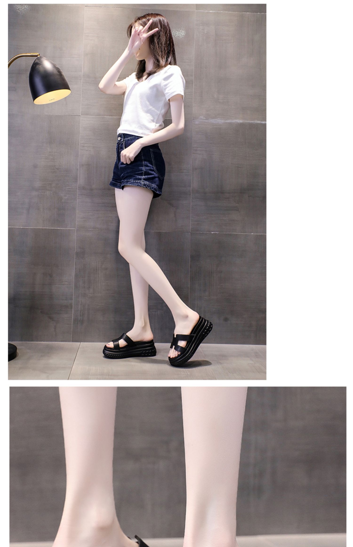 SUNTEK厚底外出穿一字凉拖夏季新款时尚松糕增高跟7cm防滑凉拖鞋女