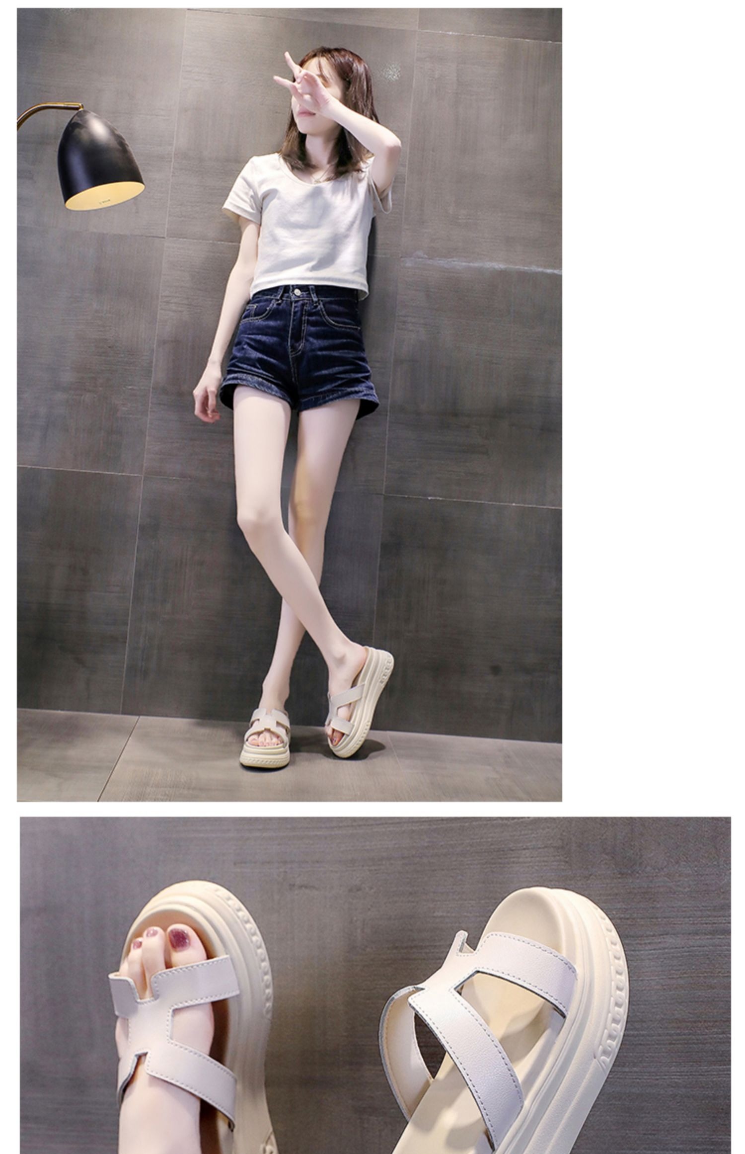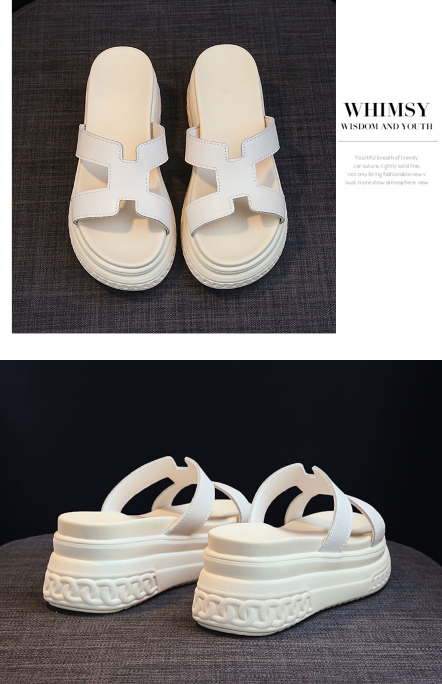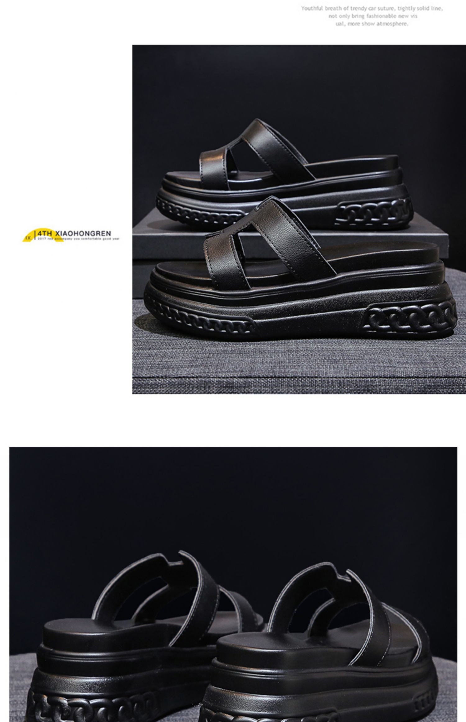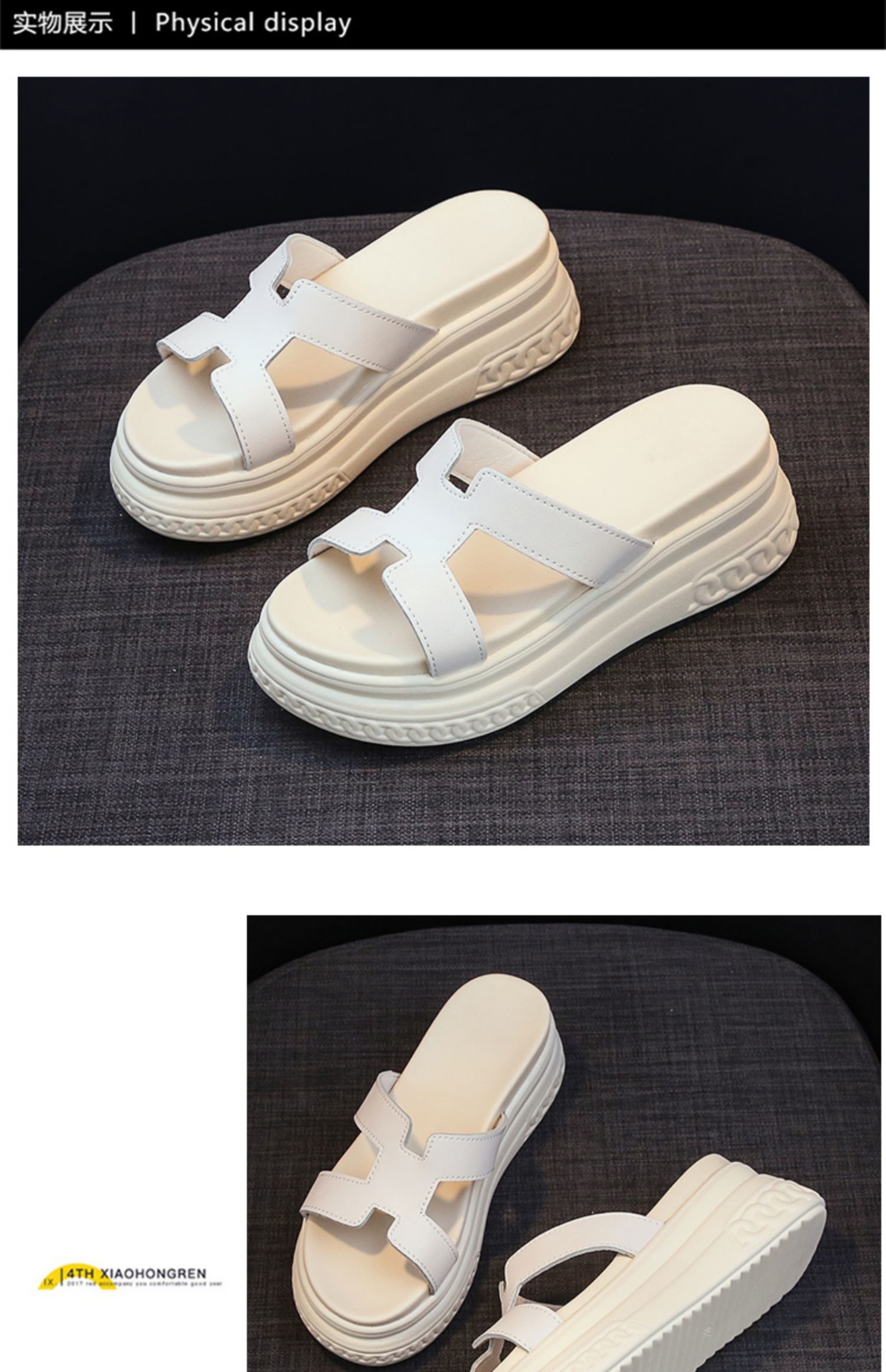 SUNTEK厚底外出穿一字凉拖夏季新款时尚松糕增高跟7cm防滑凉拖鞋女
