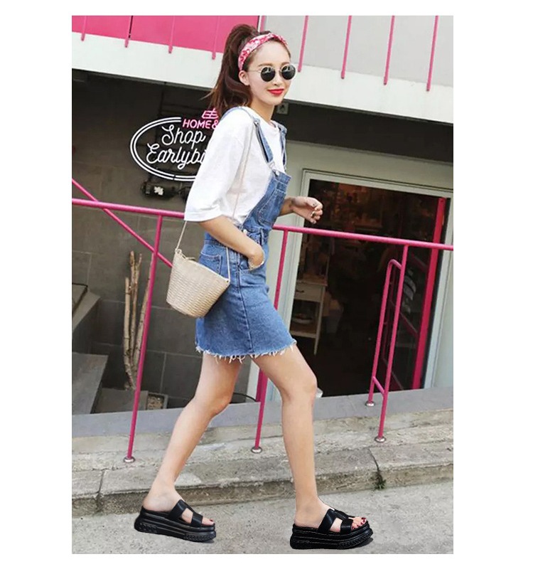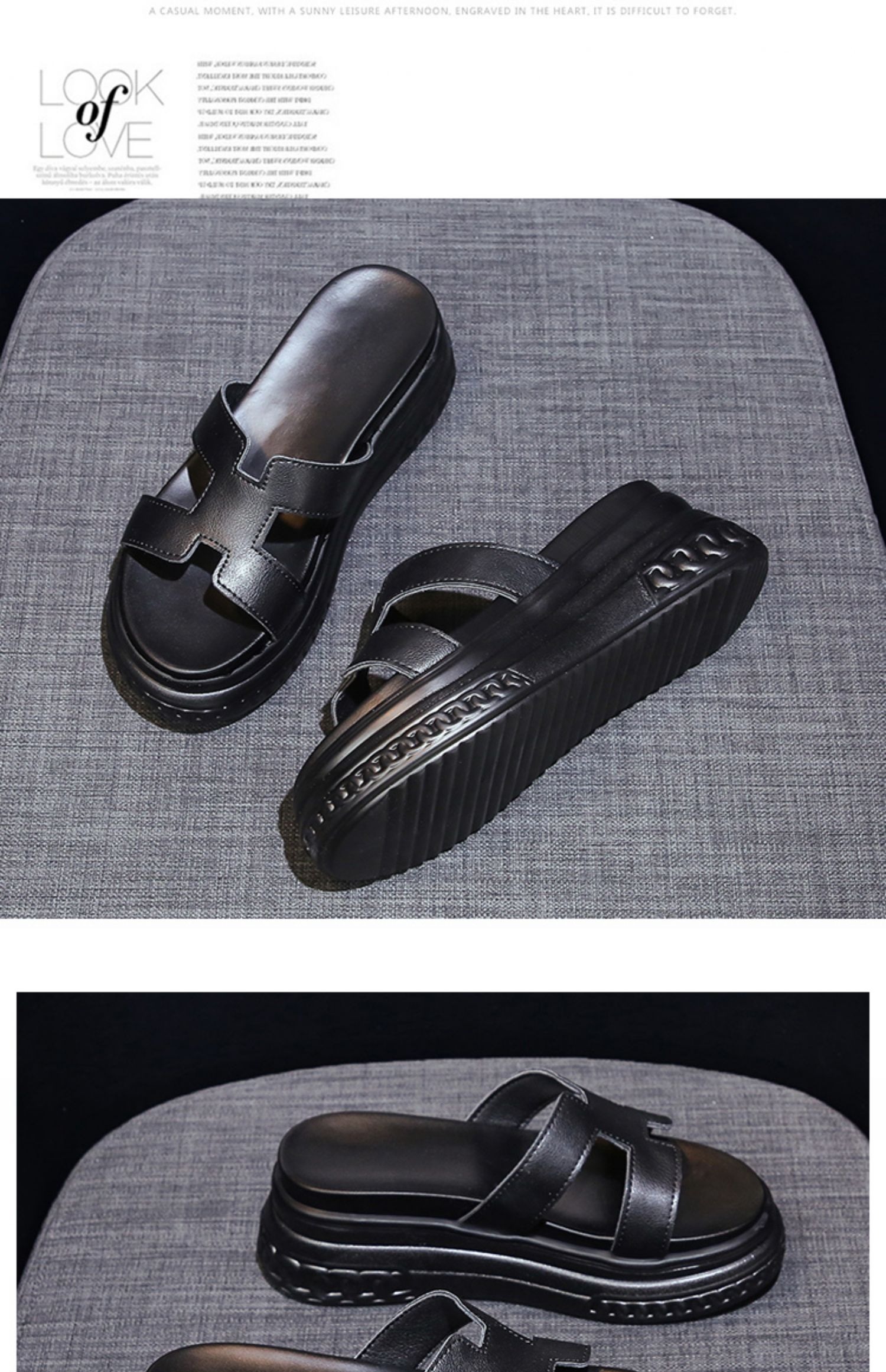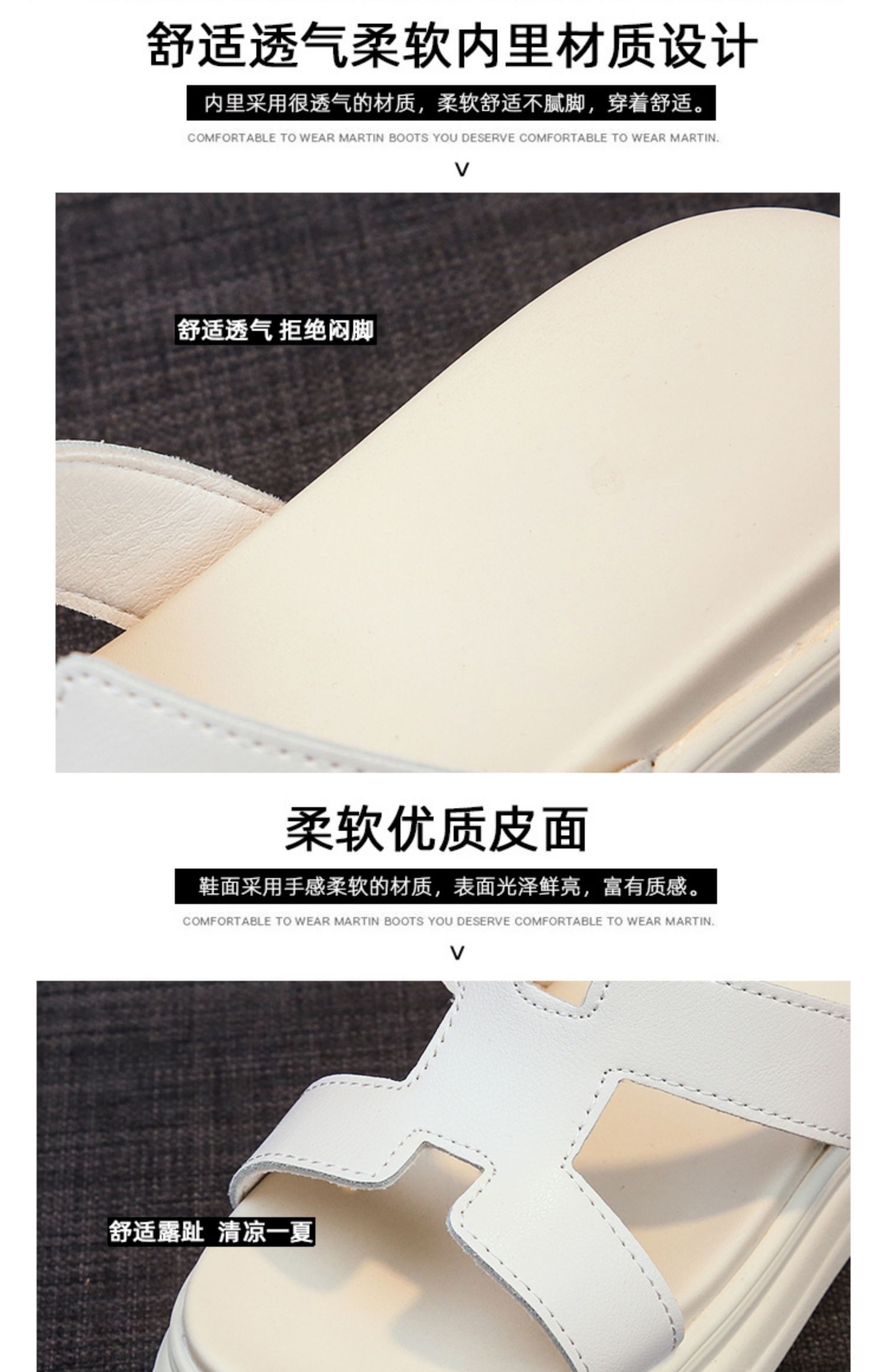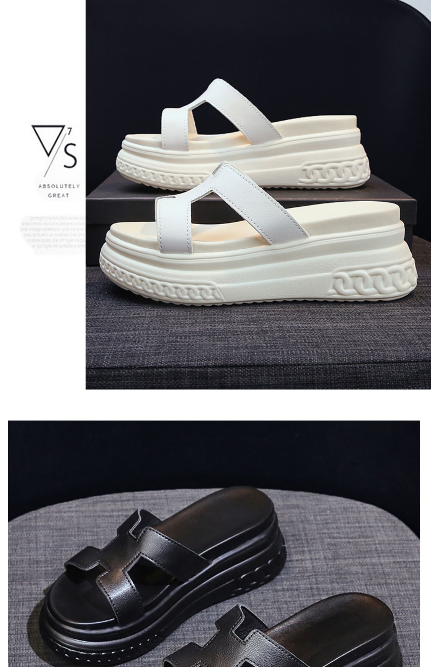 SUNTEK厚底外出穿一字凉拖夏季新款时尚松糕增高跟7cm防滑凉拖鞋女