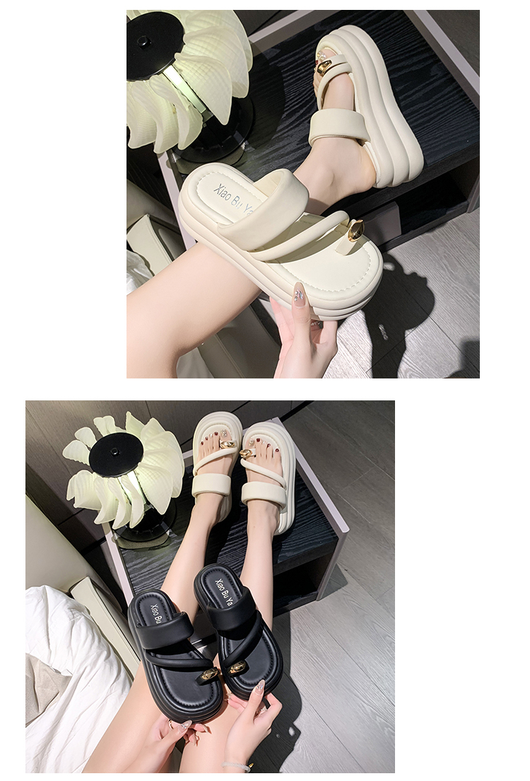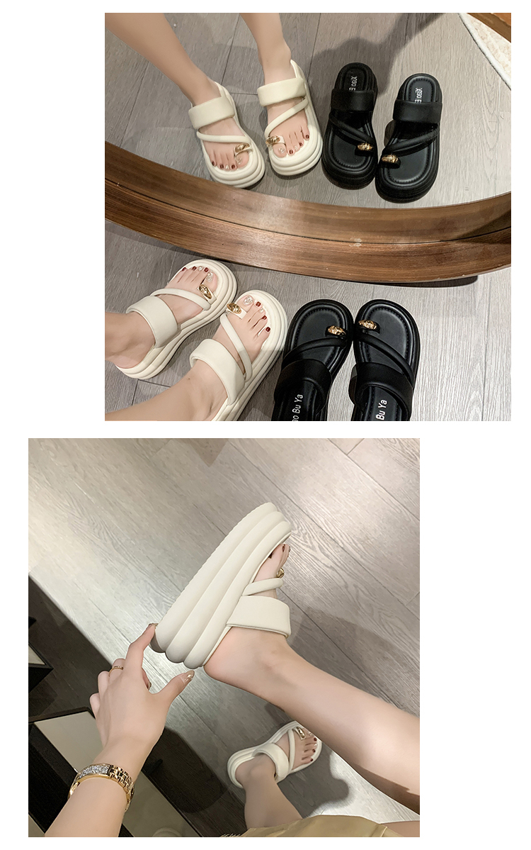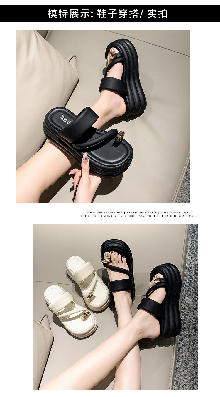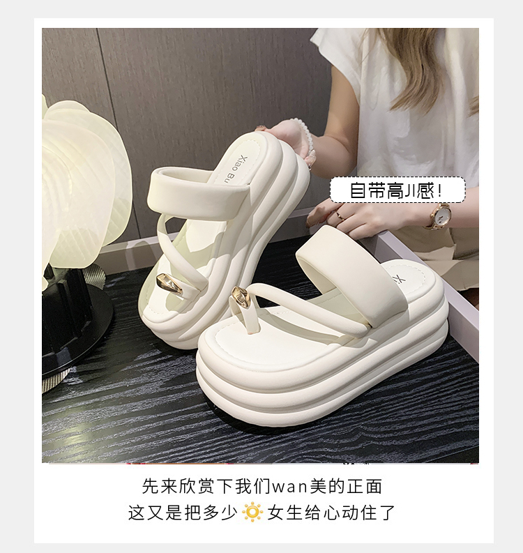 SUNTEK欧货厚底松糕套趾拖鞋女夏新款高级感露趾小个子增高跟沙滩凉拖鞋