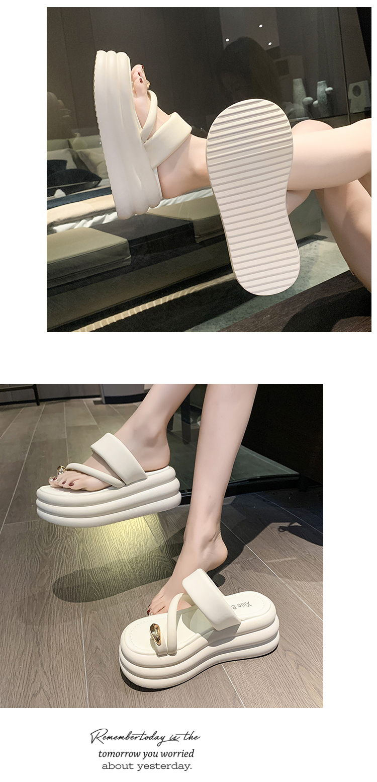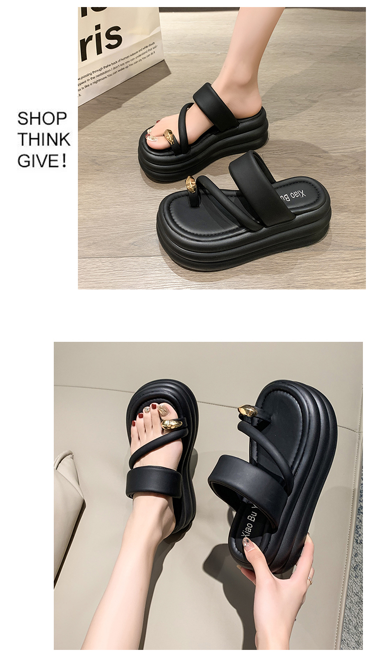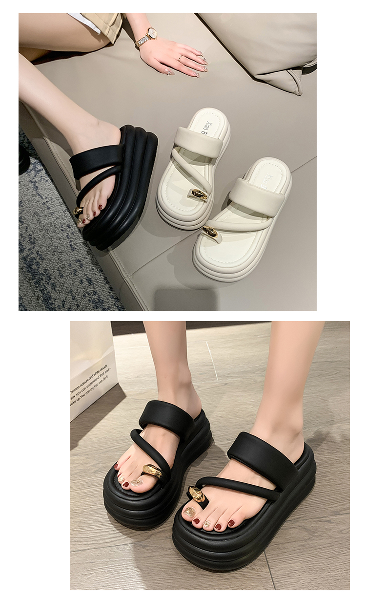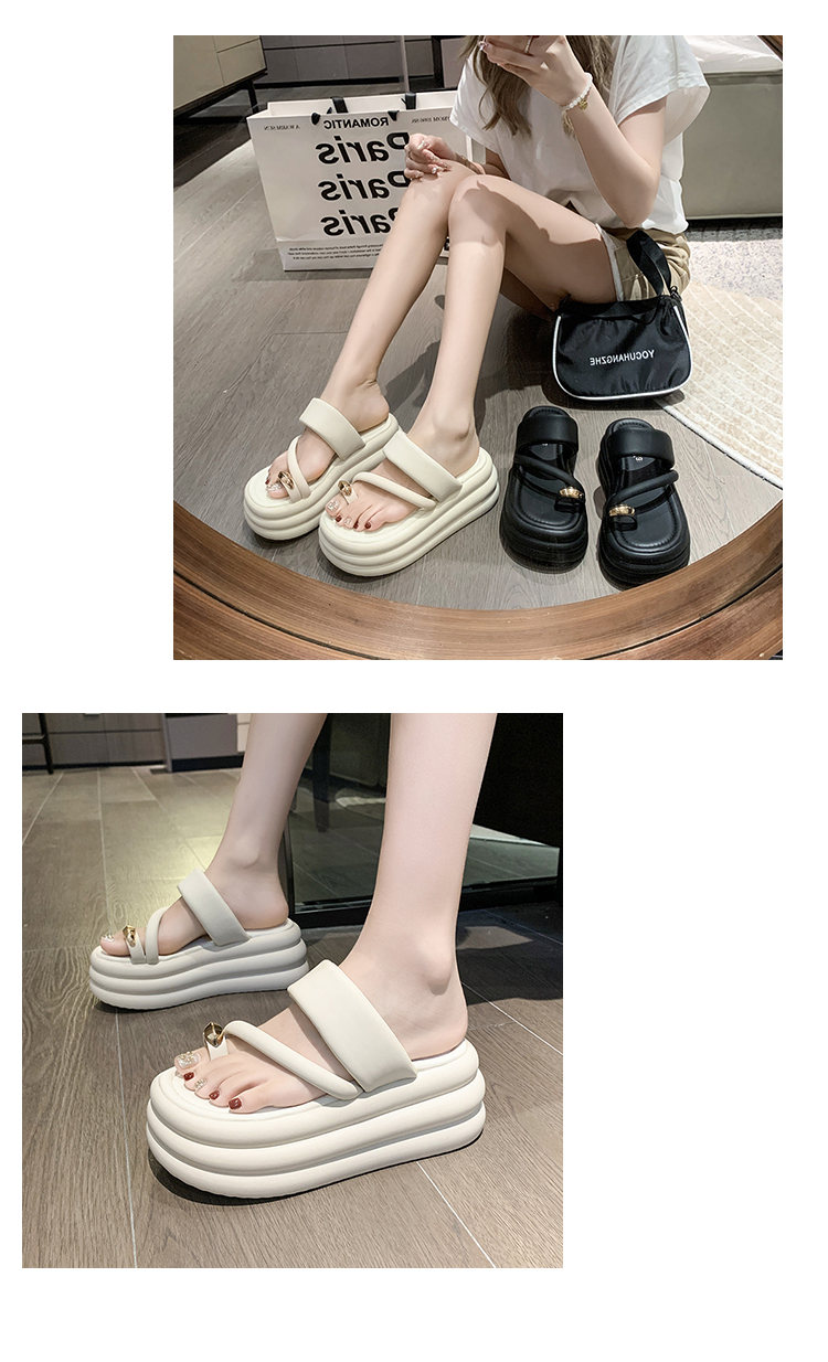 SUNTEK欧货厚底松糕套趾拖鞋女夏新款高级感露趾小个子增高跟沙滩凉拖鞋