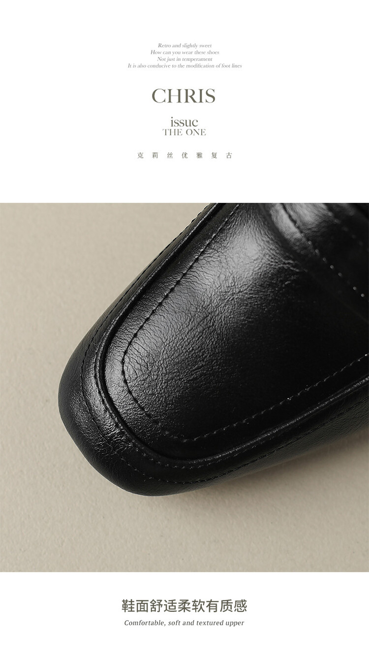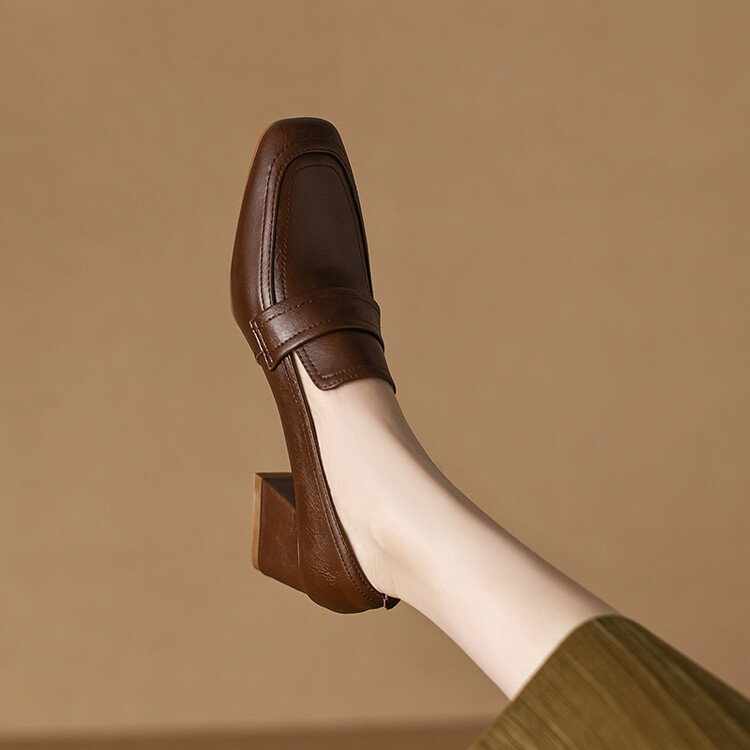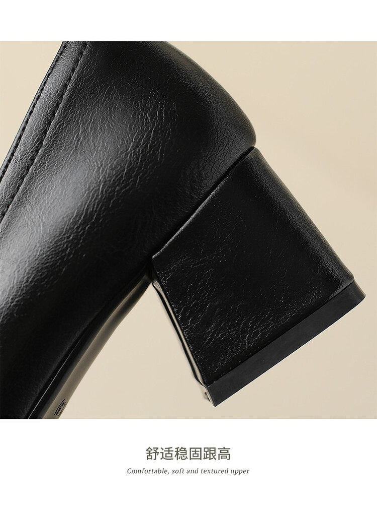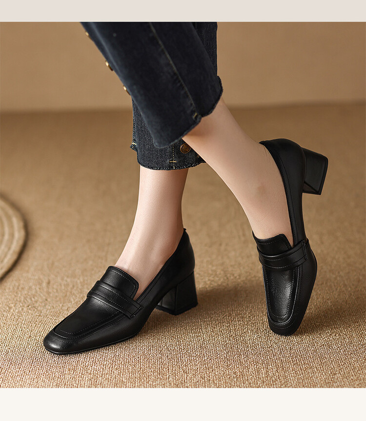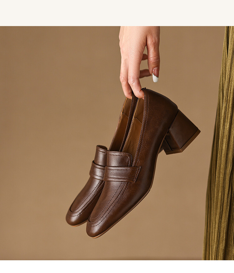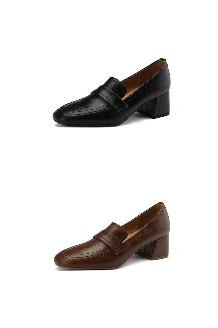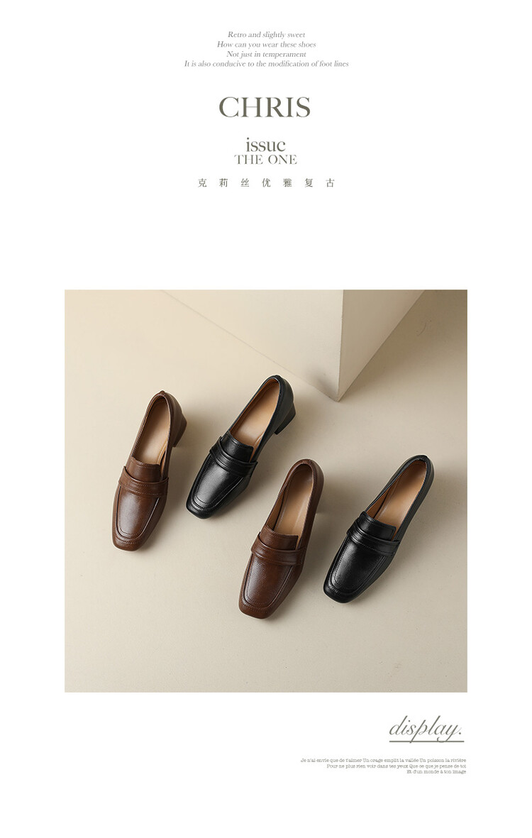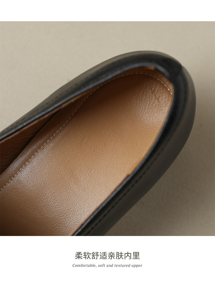 格瑞迪欧 南国巨舒服全皮ins粗高跟真牛皮鞋子女复古乐福鞋百搭通勤单鞋女9409