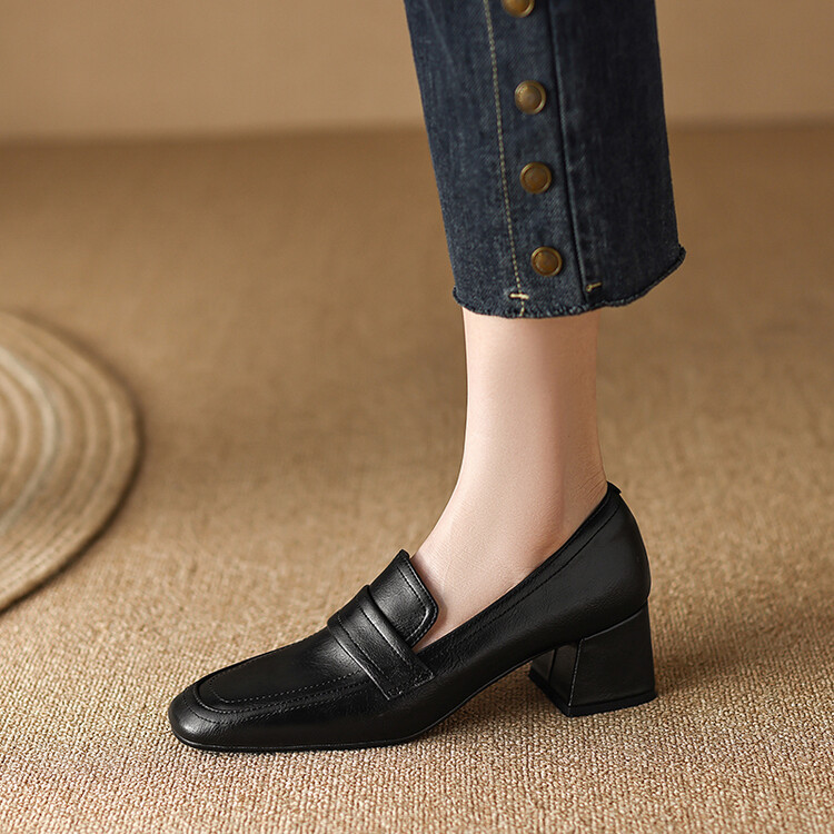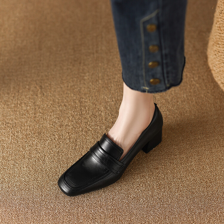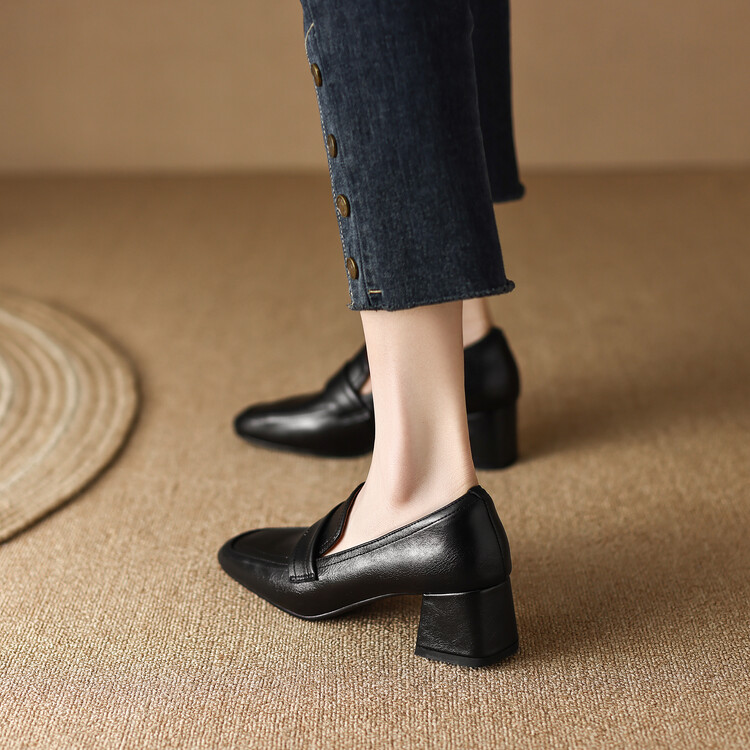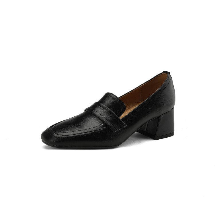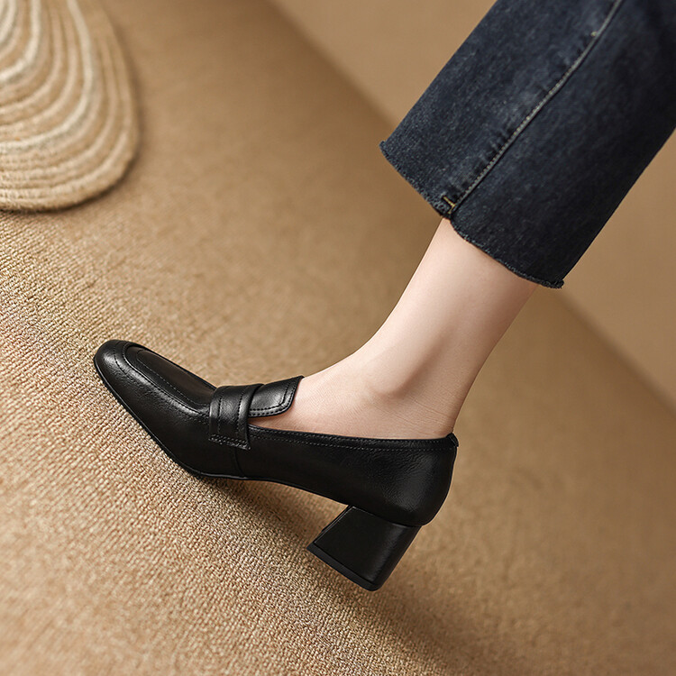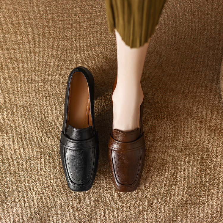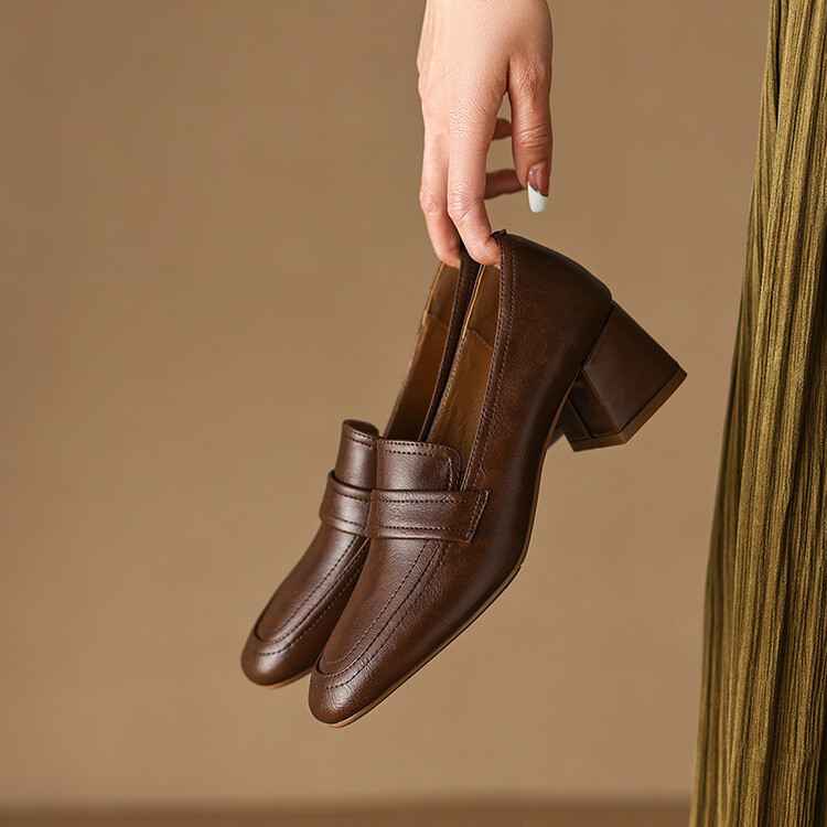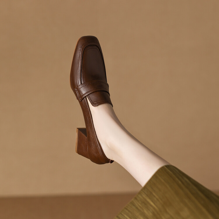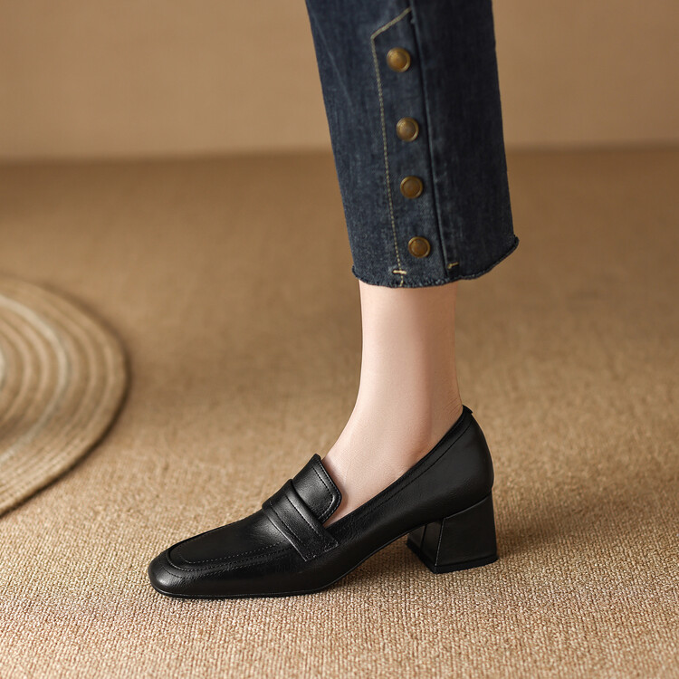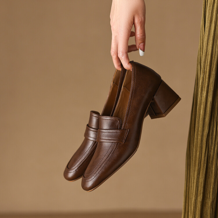 格瑞迪欧 南国巨舒服全皮ins粗高跟真牛皮鞋子女复古乐福鞋百搭通勤单鞋女9409