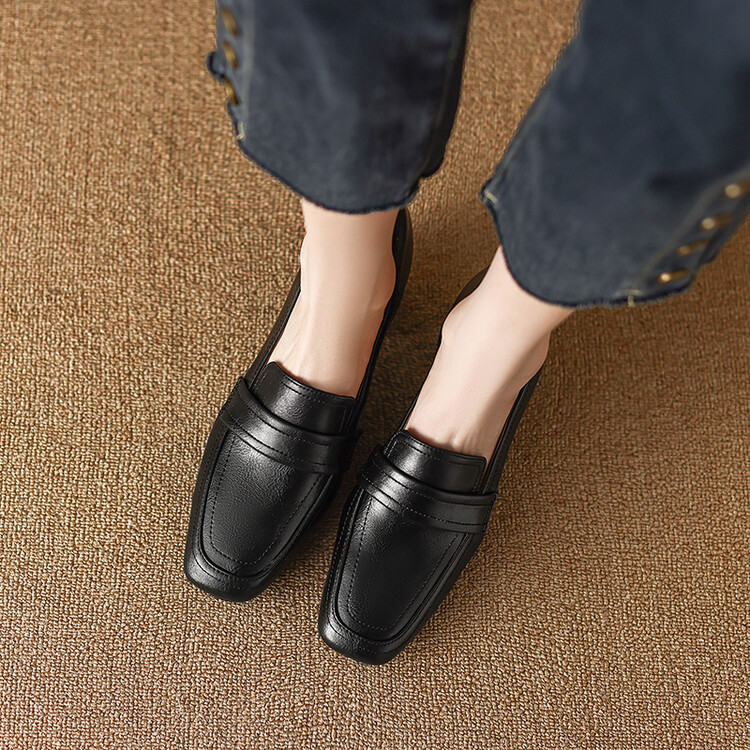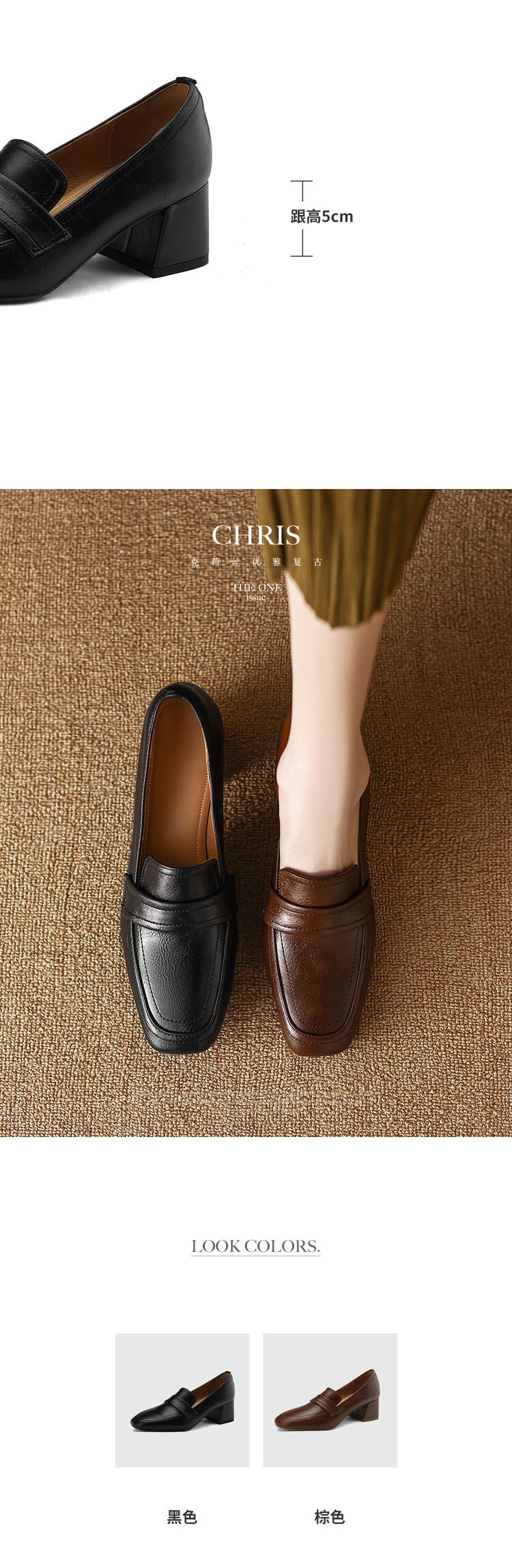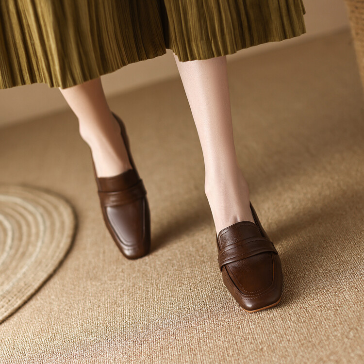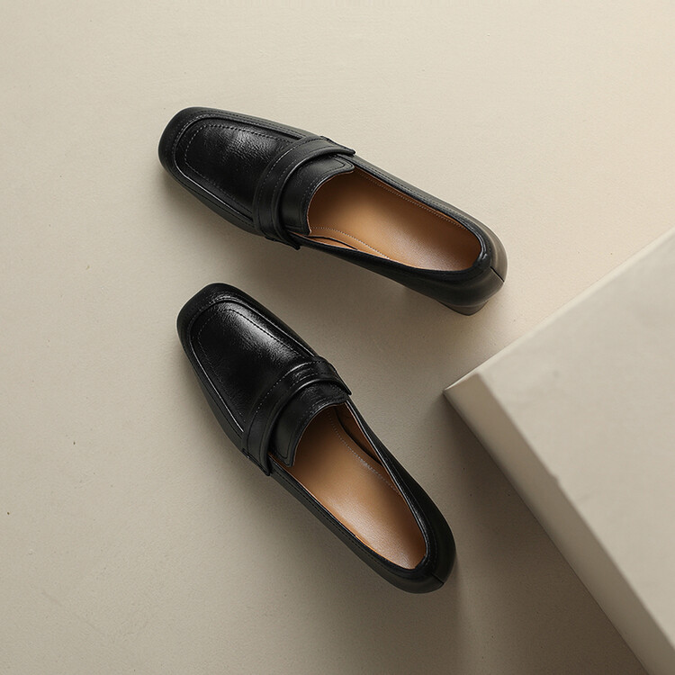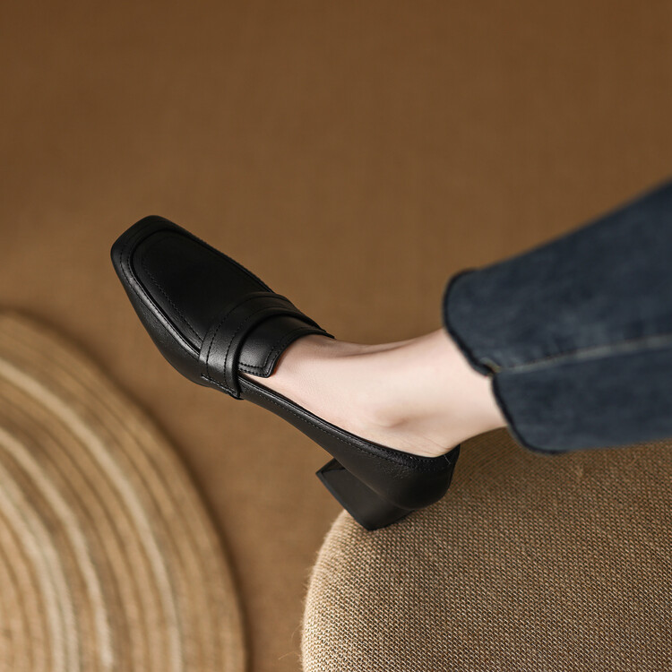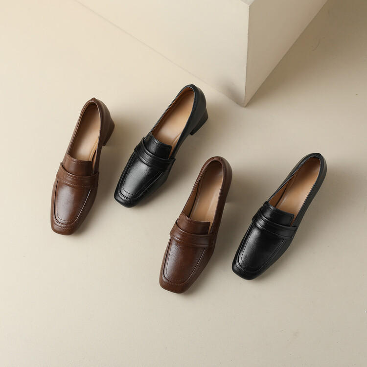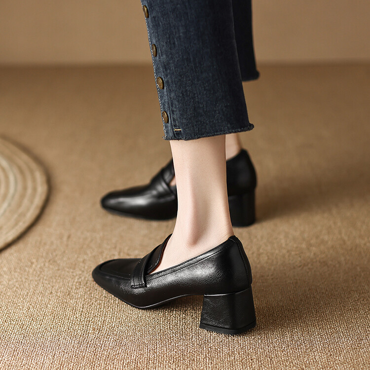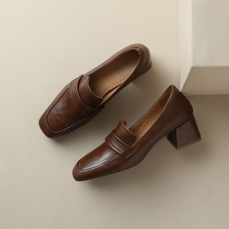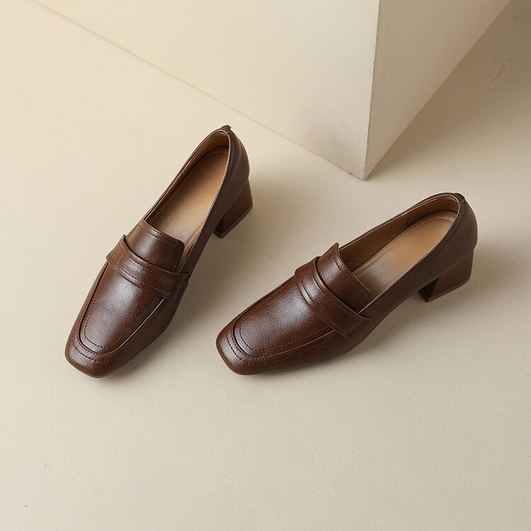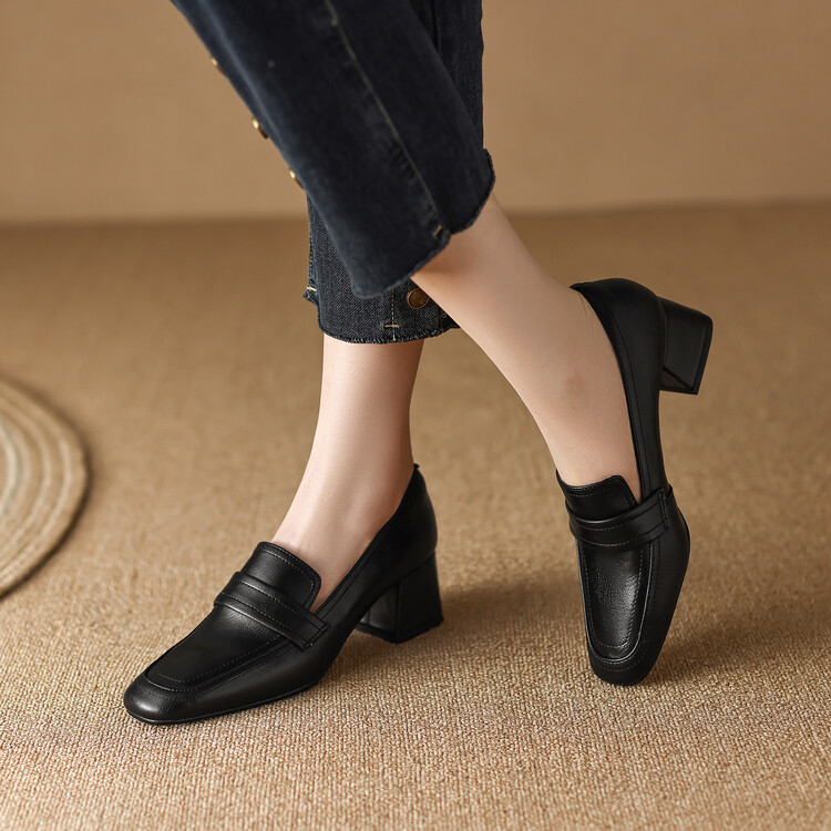 格瑞迪欧 南国巨舒服全皮ins粗高跟真牛皮鞋子女复古乐福鞋百搭通勤单鞋女9409
