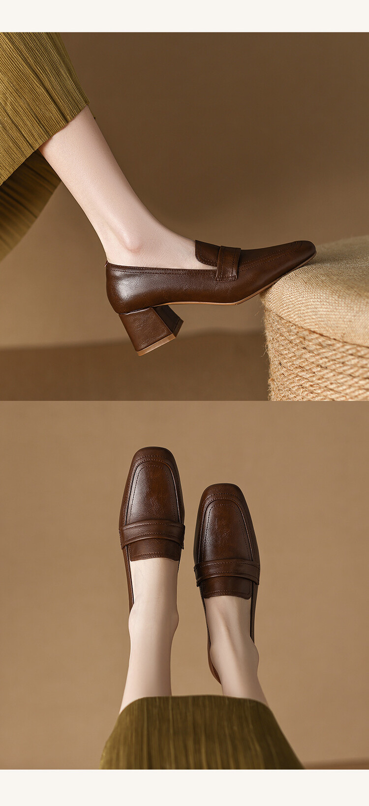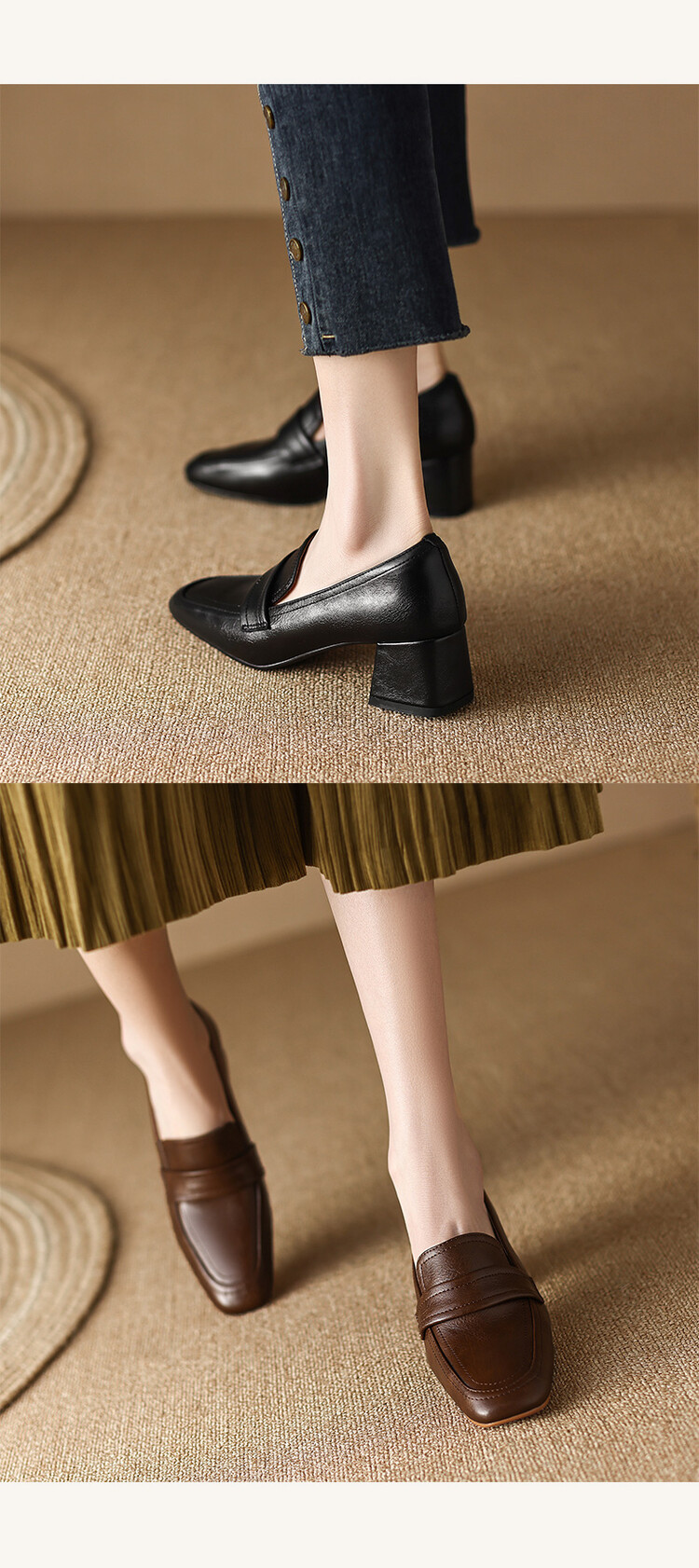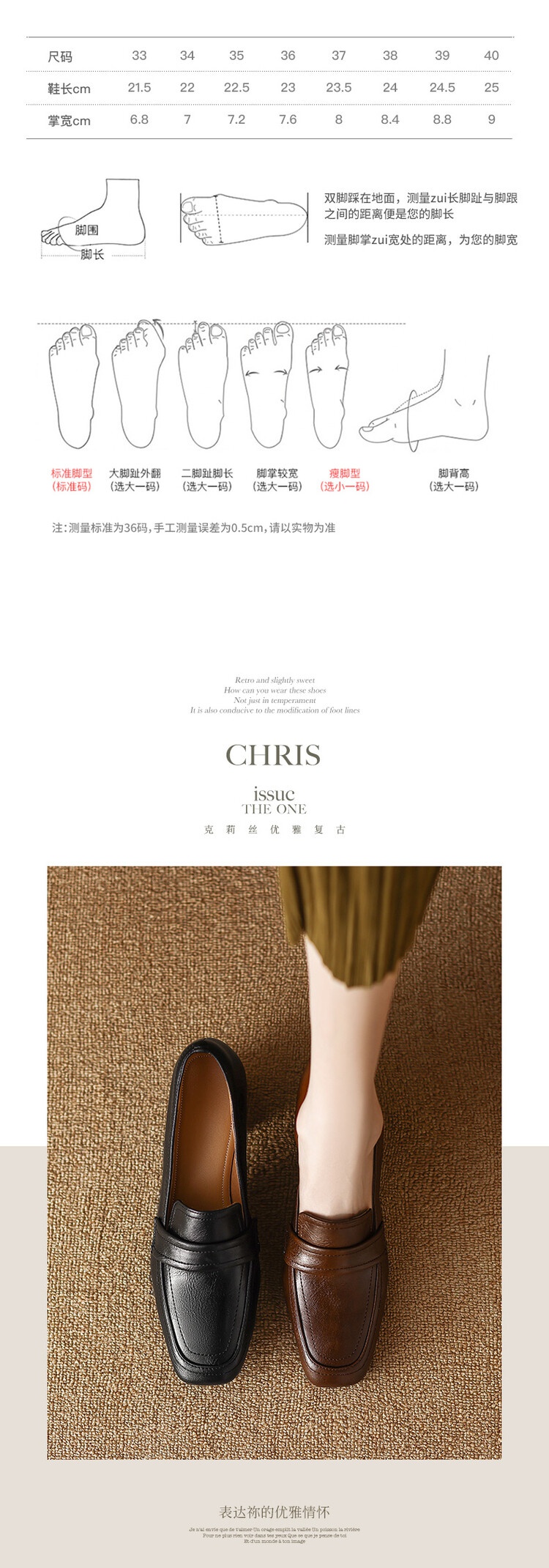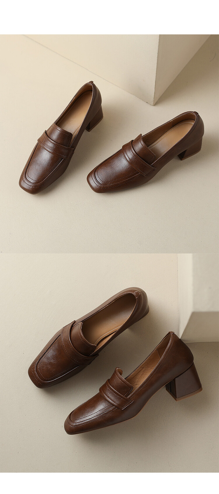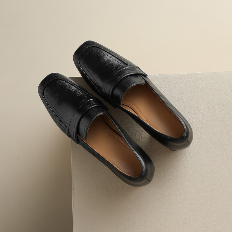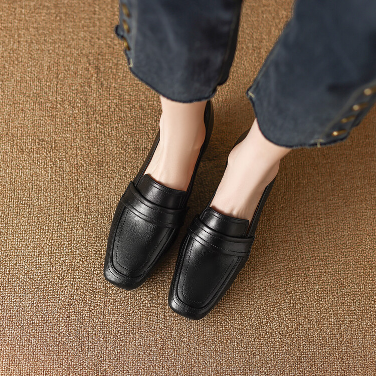 格瑞迪欧 南国巨舒服全皮ins粗高跟真牛皮鞋子女复古乐福鞋百搭通勤单鞋女9409