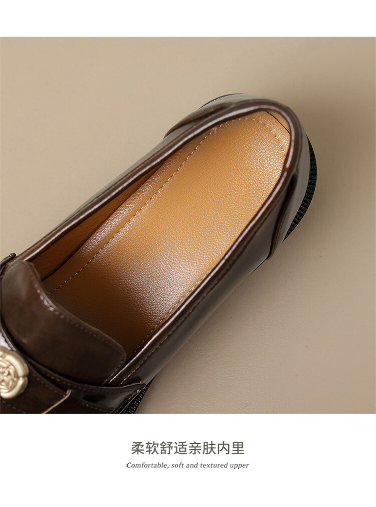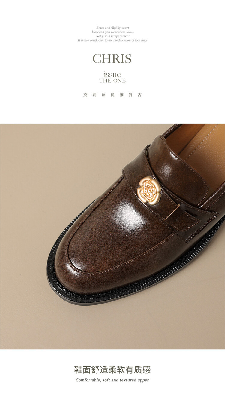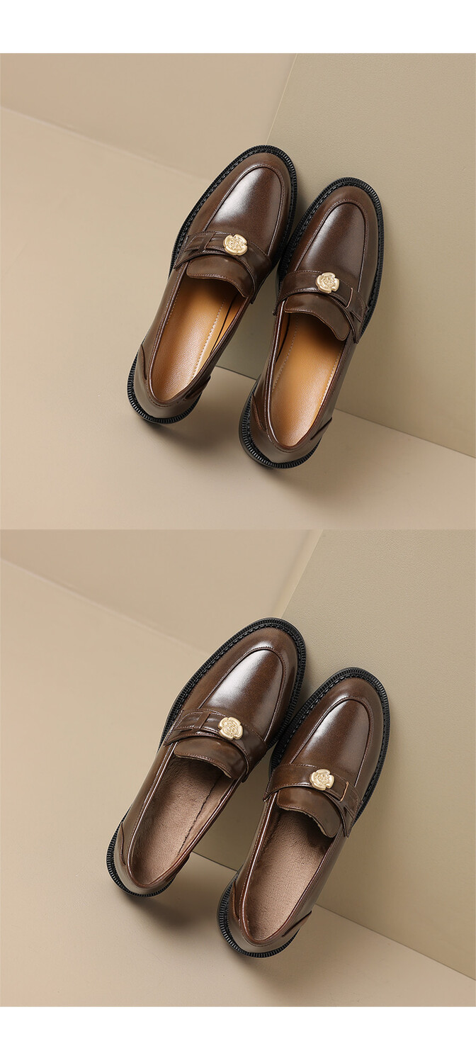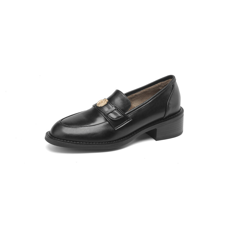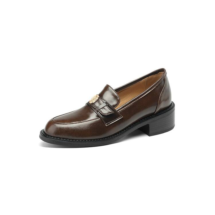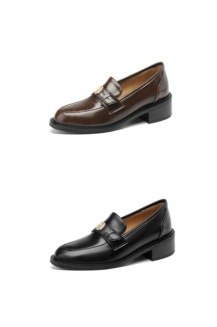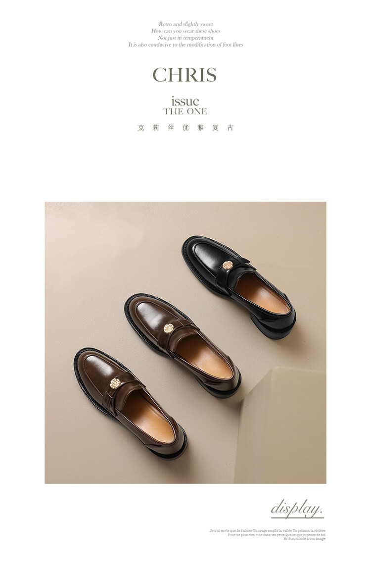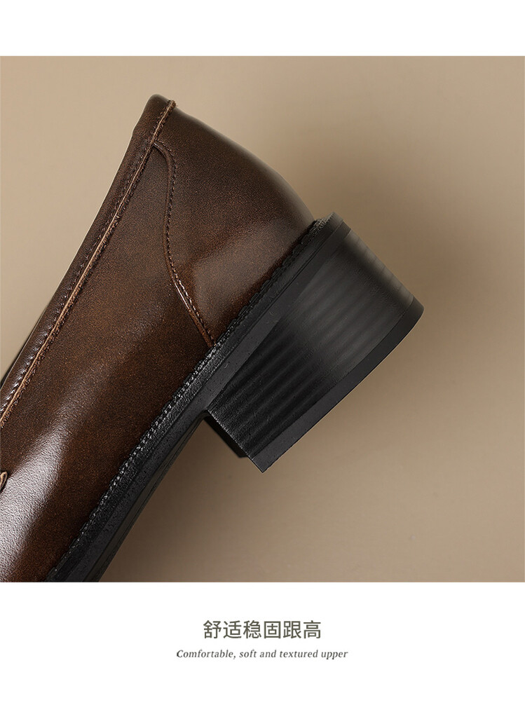 格瑞迪欧 南国牛皮女鞋春季新款女士单鞋英伦风一脚蹬小皮鞋女厚底粗跟通勤乐福鞋女9668