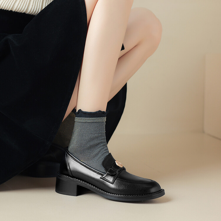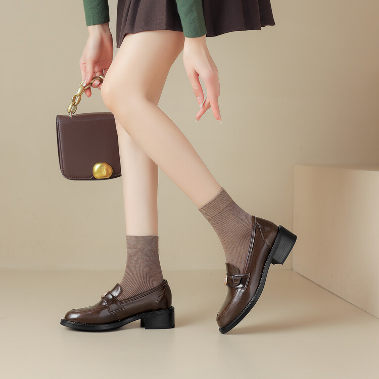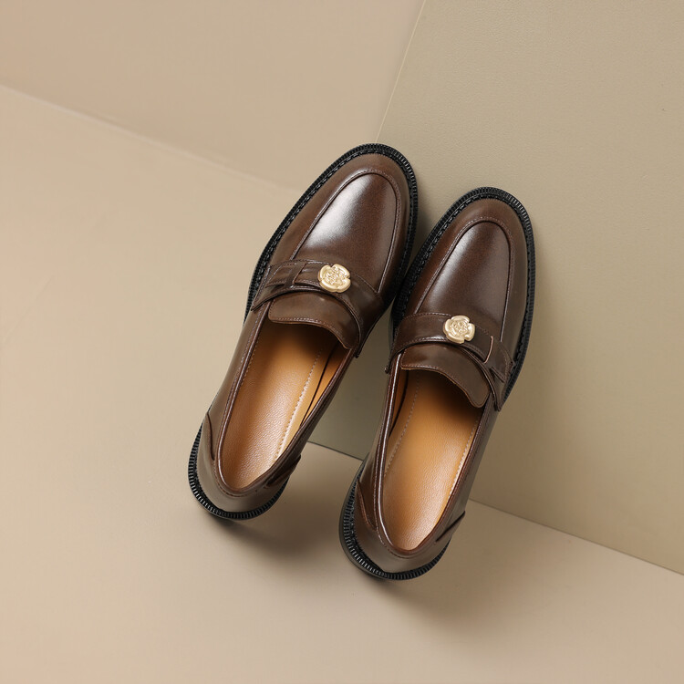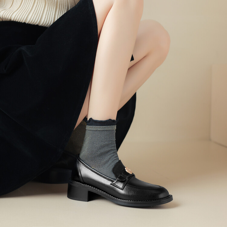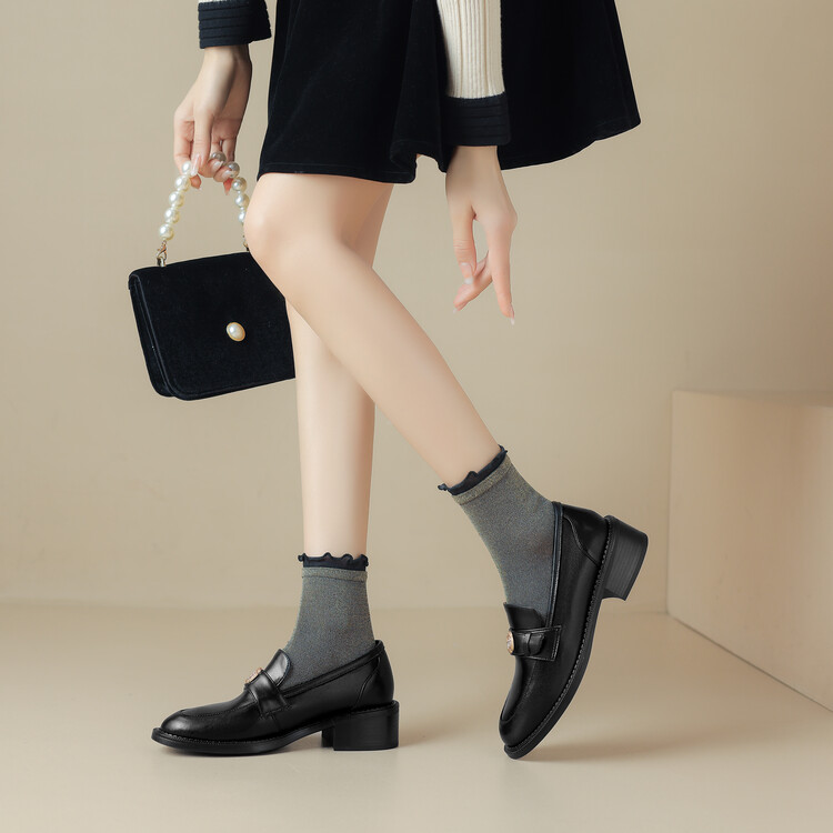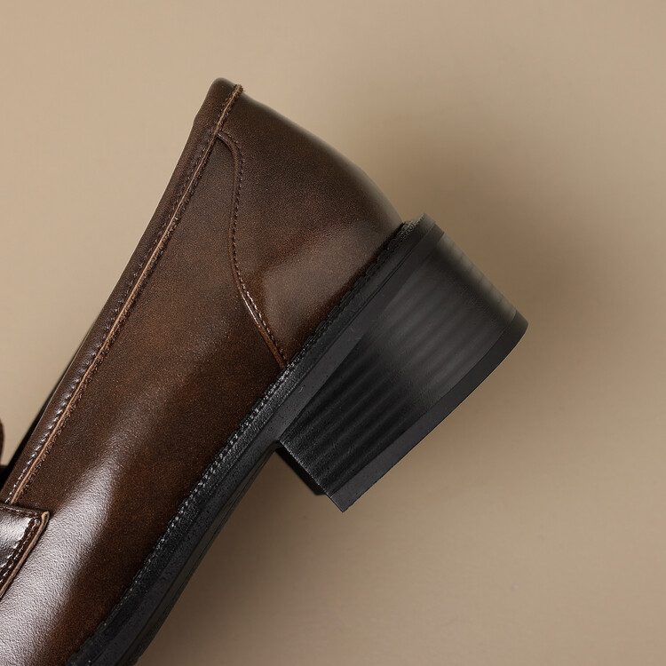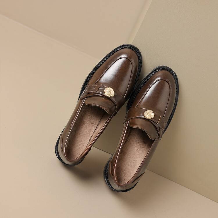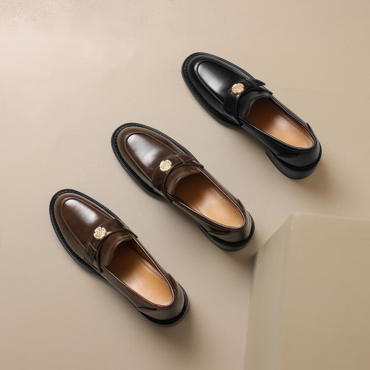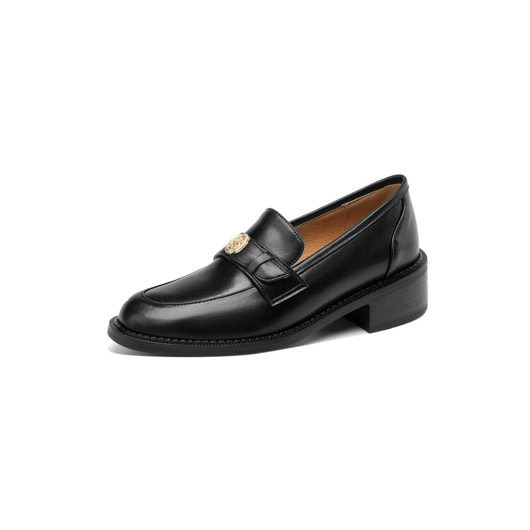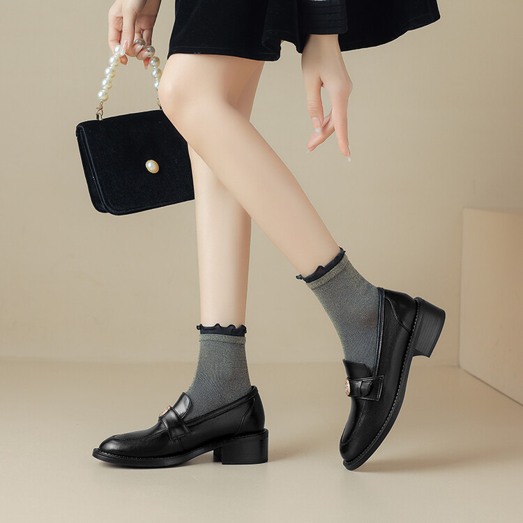 格瑞迪欧 南国牛皮女鞋春季新款女士单鞋英伦风一脚蹬小皮鞋女厚底粗跟通勤乐福鞋女9668
