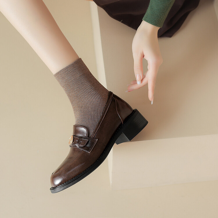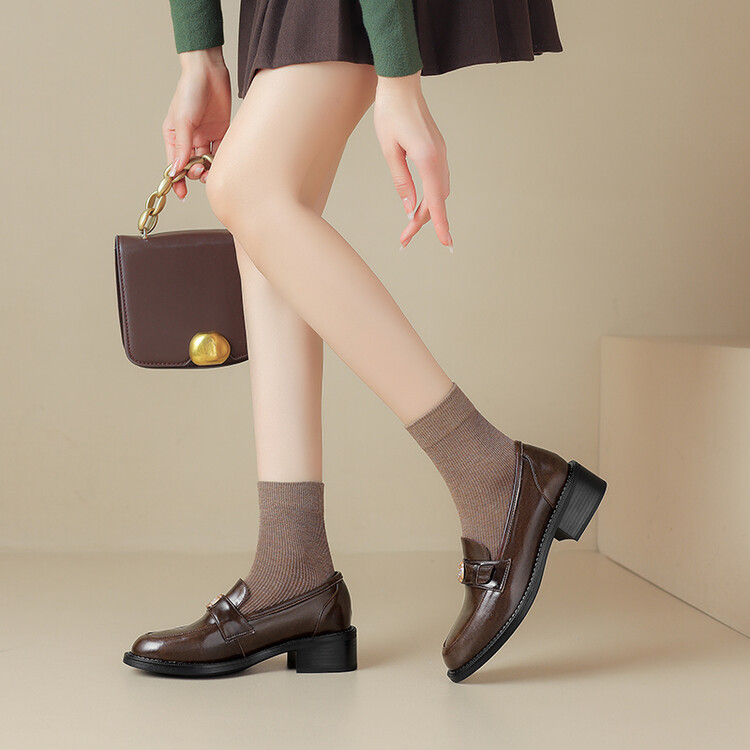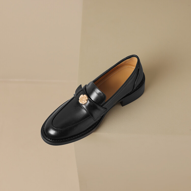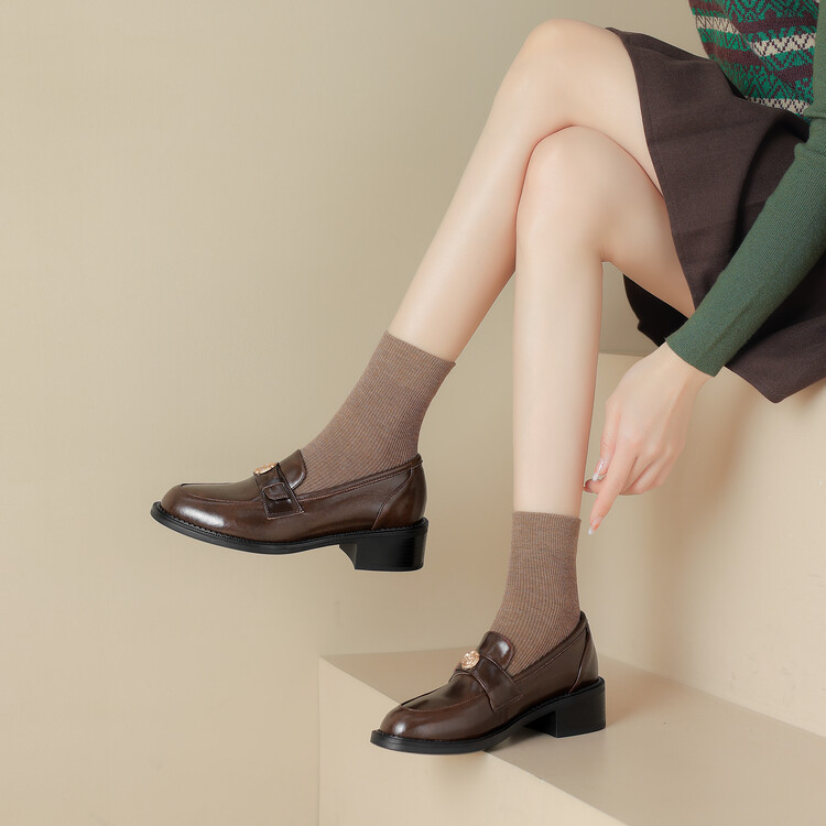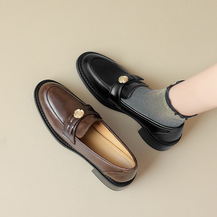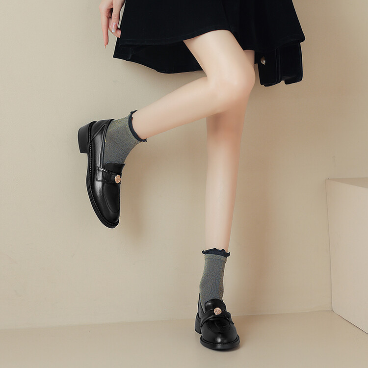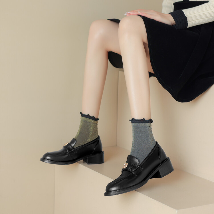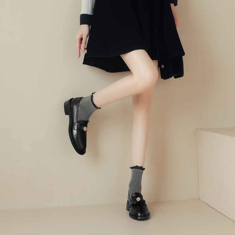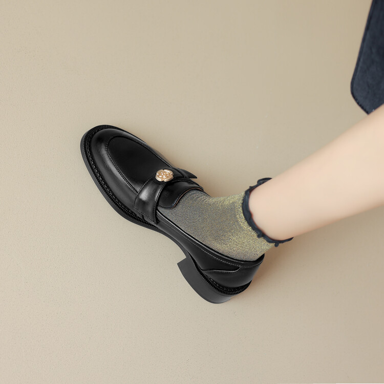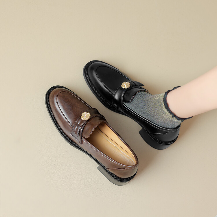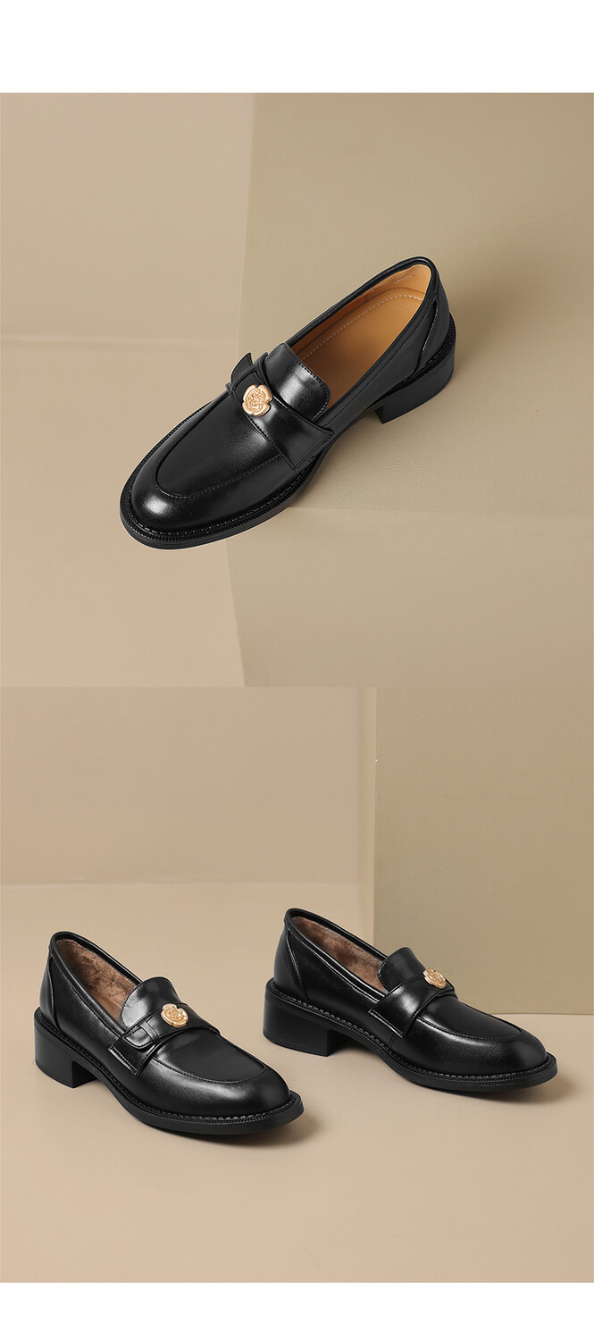 格瑞迪欧 南国牛皮女鞋春季新款女士单鞋英伦风一脚蹬小皮鞋女厚底粗跟通勤乐福鞋女9668