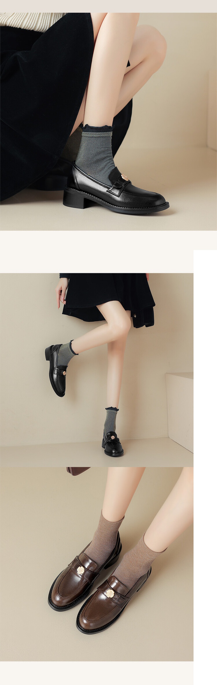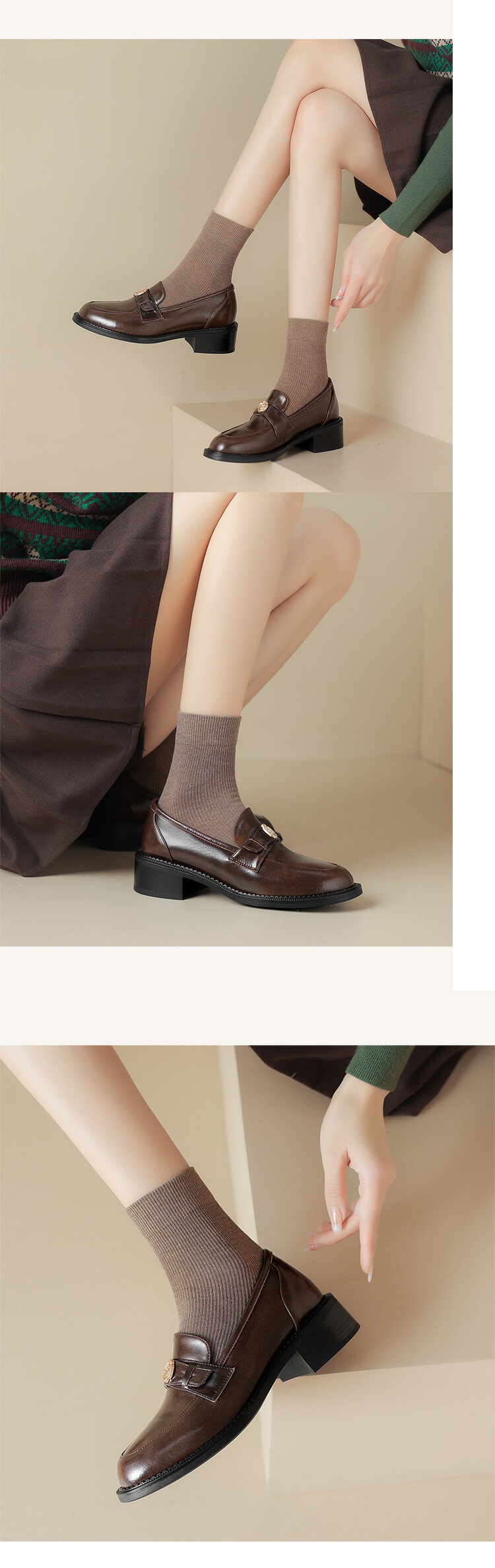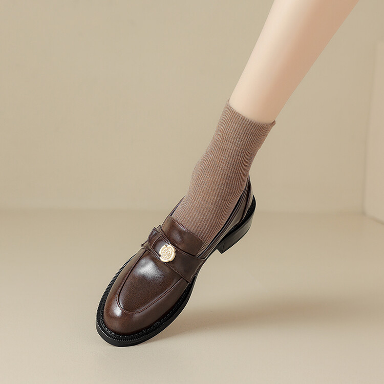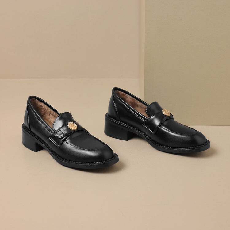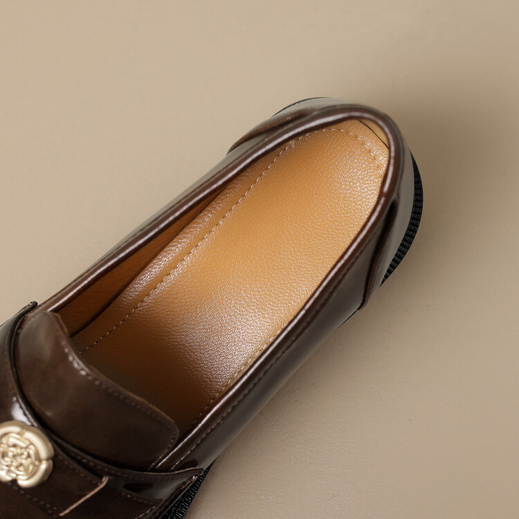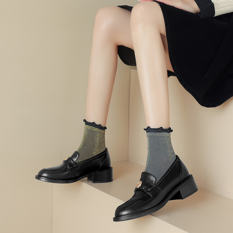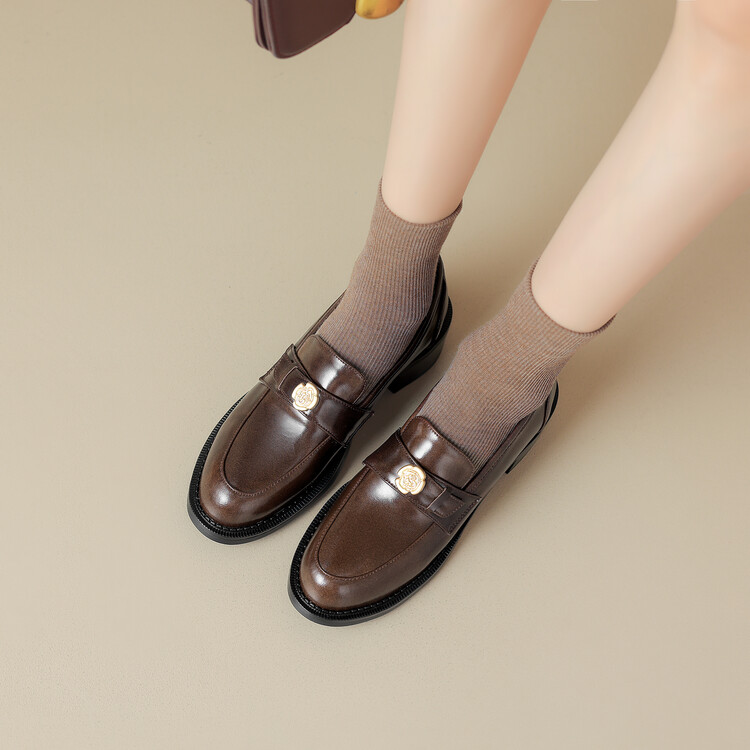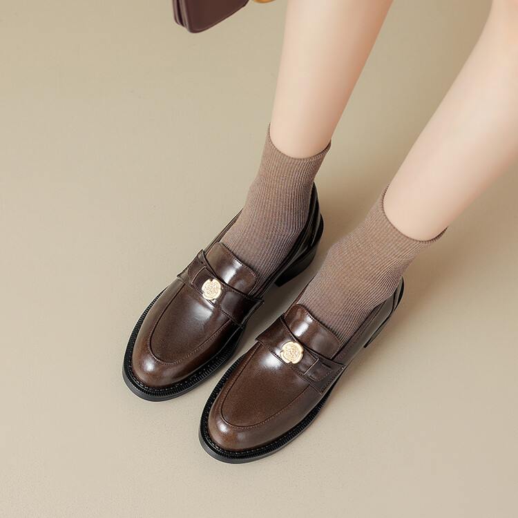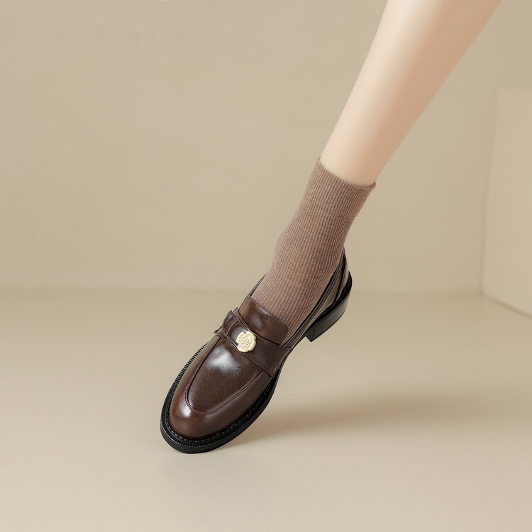 格瑞迪欧 南国牛皮女鞋春季新款女士单鞋英伦风一脚蹬小皮鞋女厚底粗跟通勤乐福鞋女9668