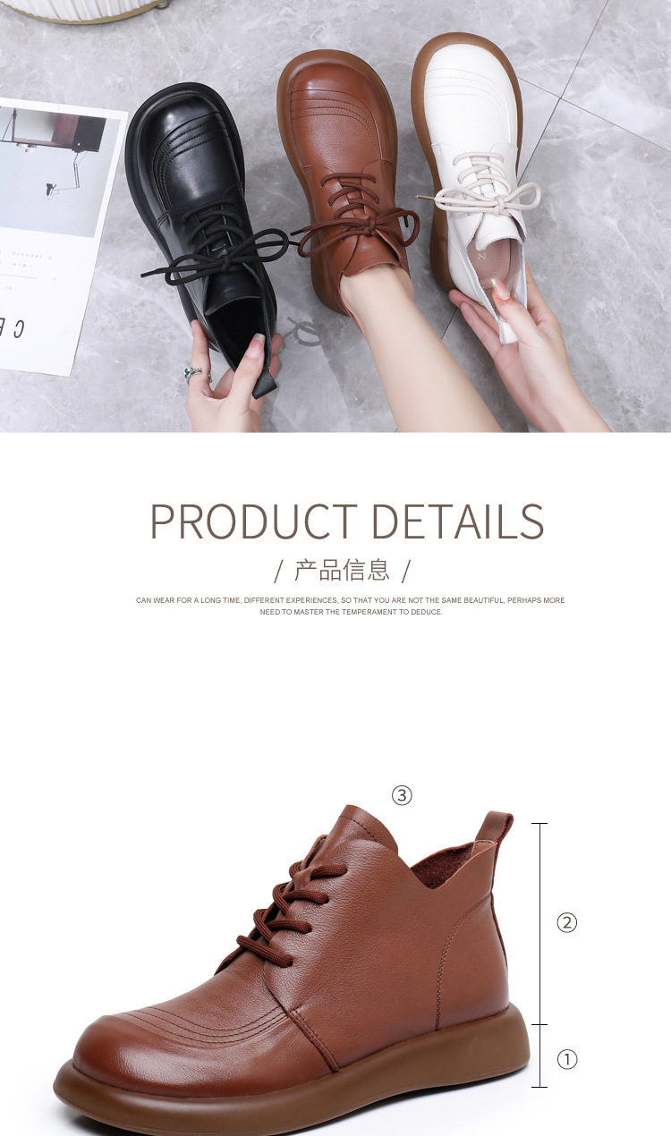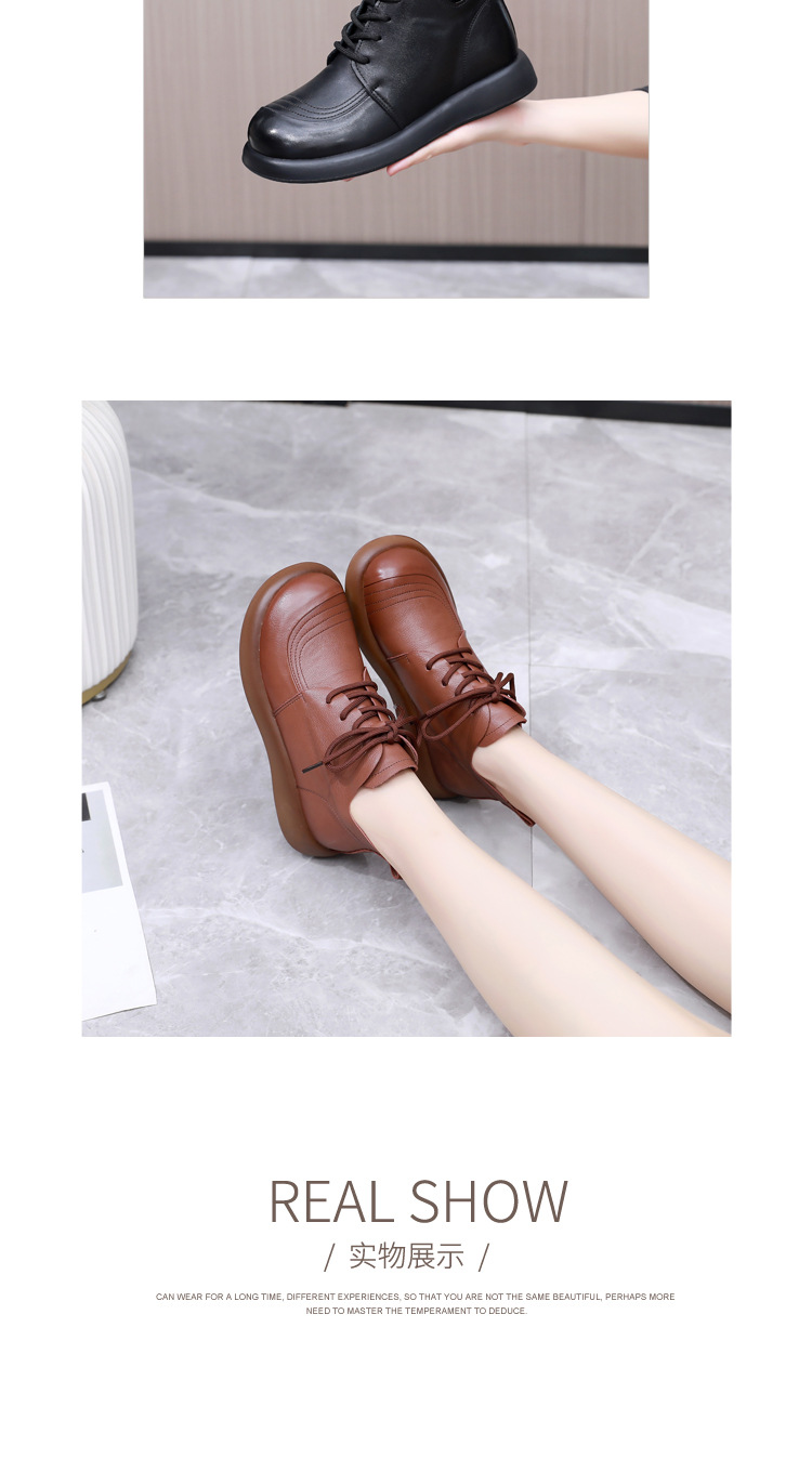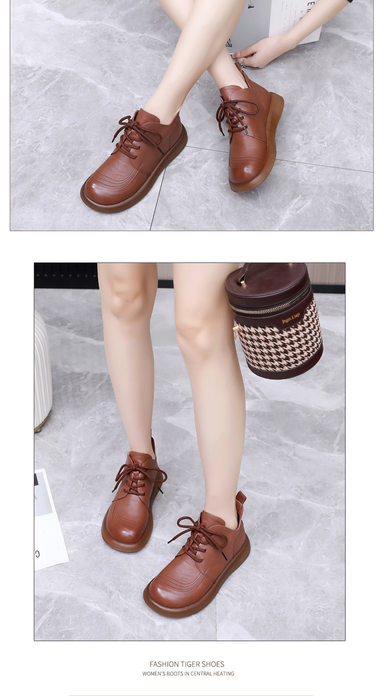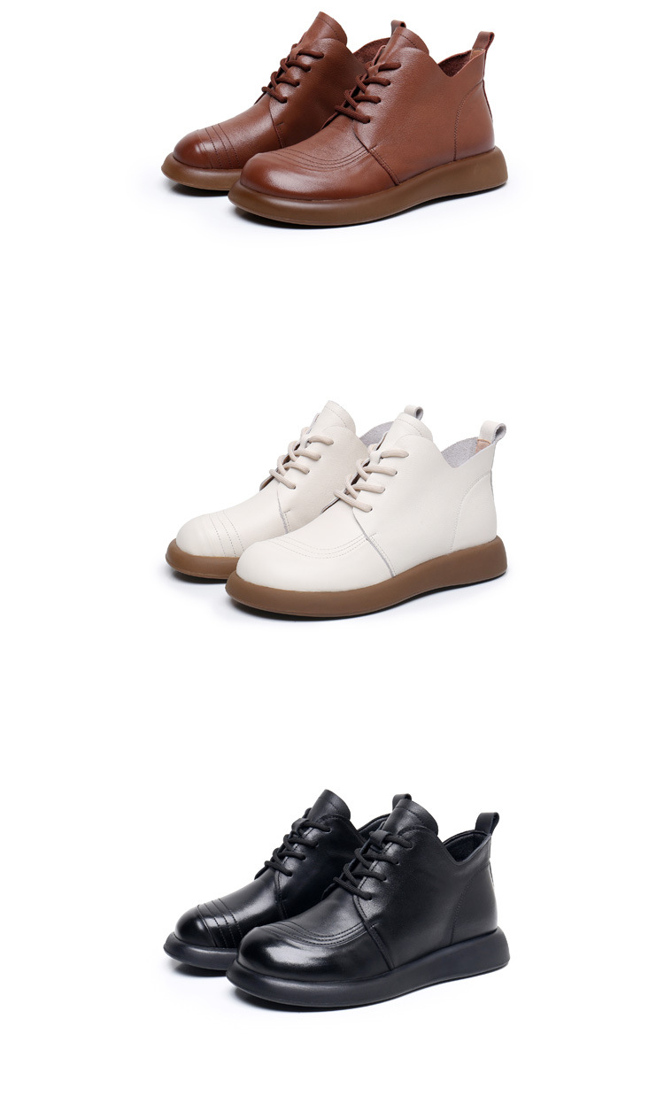 圆头马丁靴英伦风真皮百搭系带短靴单靴加绒平底女靴皮鞋