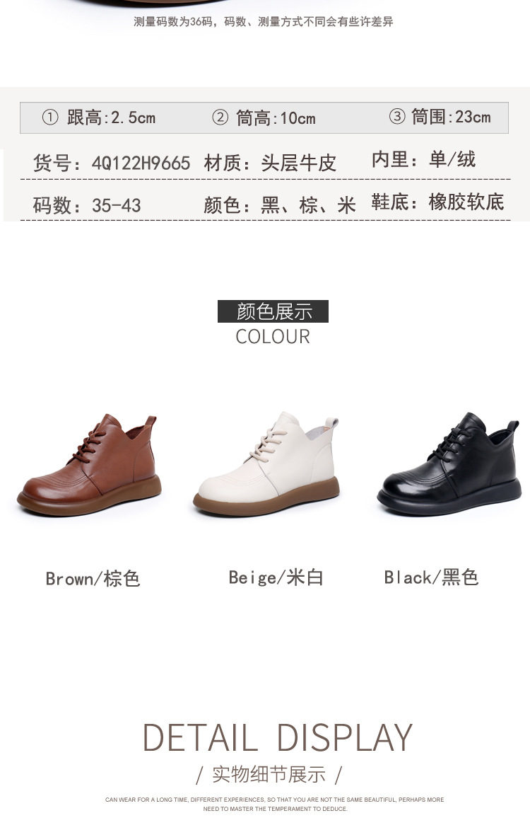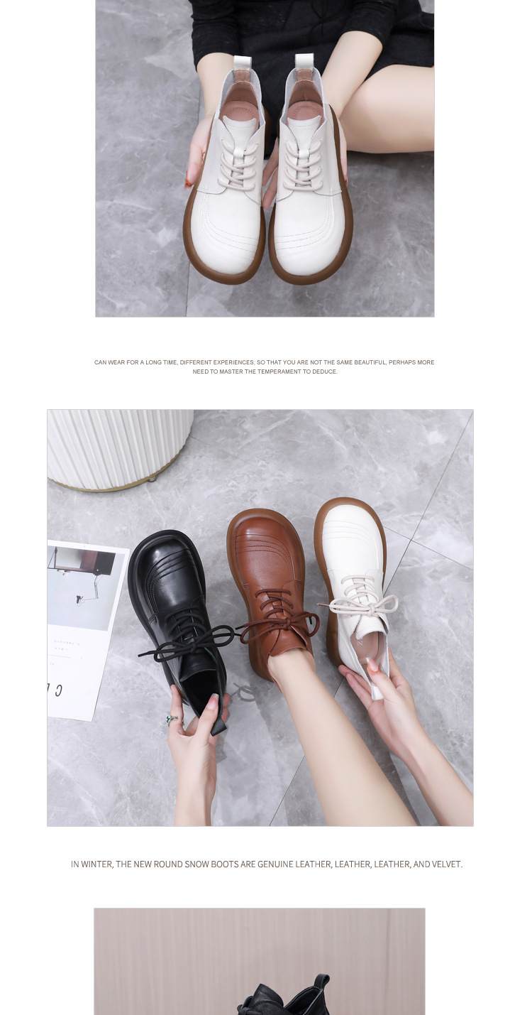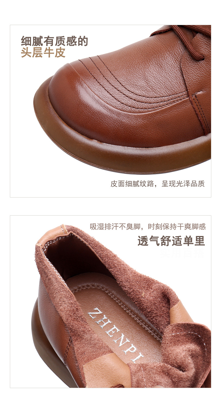 圆头马丁靴英伦风真皮百搭系带短靴单靴加绒平底女靴皮鞋