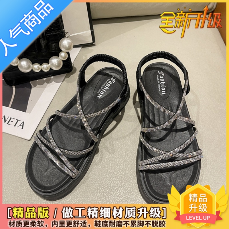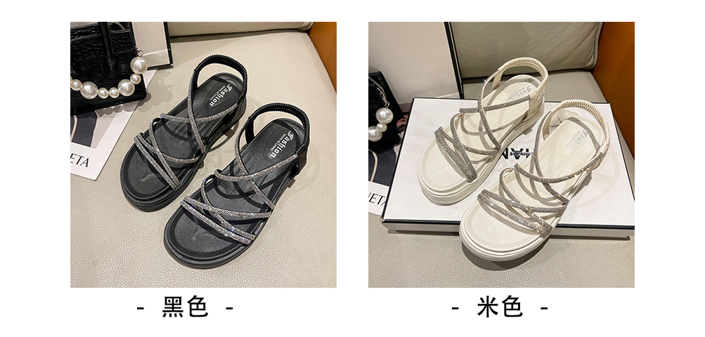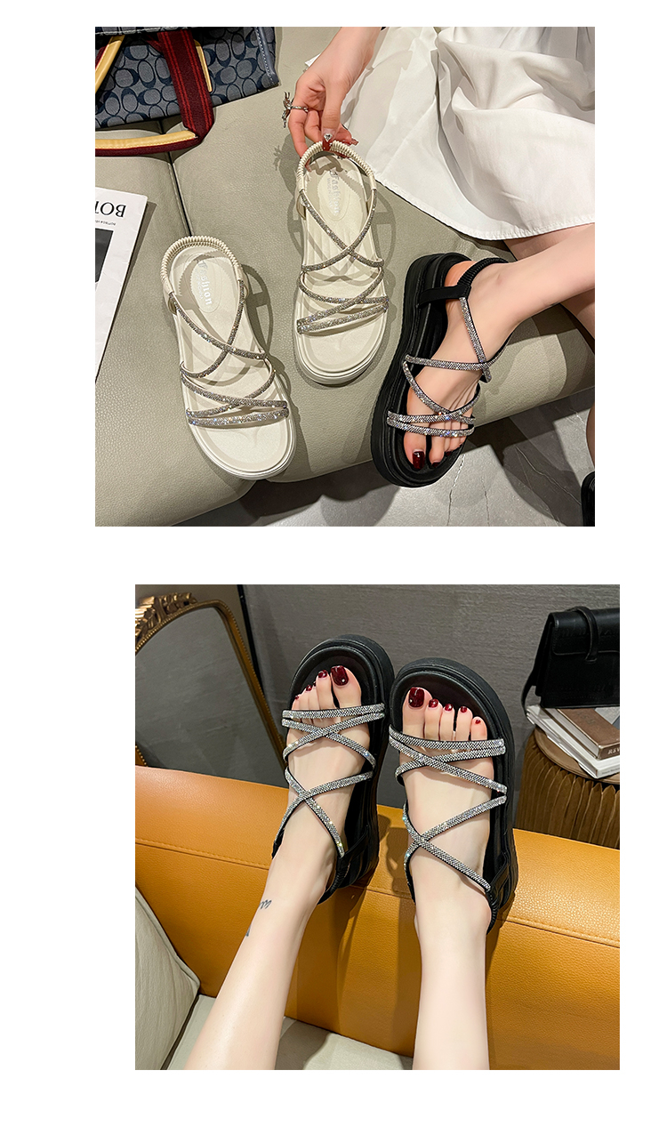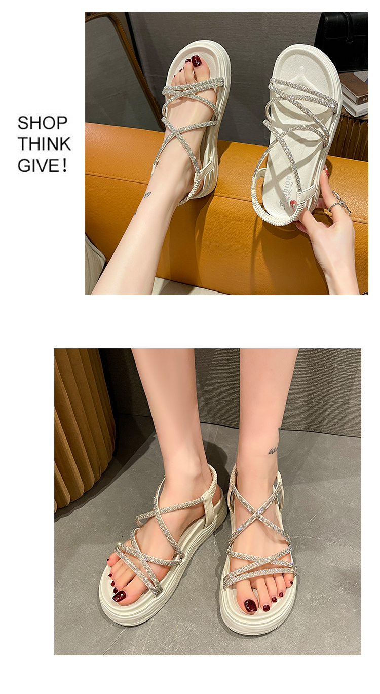 SUNTEK仙女风海边沙滩罗马凉鞋女 夏季外穿平厚底显气质配裙子