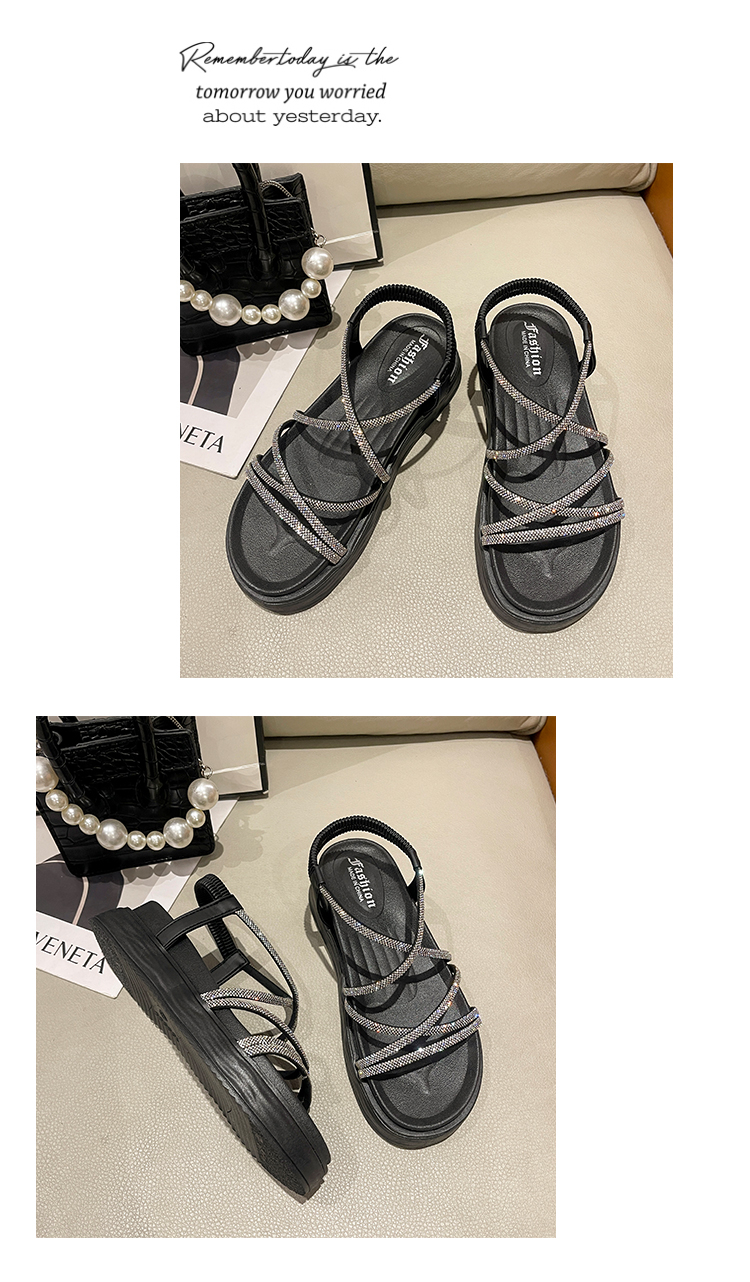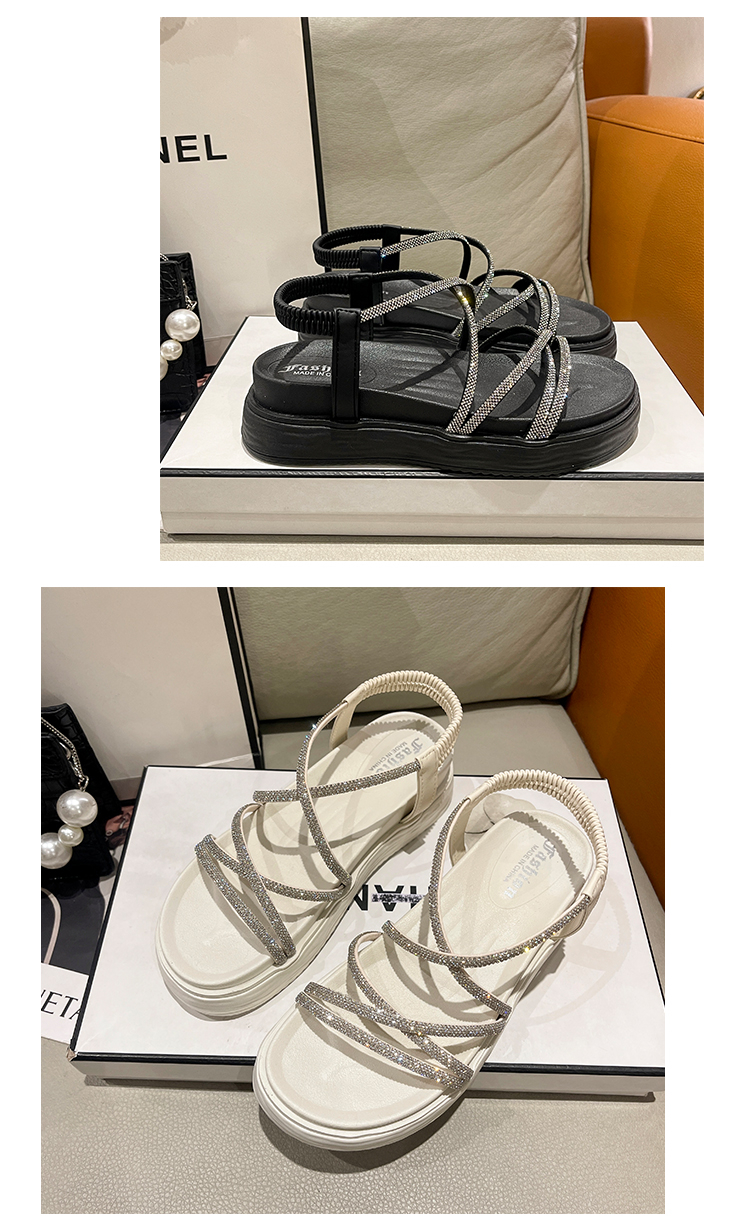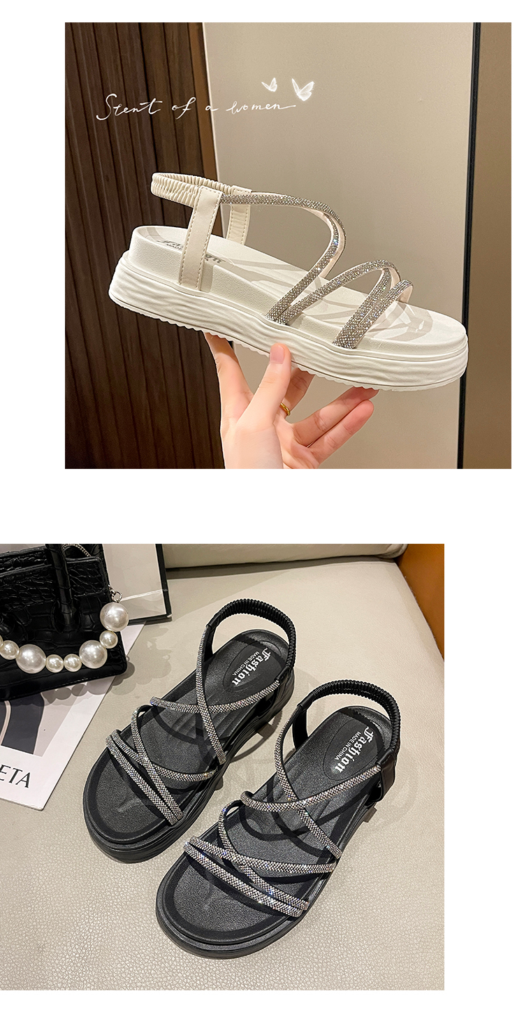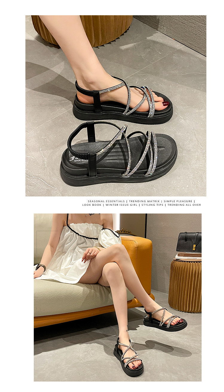 SUNTEK仙女风海边沙滩罗马凉鞋女 夏季外穿平厚底显气质配裙子