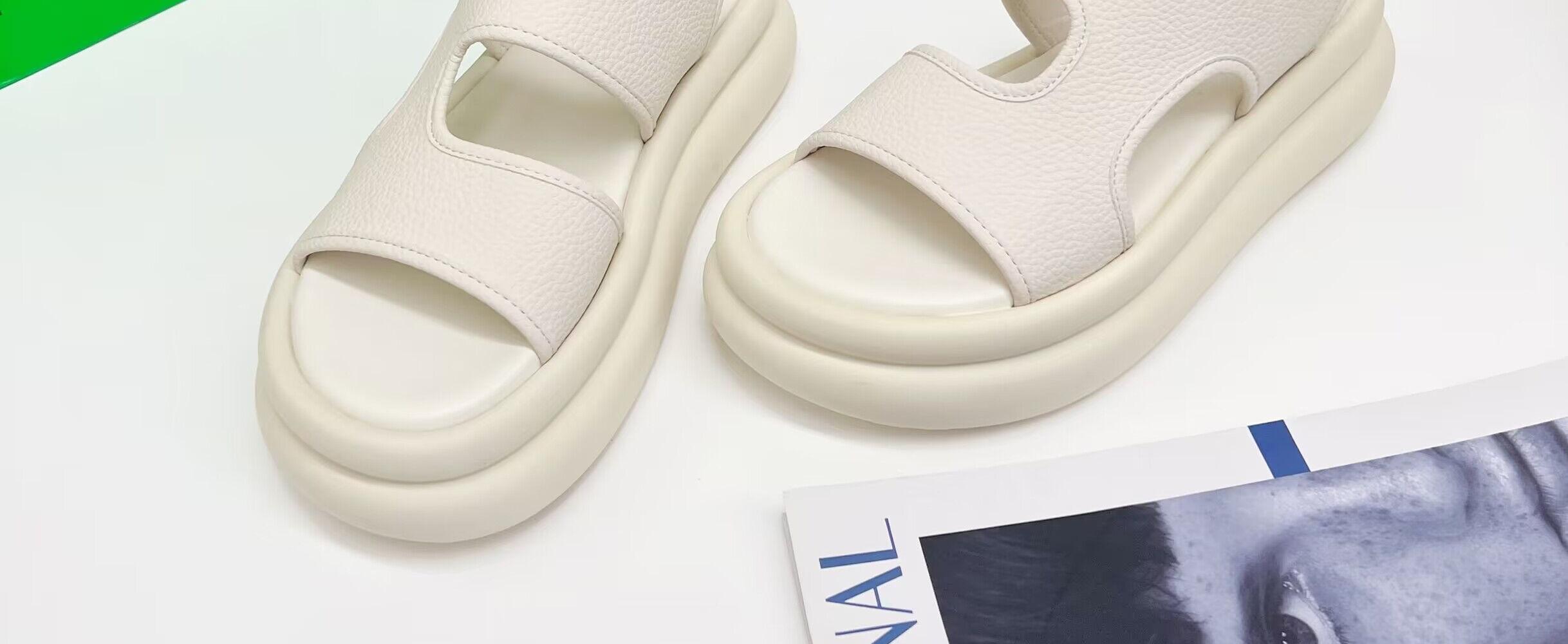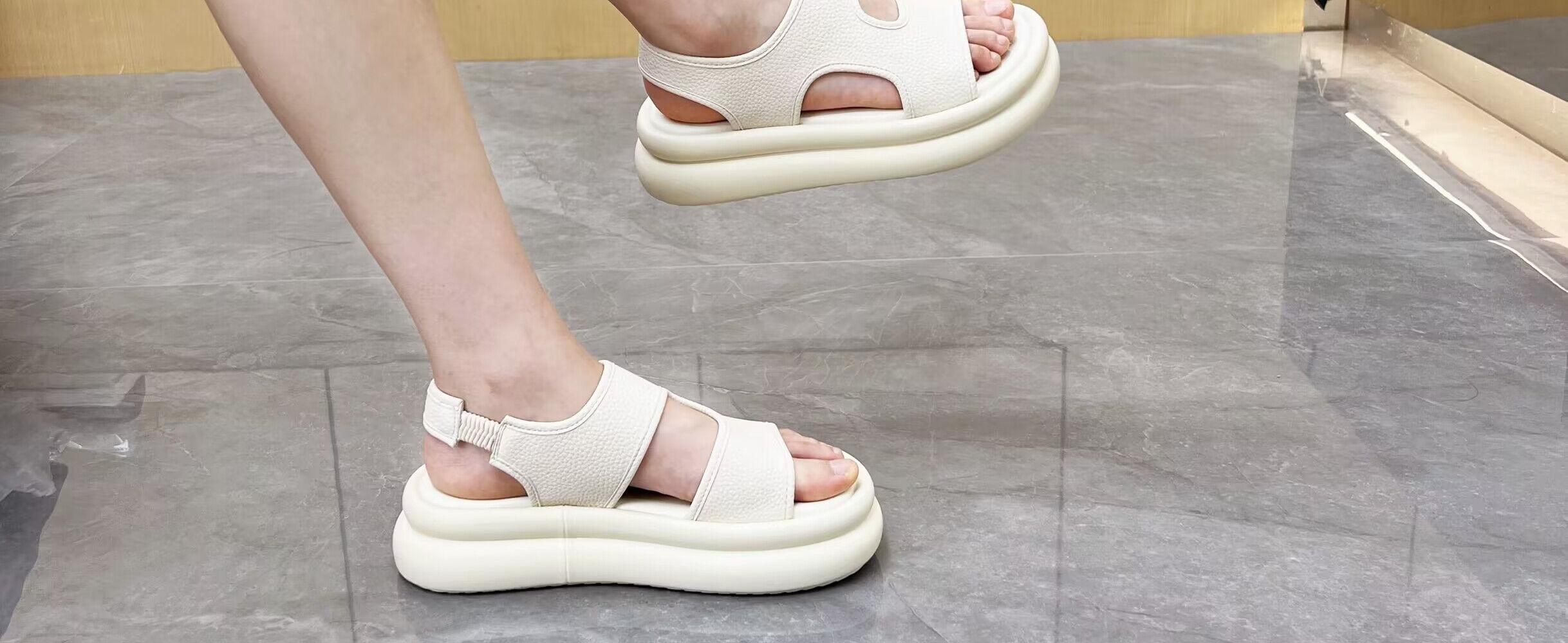 SUNTEK赵露思同款玛丽珍包头半拖鞋女厚底帆布魔术贴丑萌大头小白鞋
