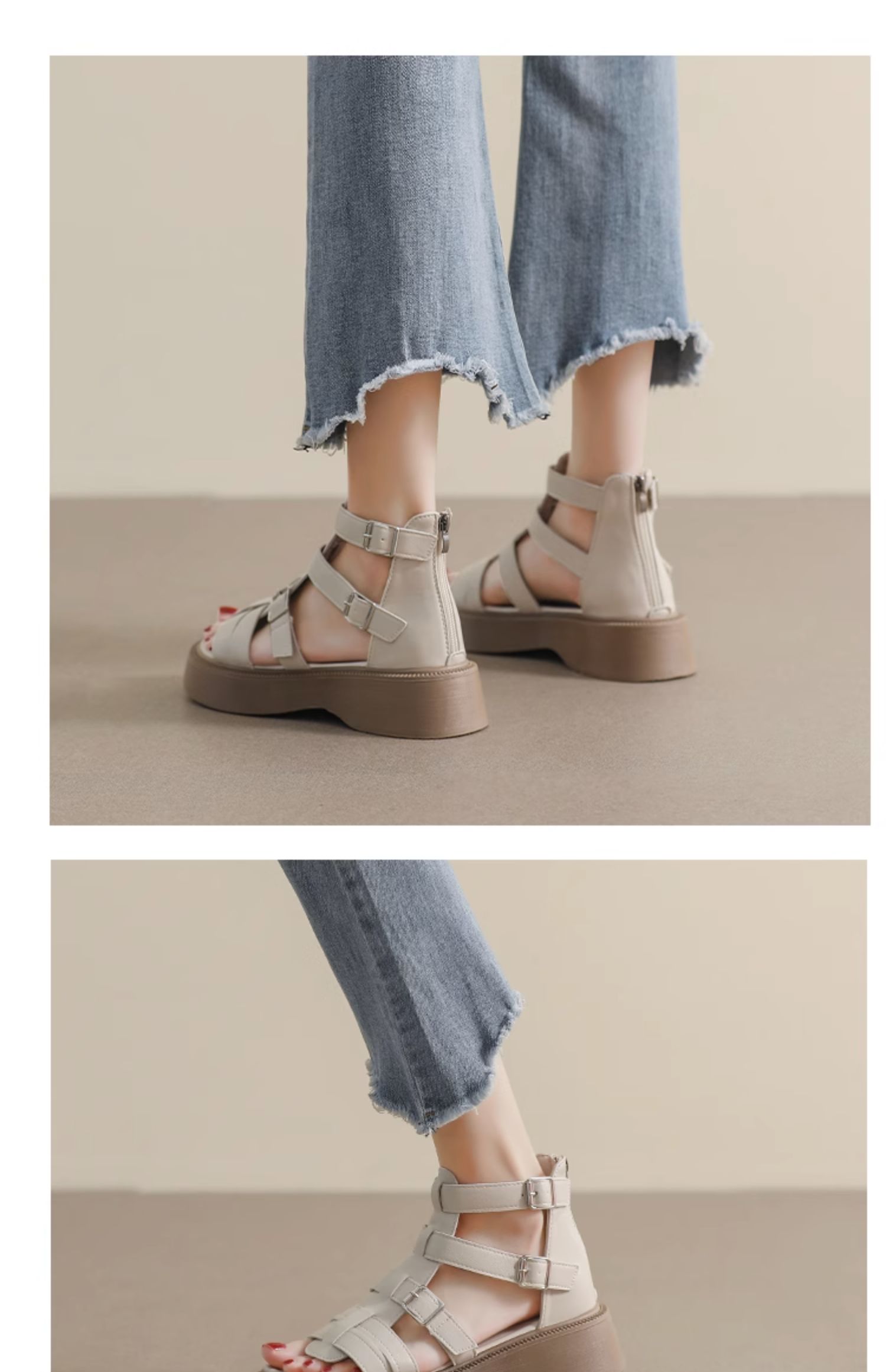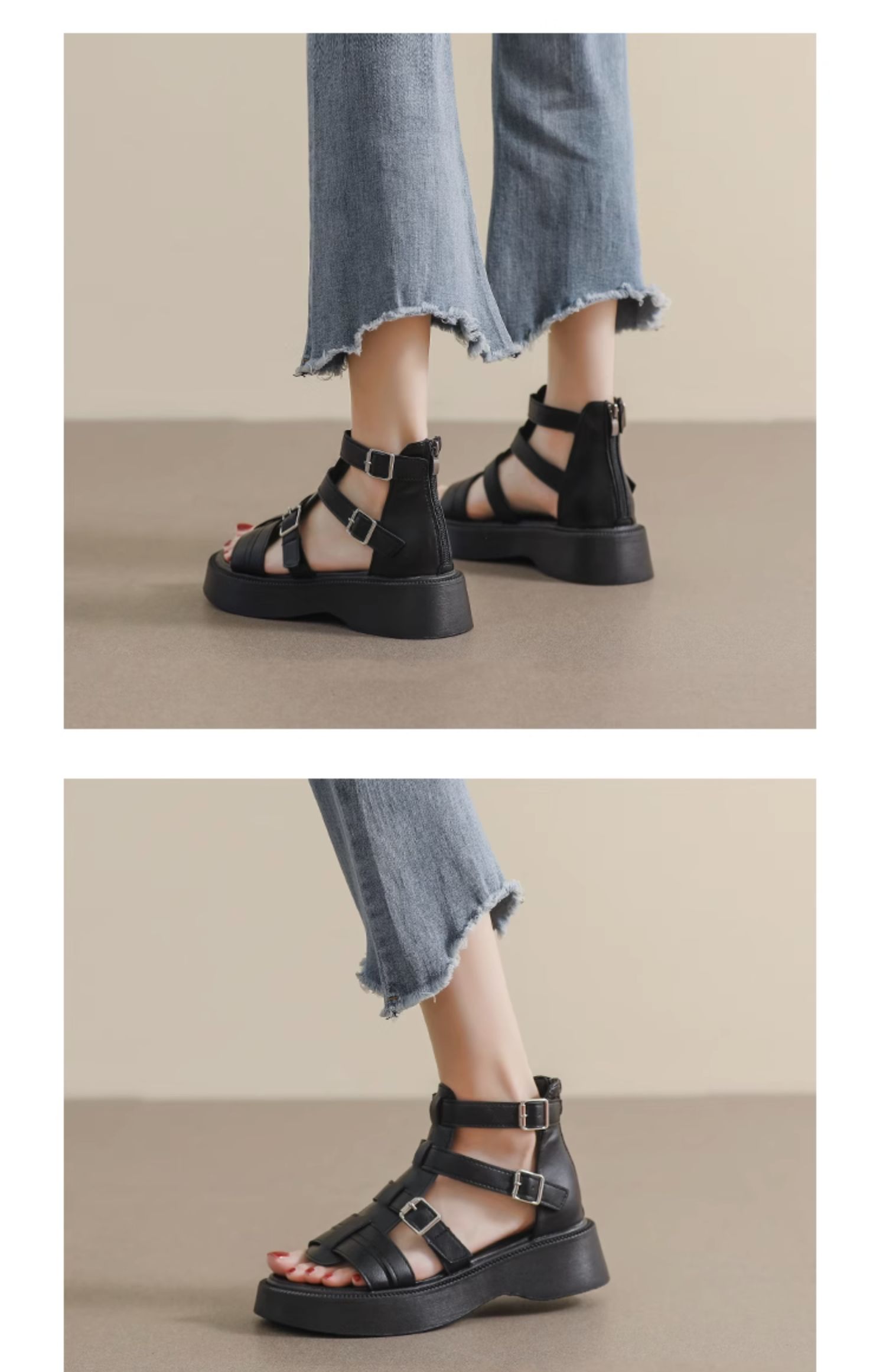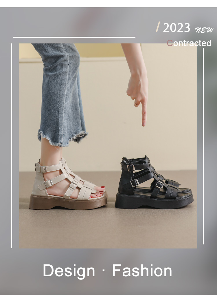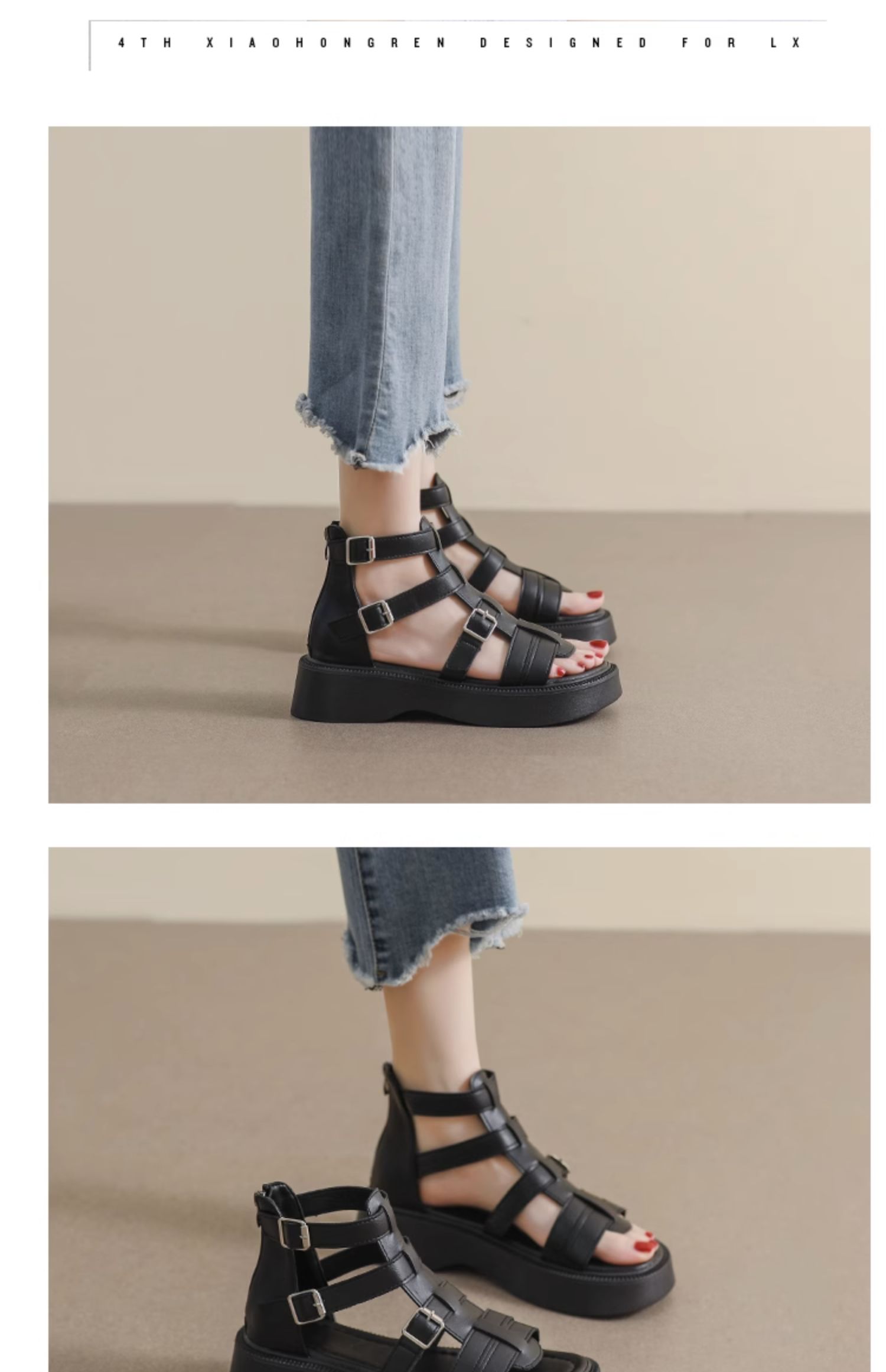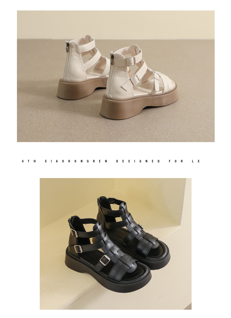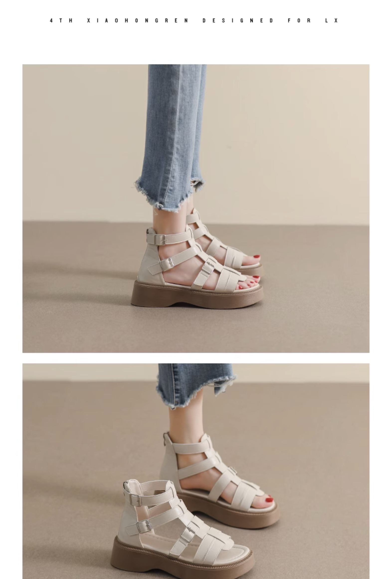 SUNTEK罗马凉鞋女夏季厚底学生百搭小众法式交叉绑带仙女风高帮镂空凉靴