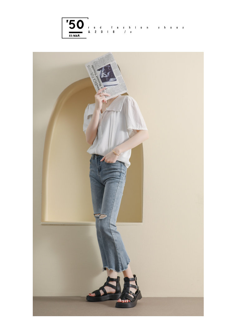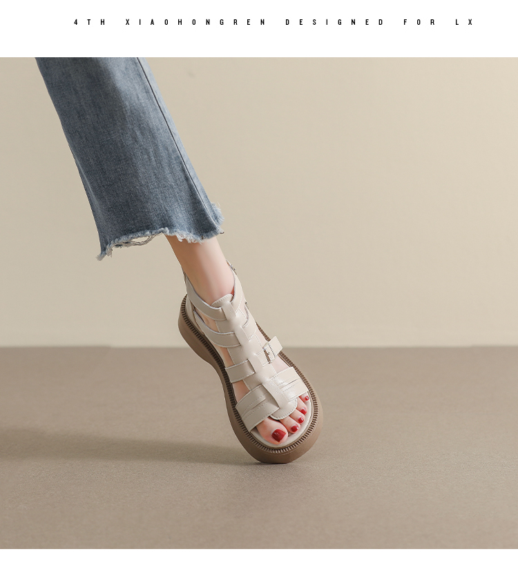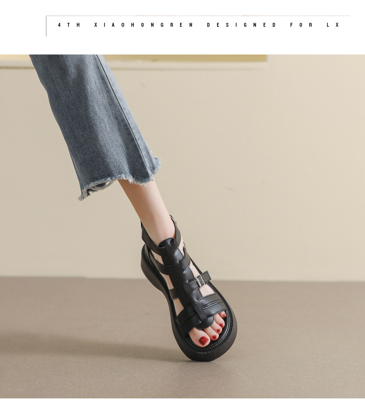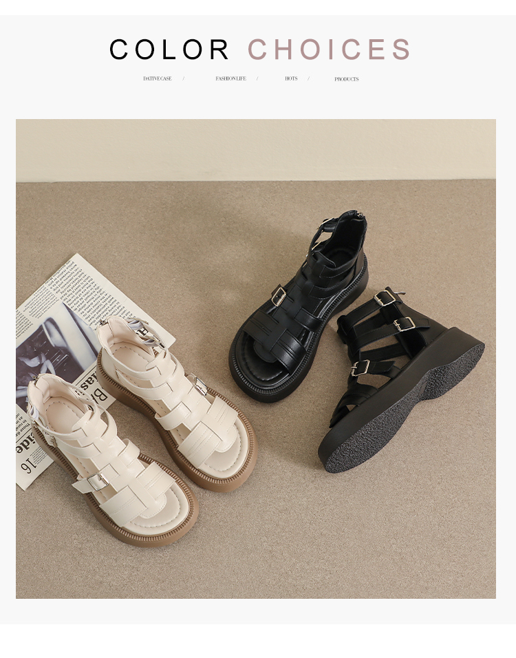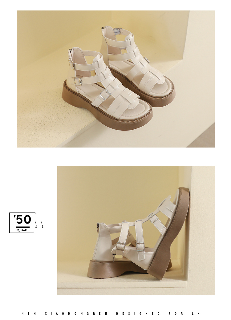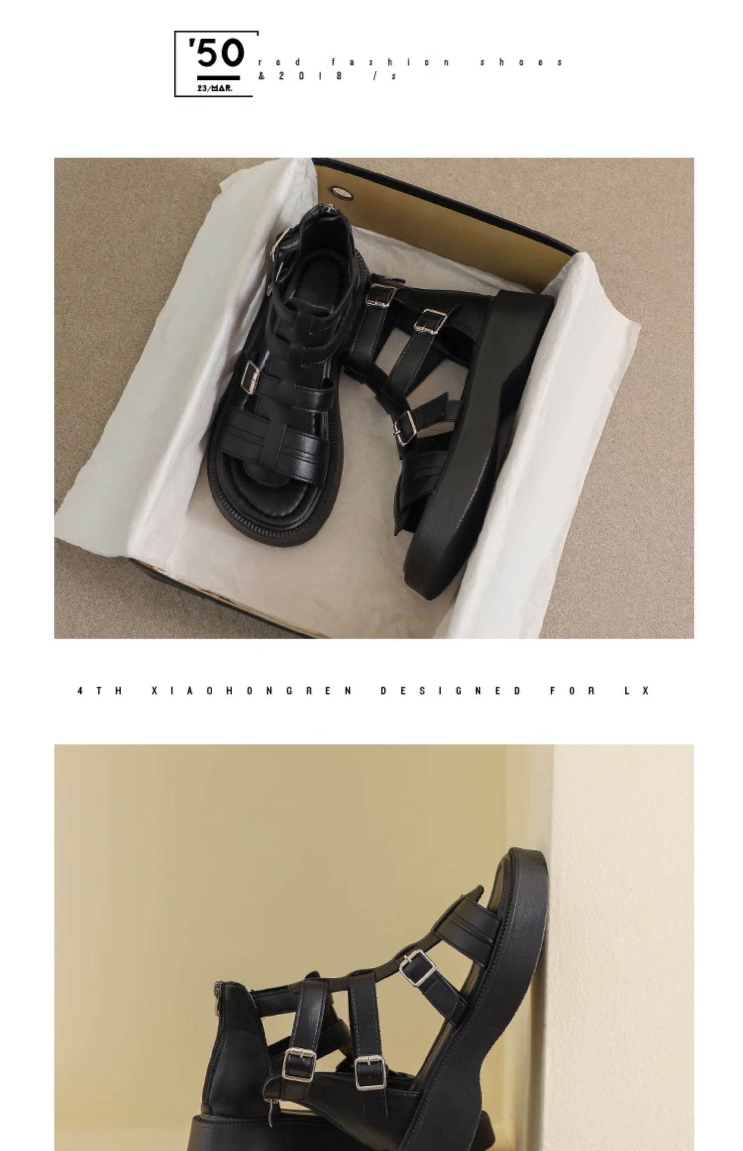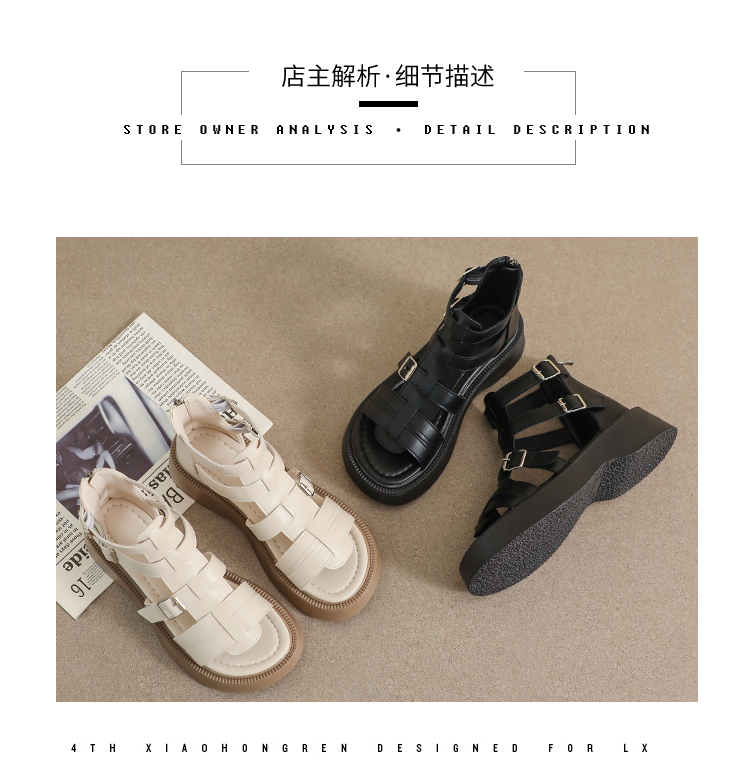 SUNTEK罗马凉鞋女夏季厚底学生百搭小众法式交叉绑带仙女风高帮镂空凉靴