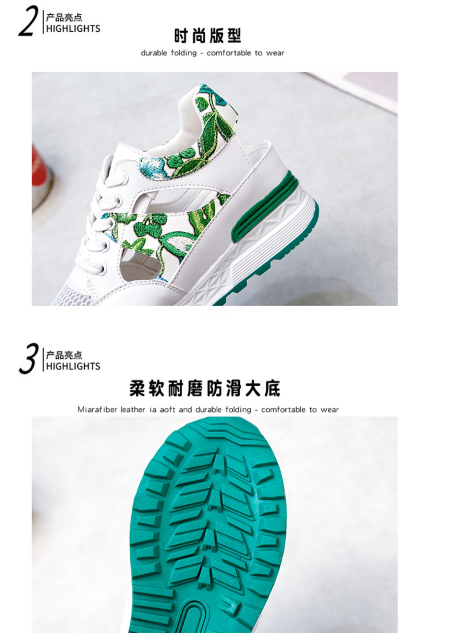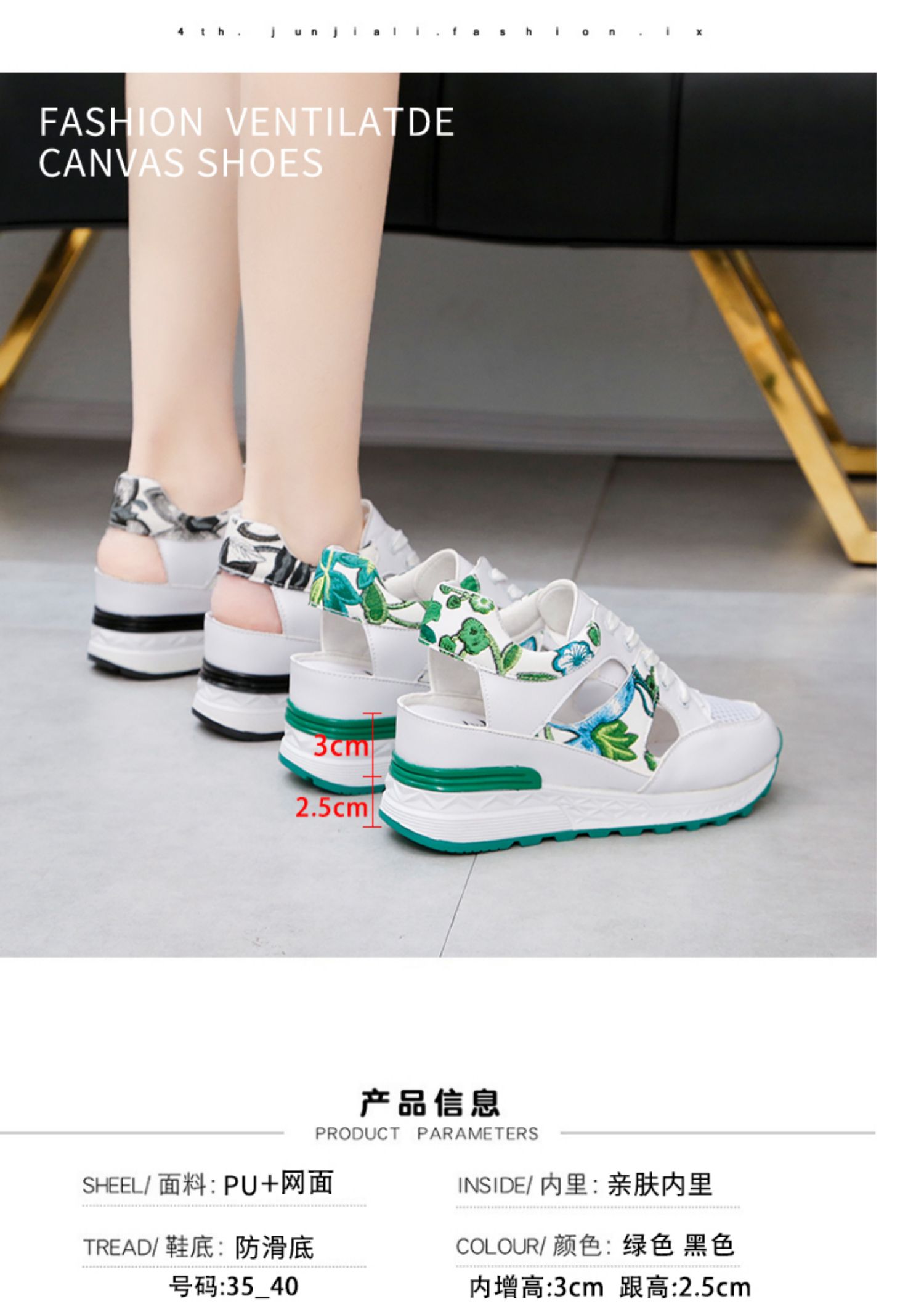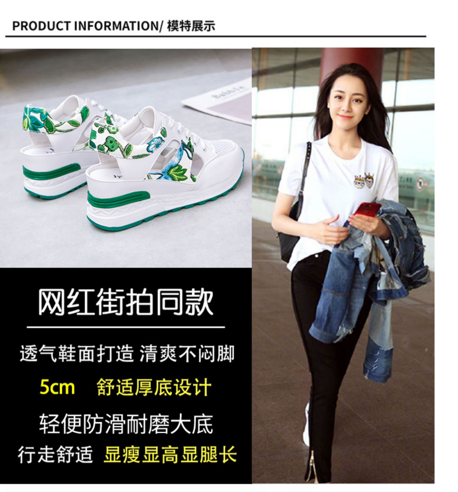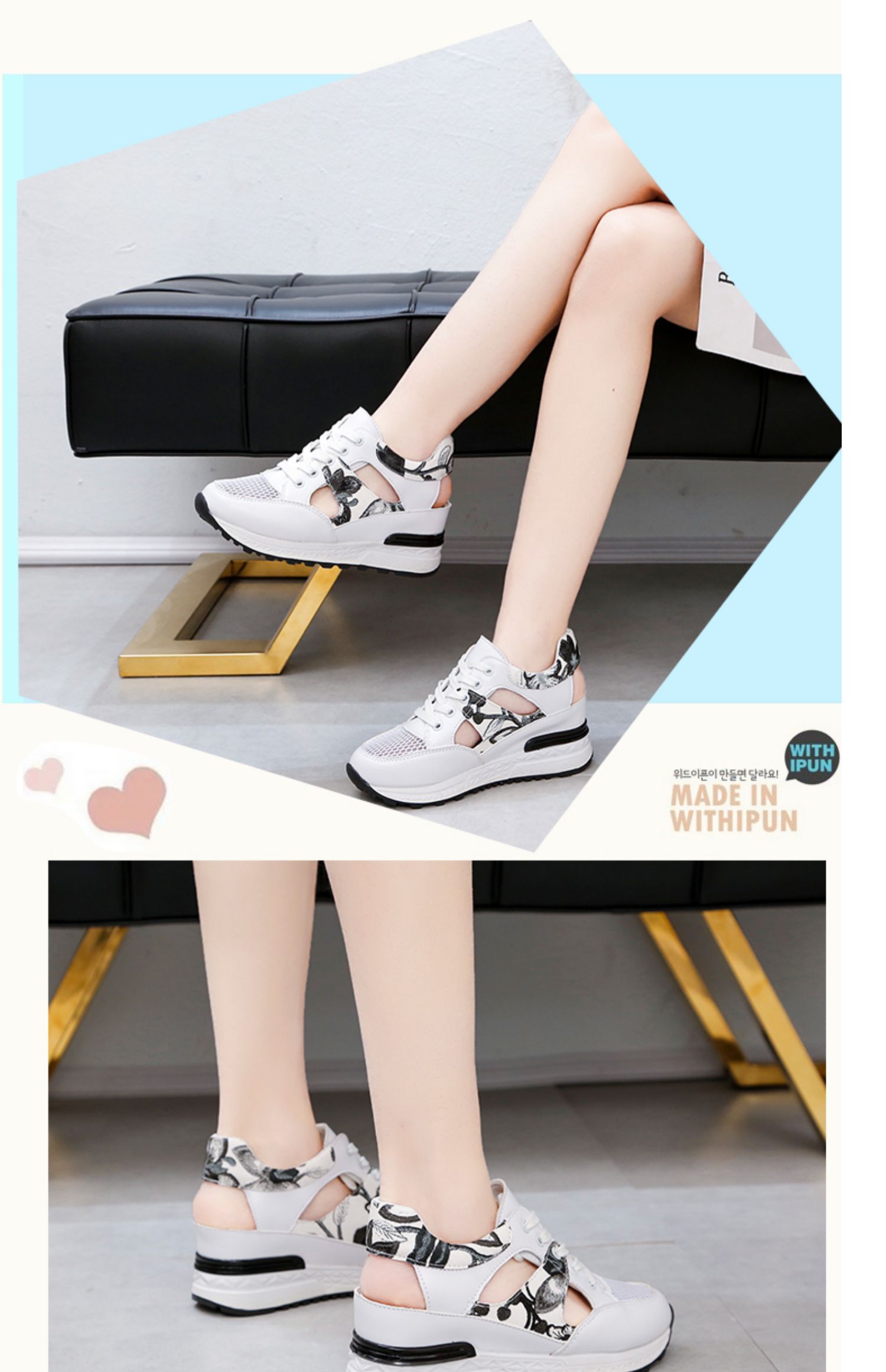 SUNTEK运动凉鞋女 夏季小白鞋包头镂空透气网面厚底内增高老爹鞋