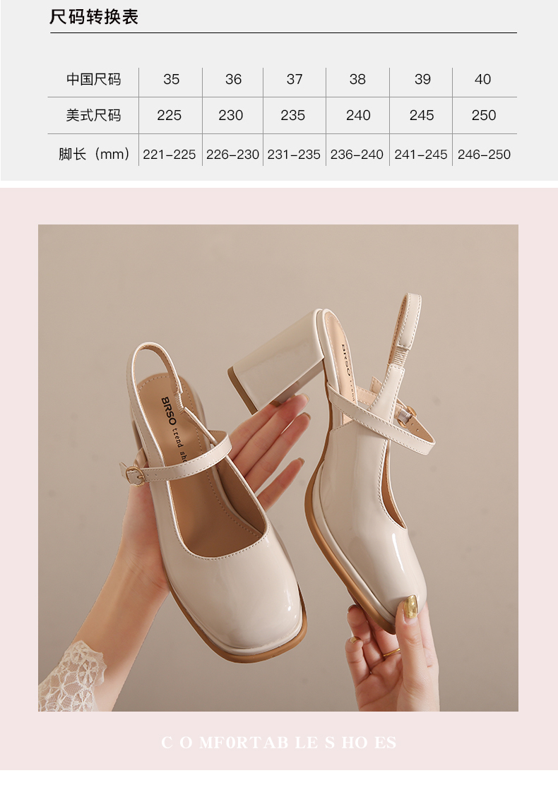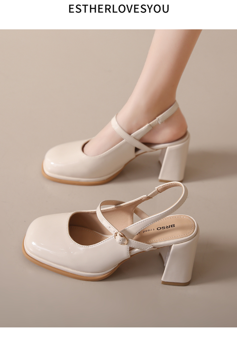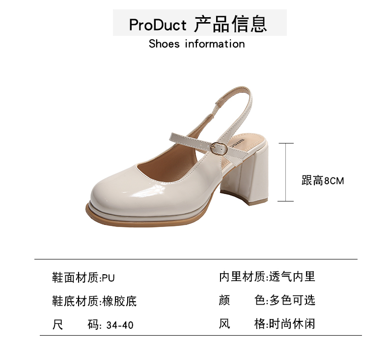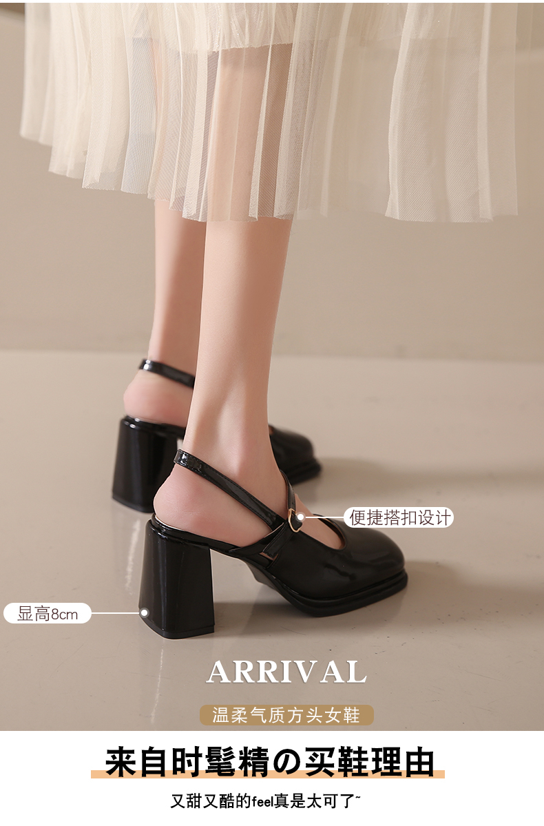SUNTEK包头凉鞋女款夏季 小香风配裙子玛丽珍时装凉鞋粗跟高跟鞋