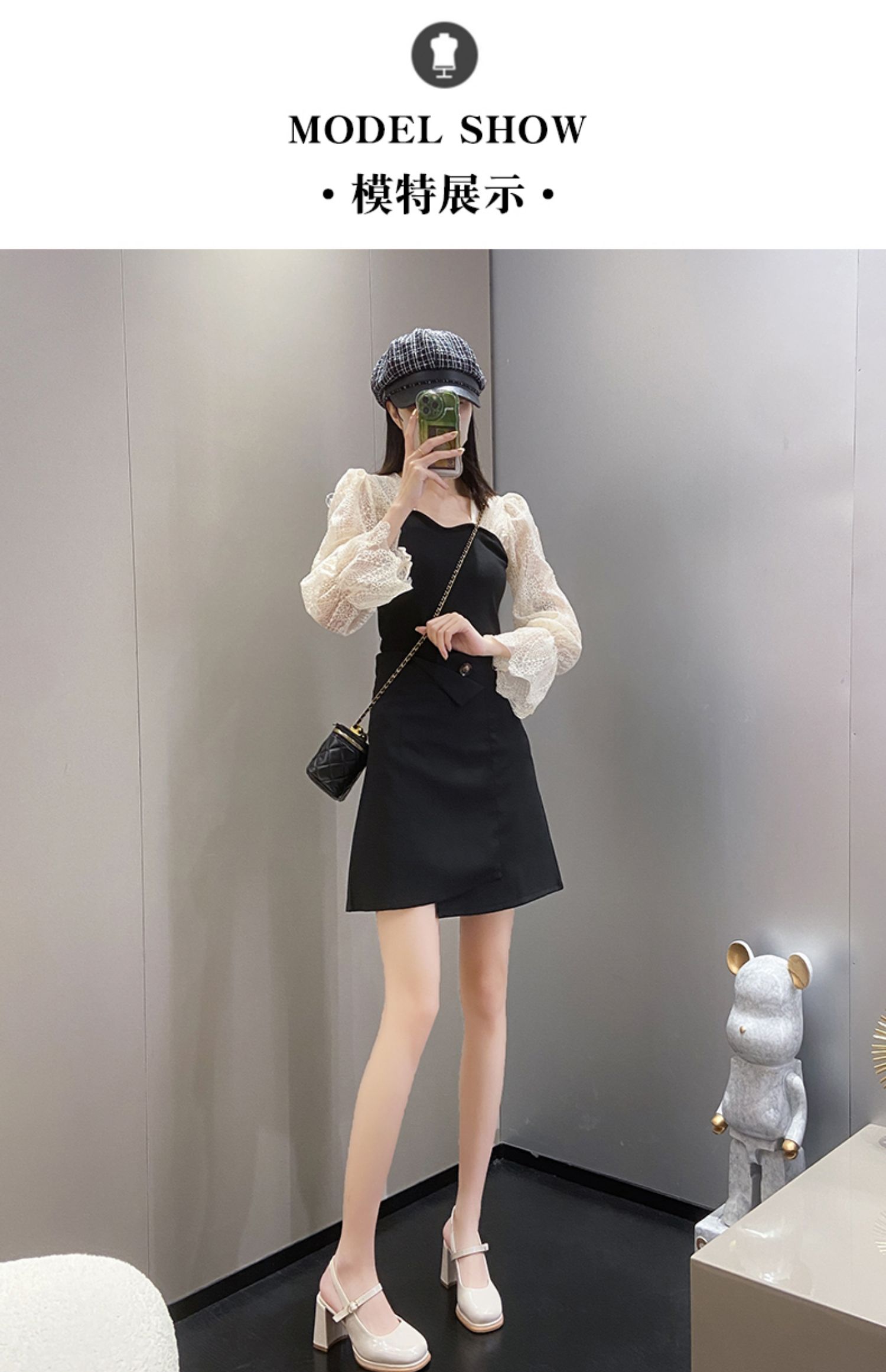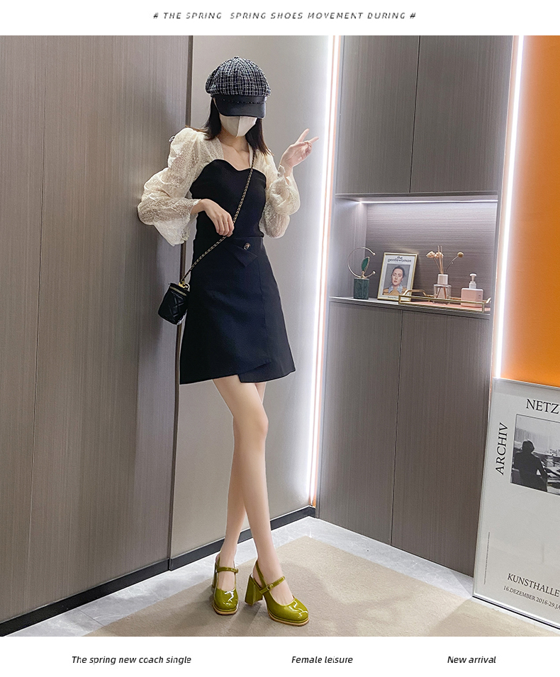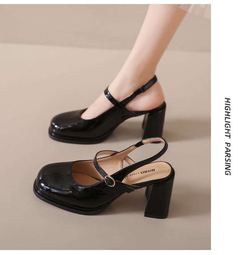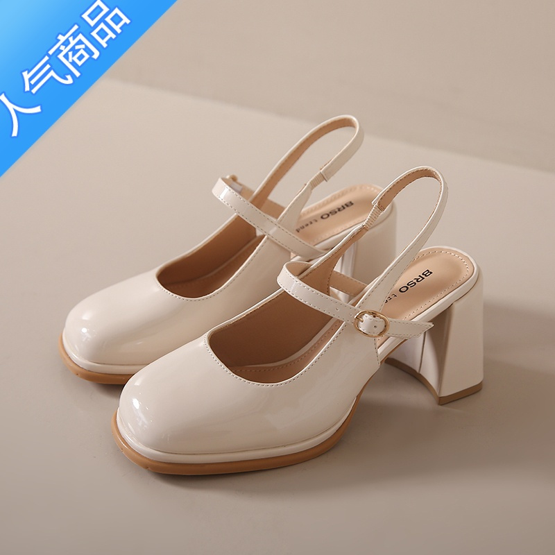 SUNTEK包头凉鞋女款夏季 小香风配裙子玛丽珍时装凉鞋粗跟高跟鞋
