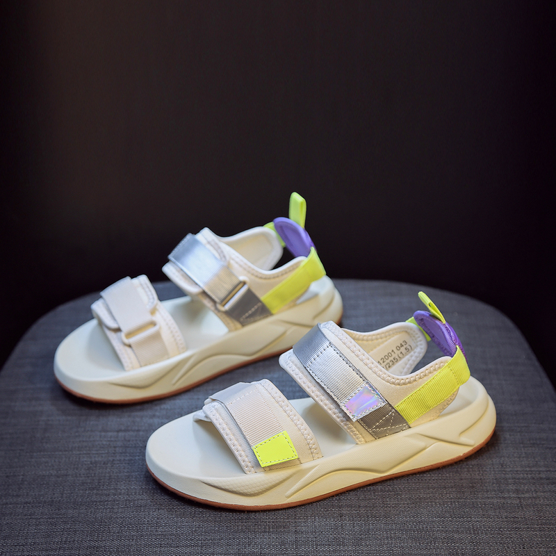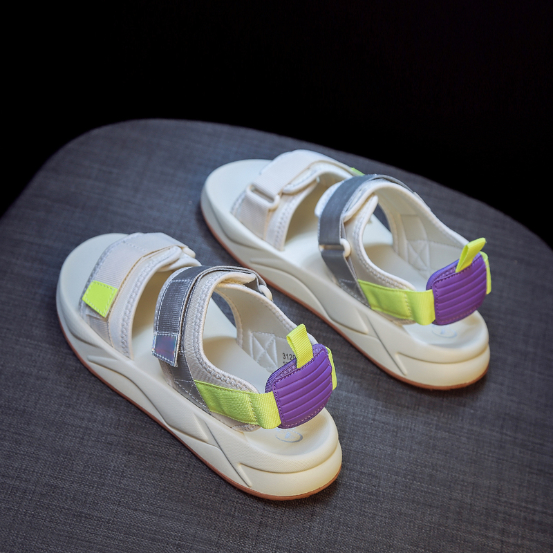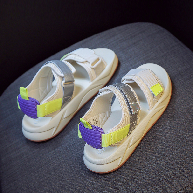 SUNTEK运动凉鞋女 夏季老爹百搭休闲平底沙滩鞋魔术贴网红
