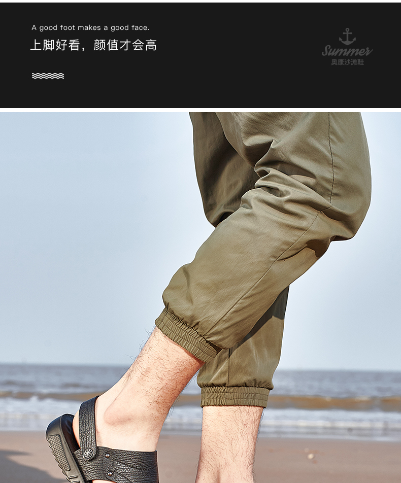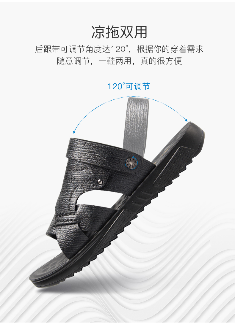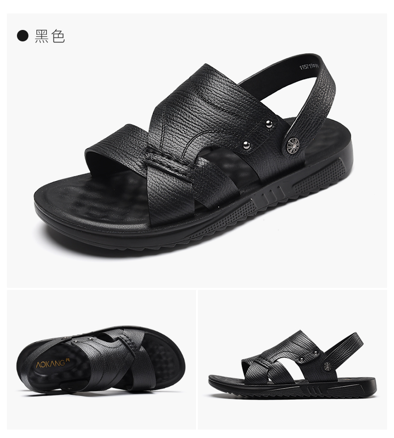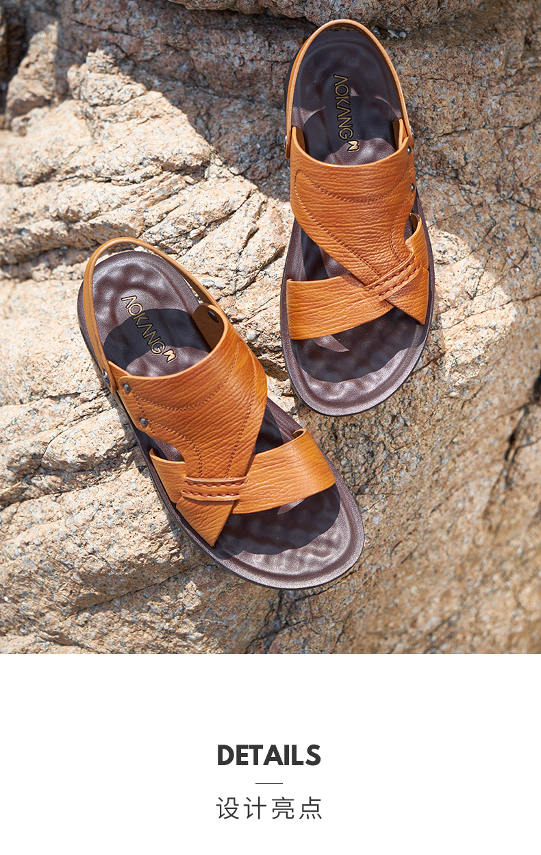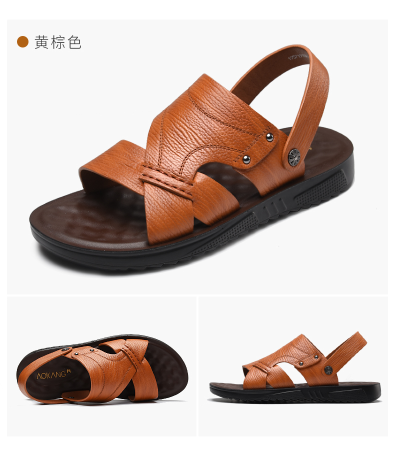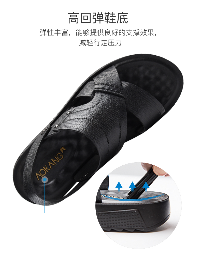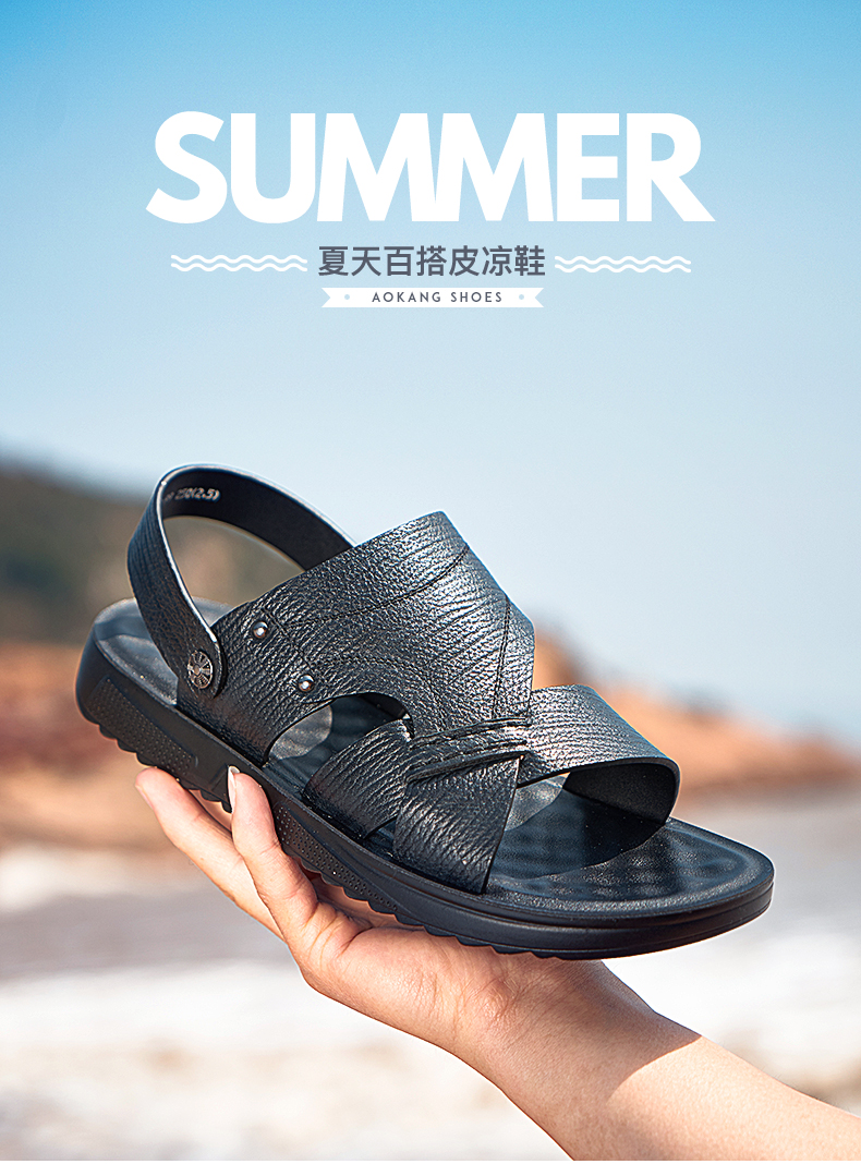 奥康男士凉鞋夏季牛皮软底沙滩鞋透气两用皮凉鞋