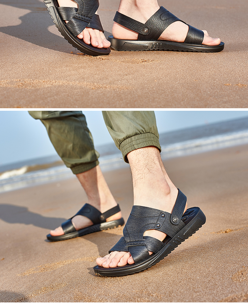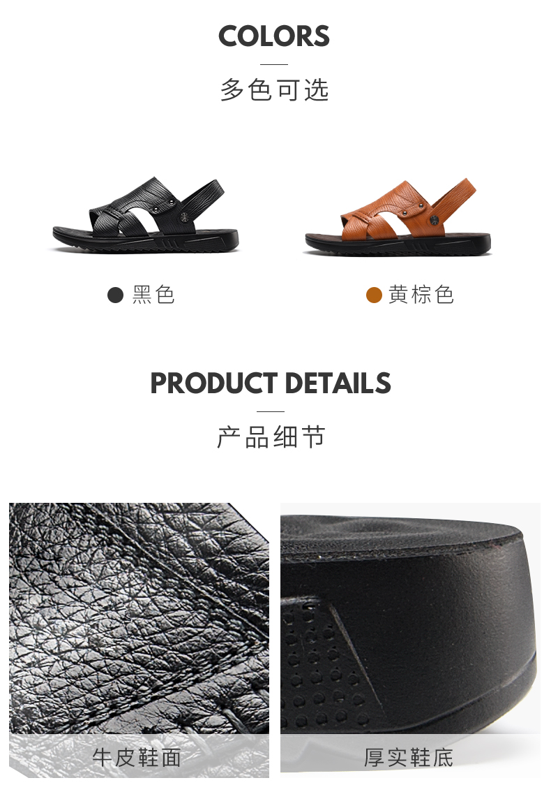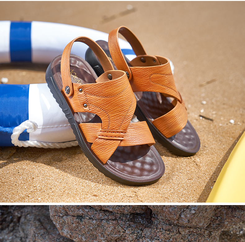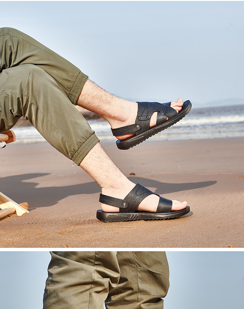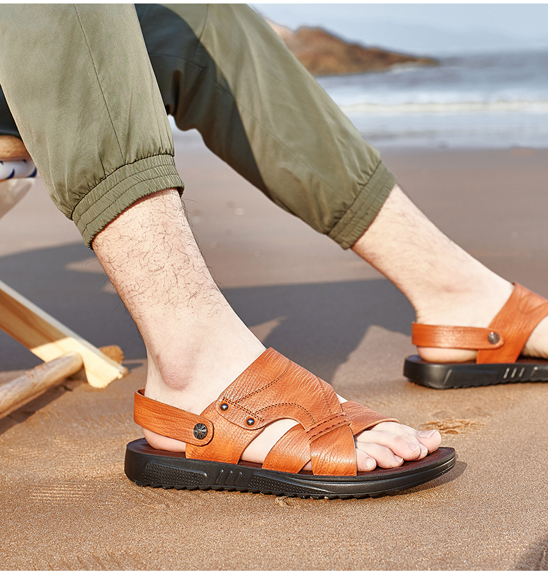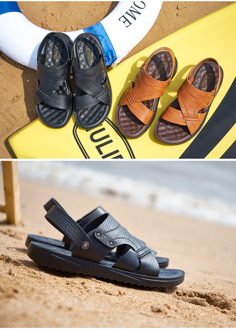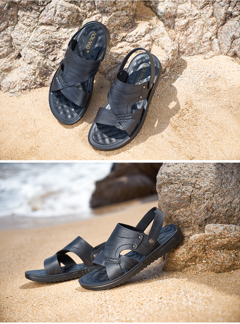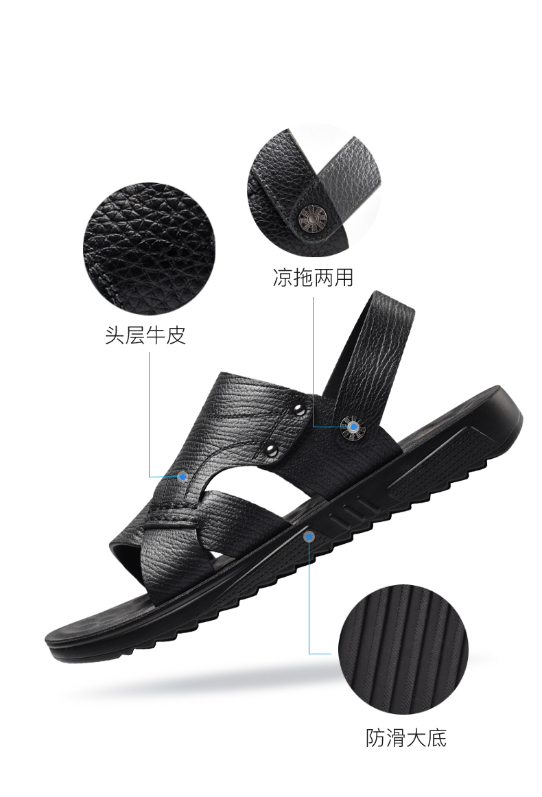 奥康男士凉鞋夏季牛皮软底沙滩鞋透气两用皮凉鞋