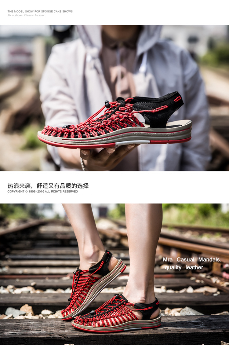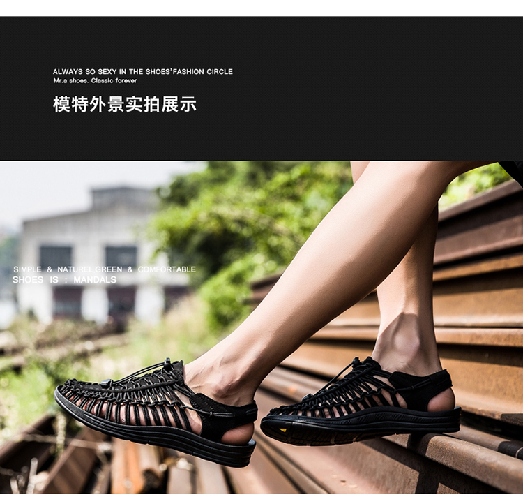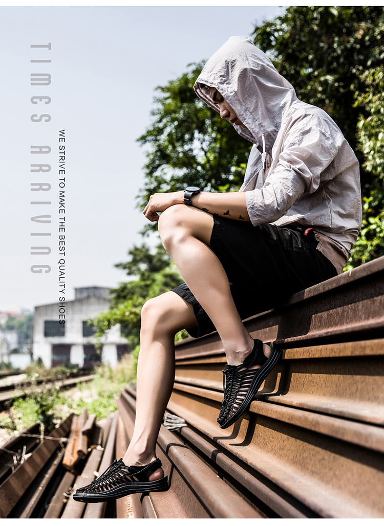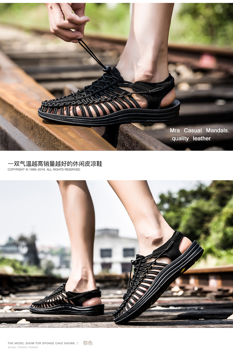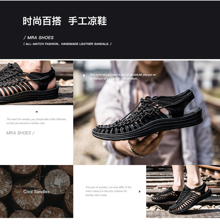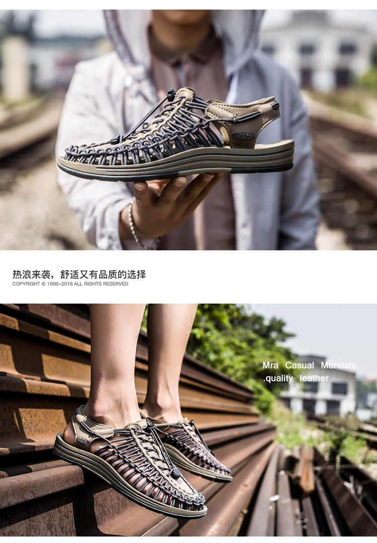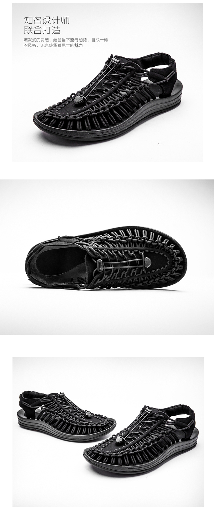 卡帝乐鳄鱼(CARTELO)夏季新款男士凉鞋韩版潮流凉拖鞋个性休闲沙滩鞋编织罗马凉鞋