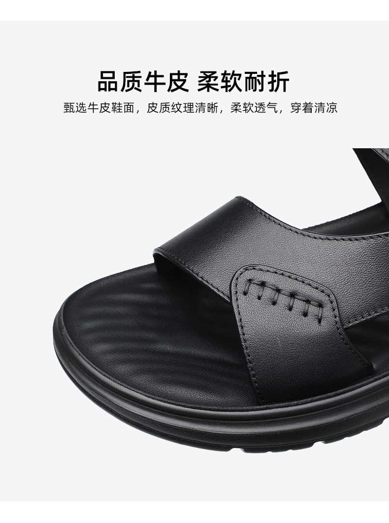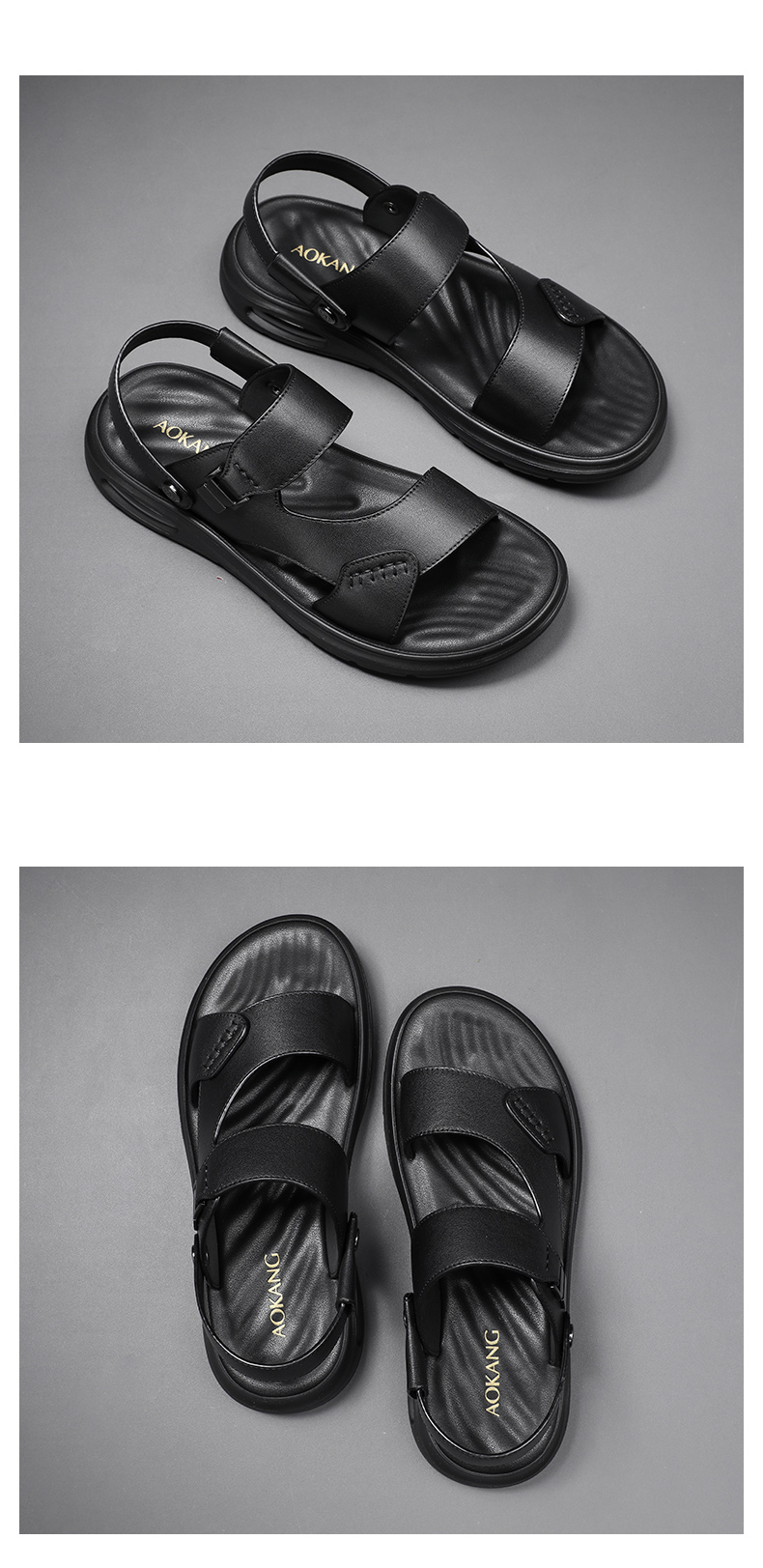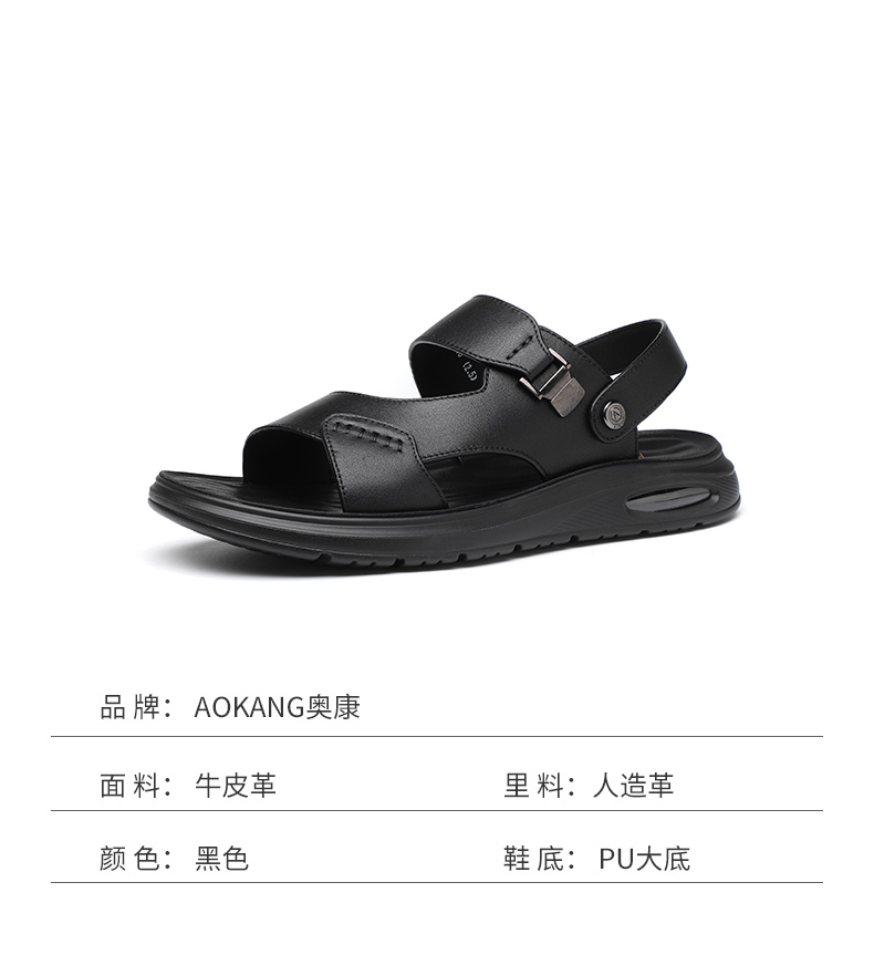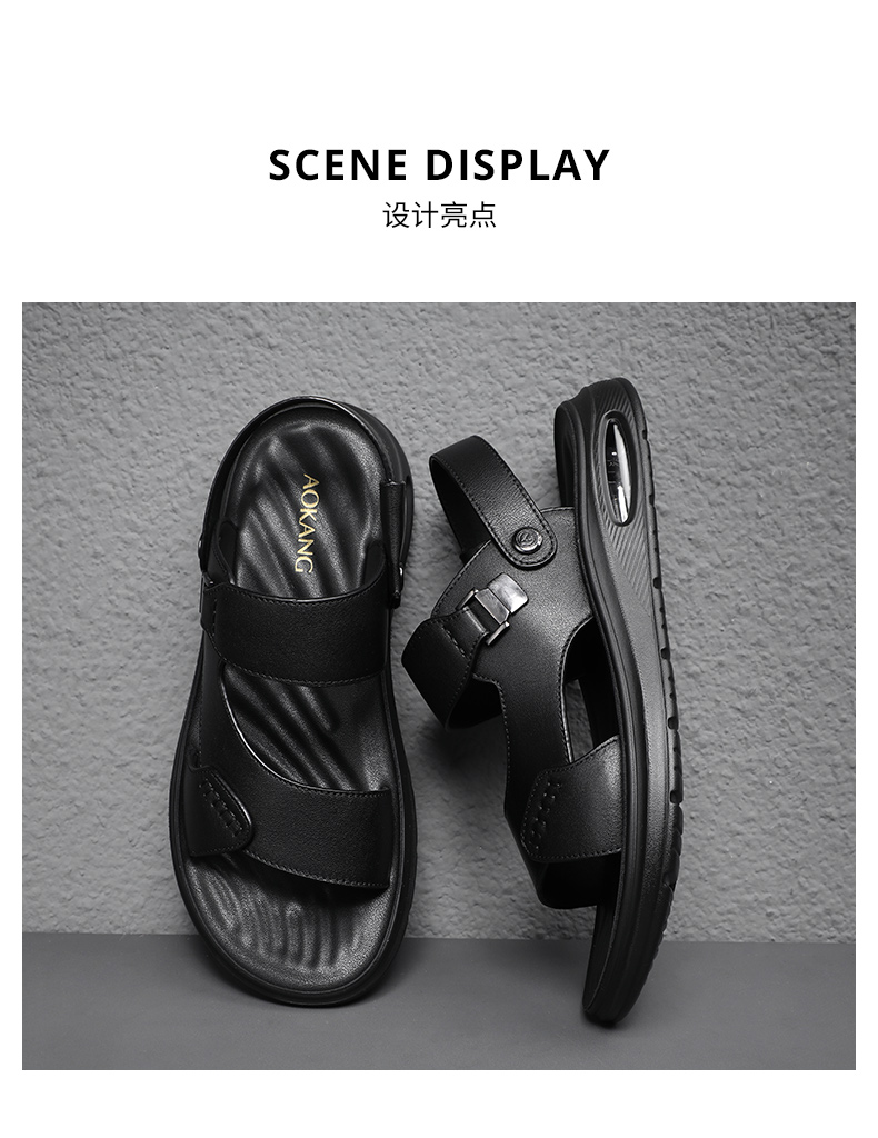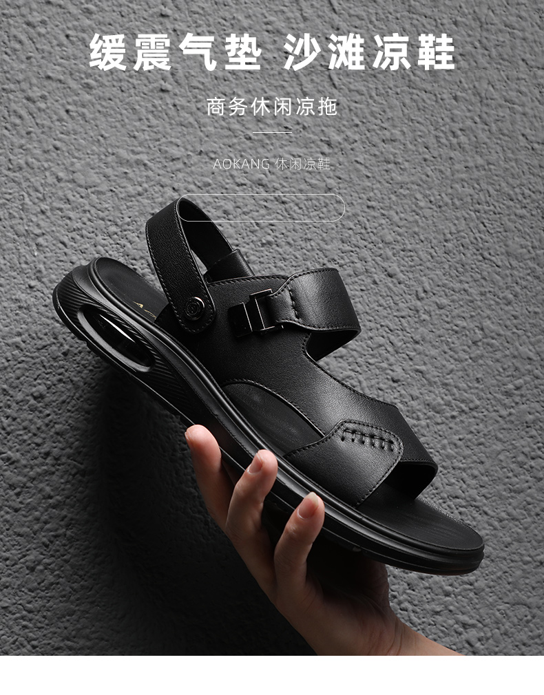 奥康男士凉鞋2023夏季新款牛皮厚底沙滩鞋防滑气垫韩版潮流皮凉鞋