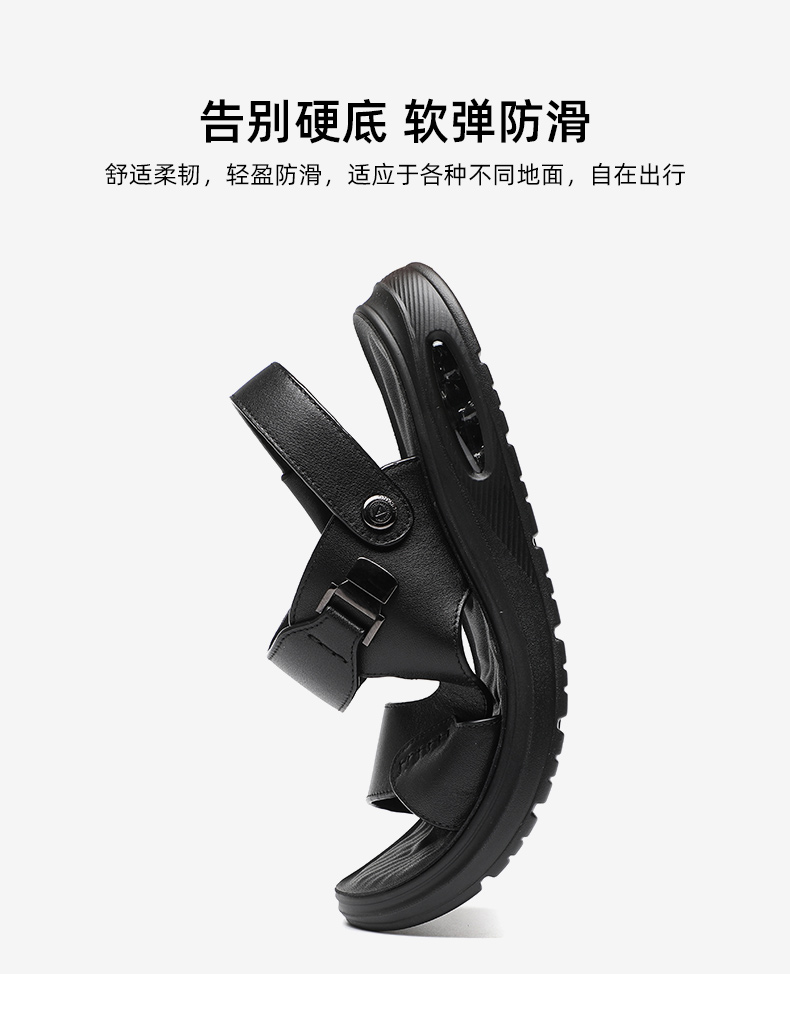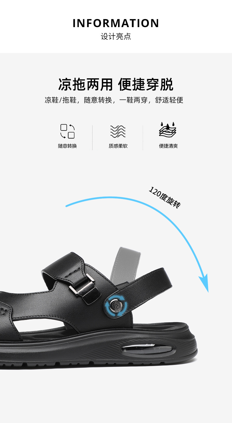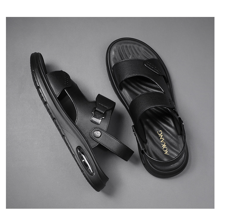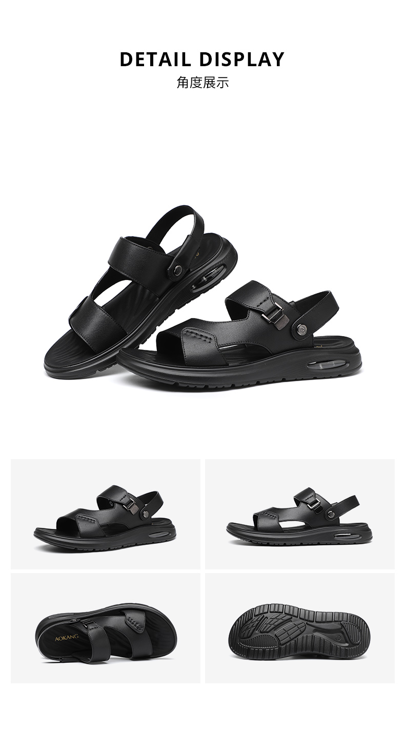 奥康男士凉鞋2023夏季新款牛皮厚底沙滩鞋防滑气垫韩版潮流皮凉鞋