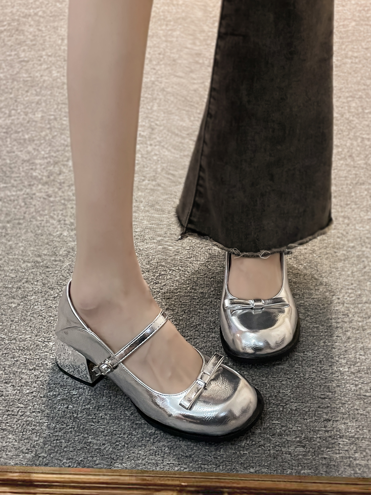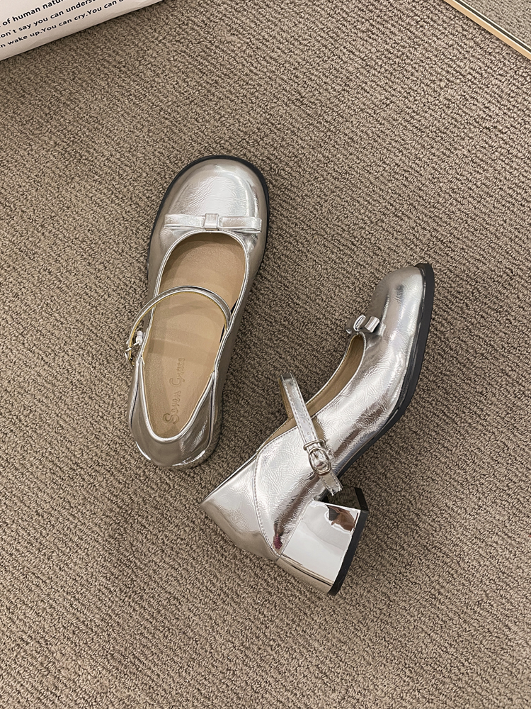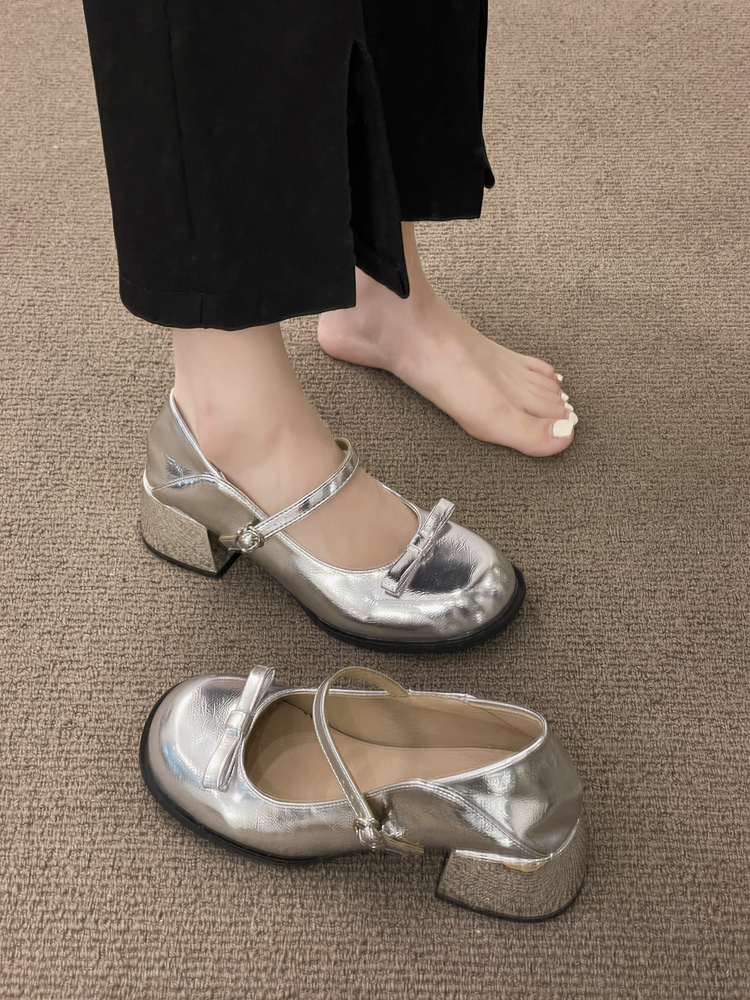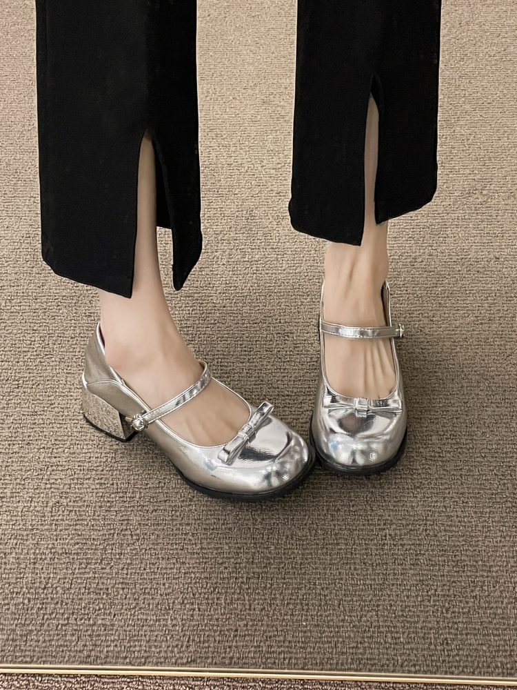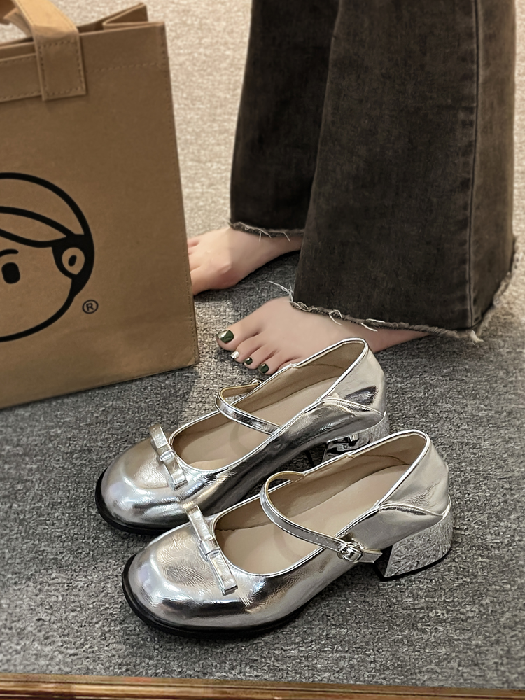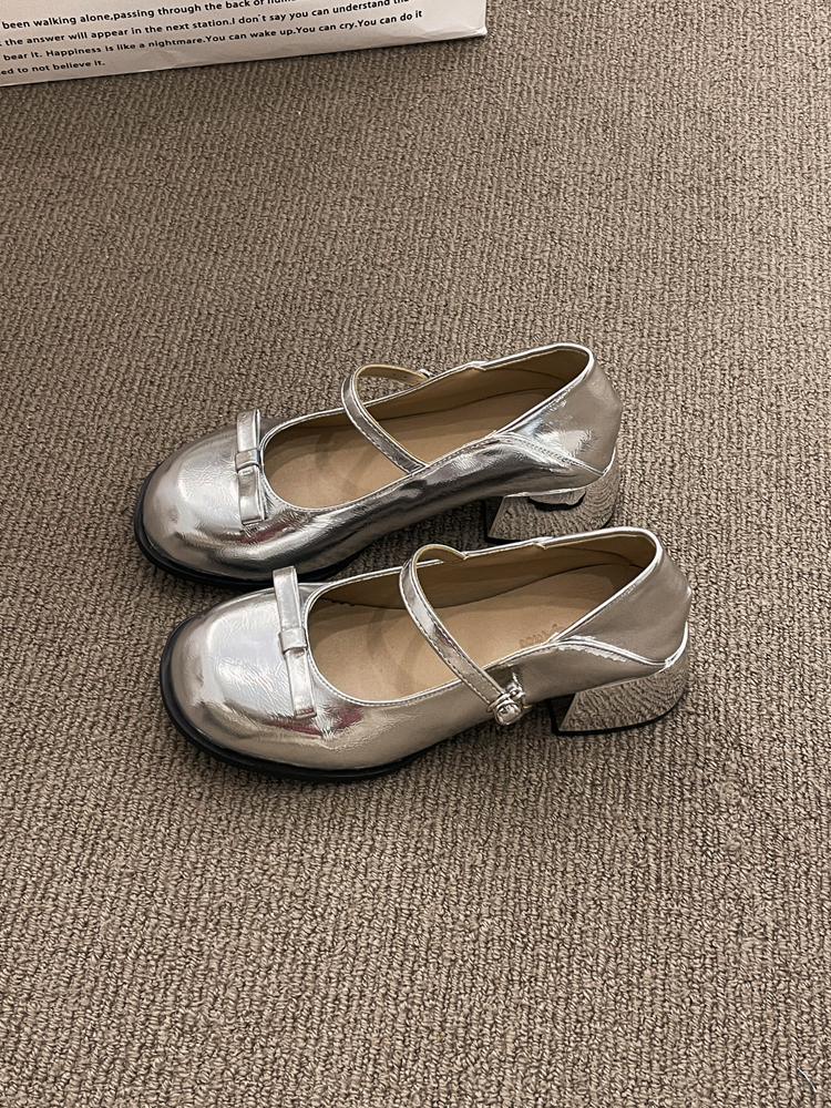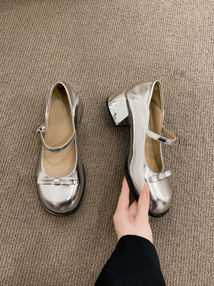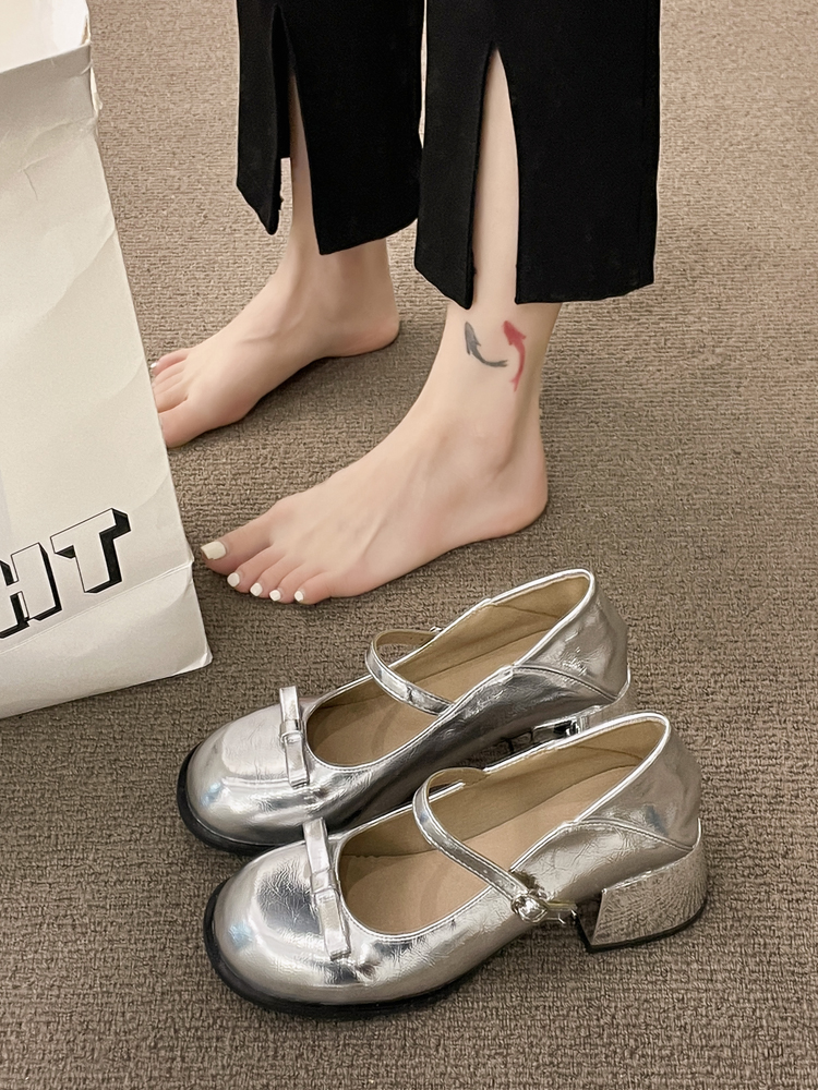 SUNTEK粗跟高跟鞋玛丽珍小皮鞋女夏季 小众设计感温柔晚风单鞋