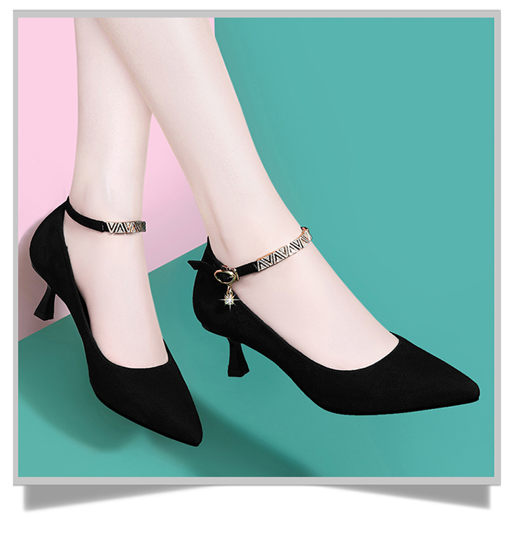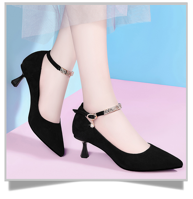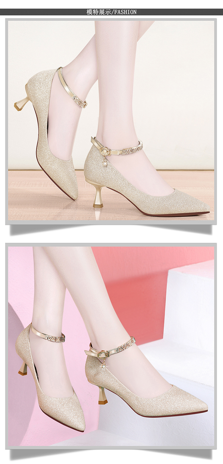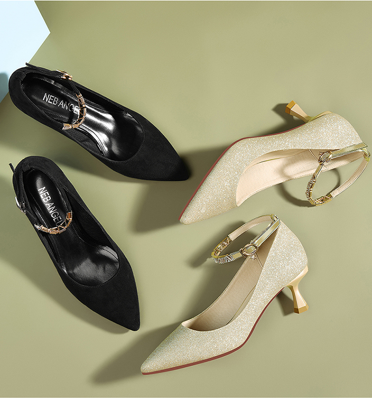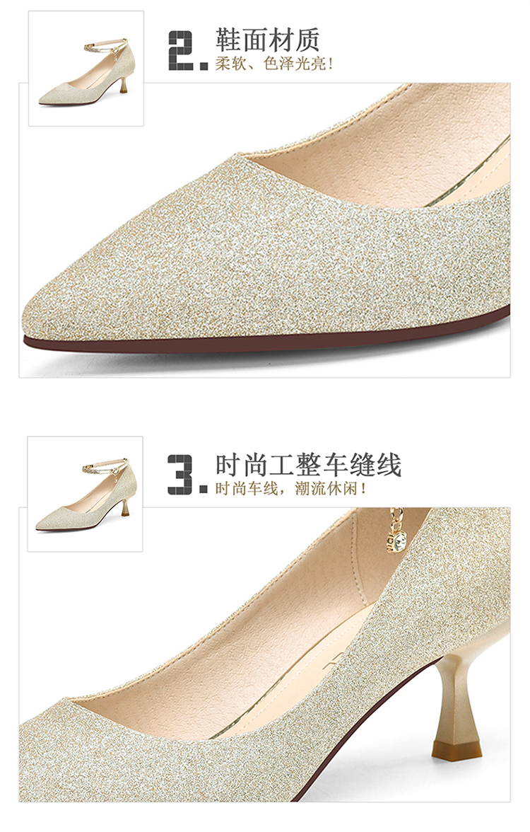 SUNTEK旗袍高跟鞋软皮不磨脚百搭中跟夏款浅口单鞋女春细跟尖头5cm