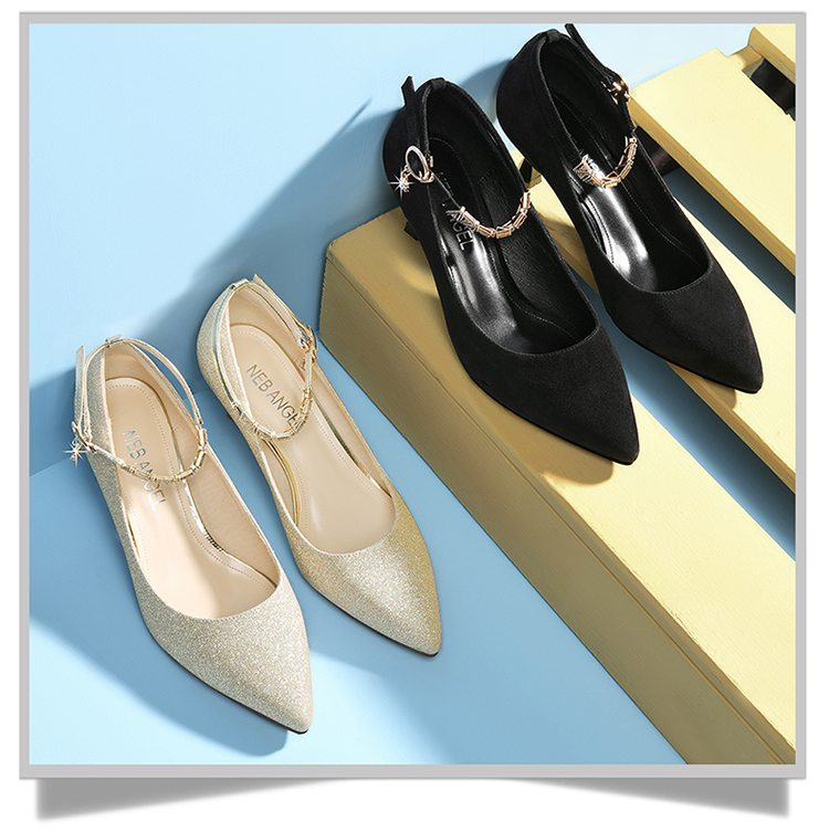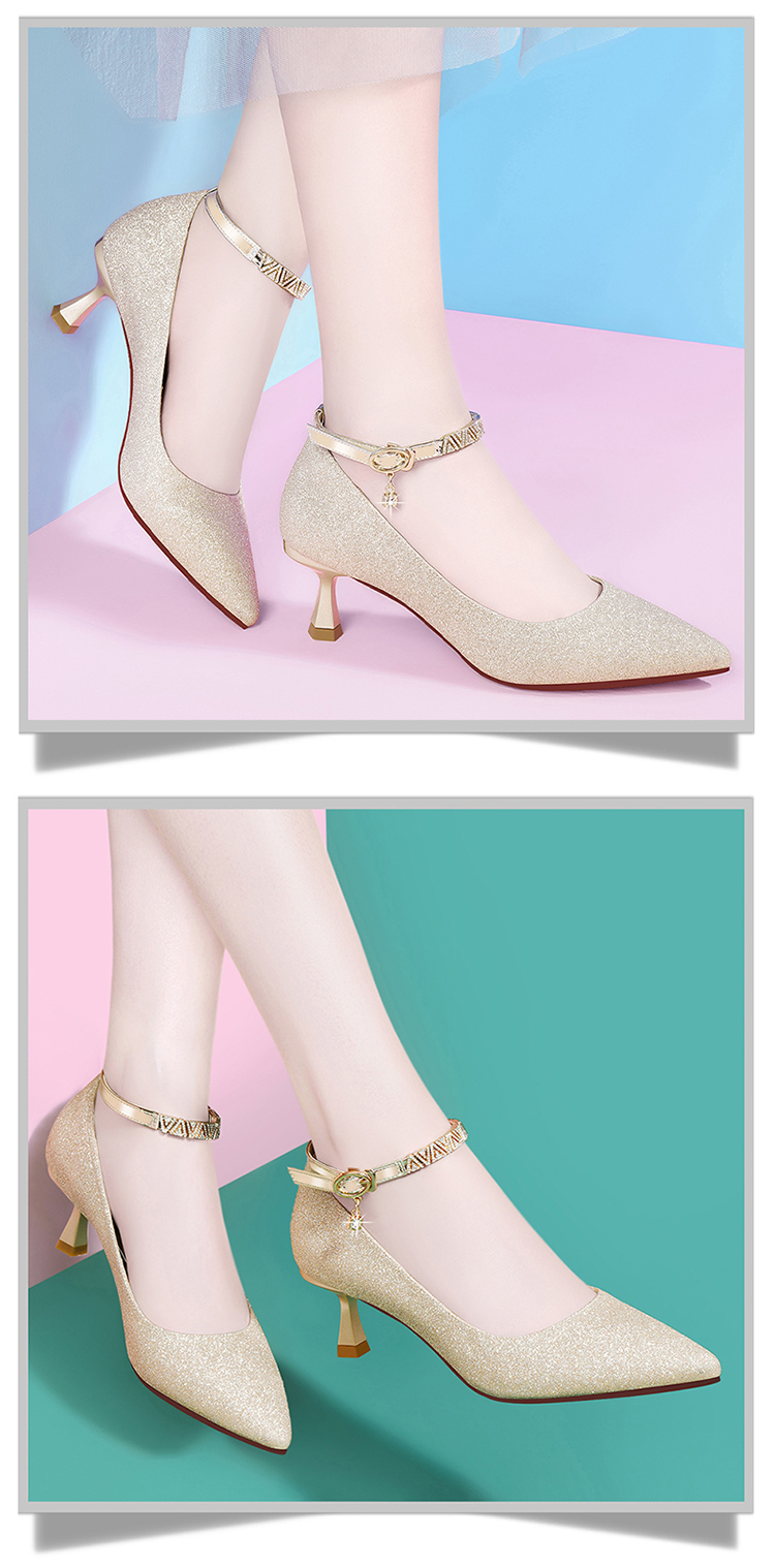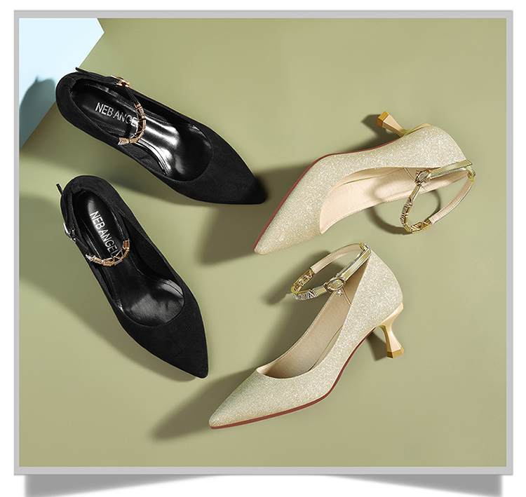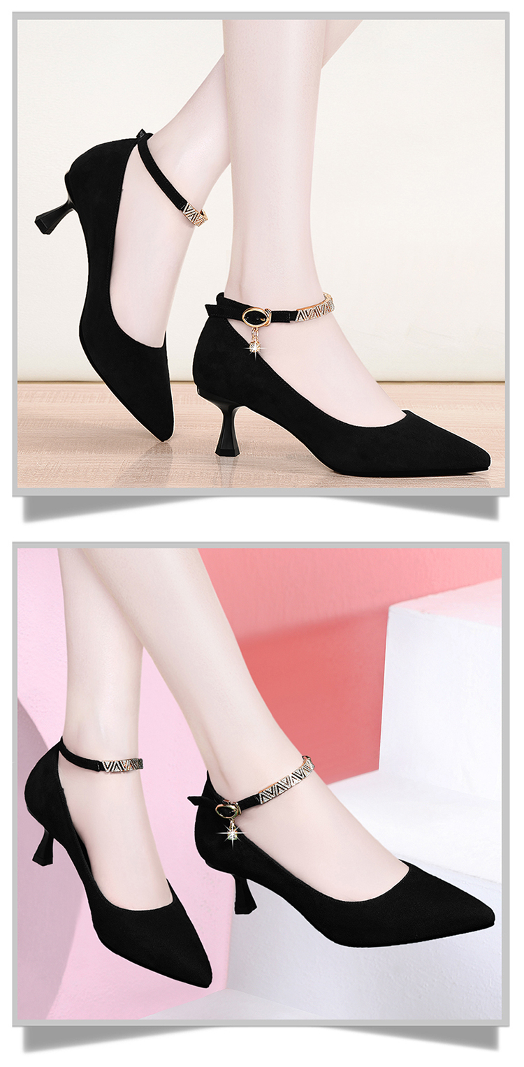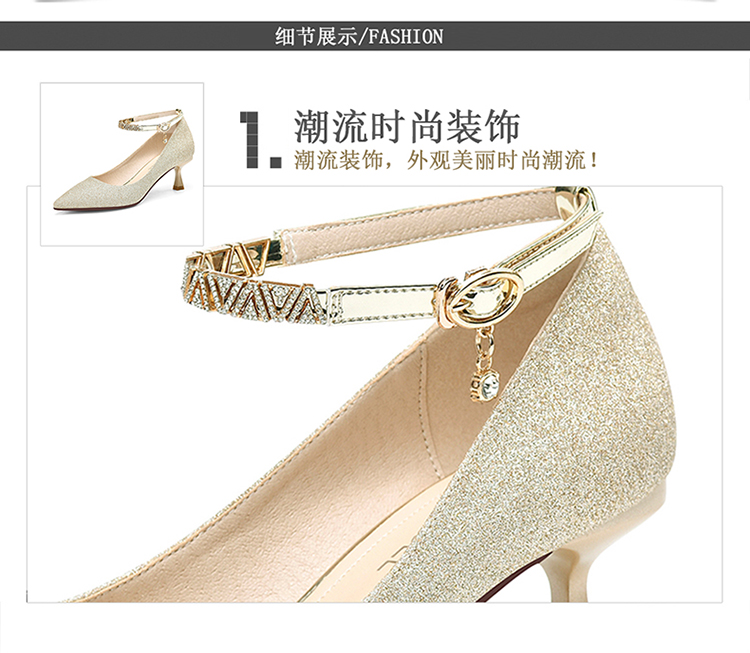 SUNTEK旗袍高跟鞋软皮不磨脚百搭中跟夏款浅口单鞋女春细跟尖头5cm