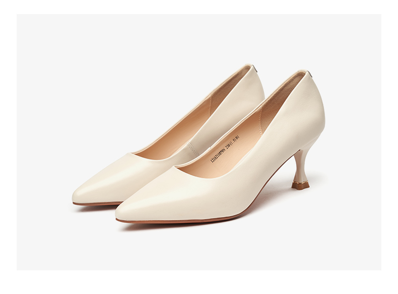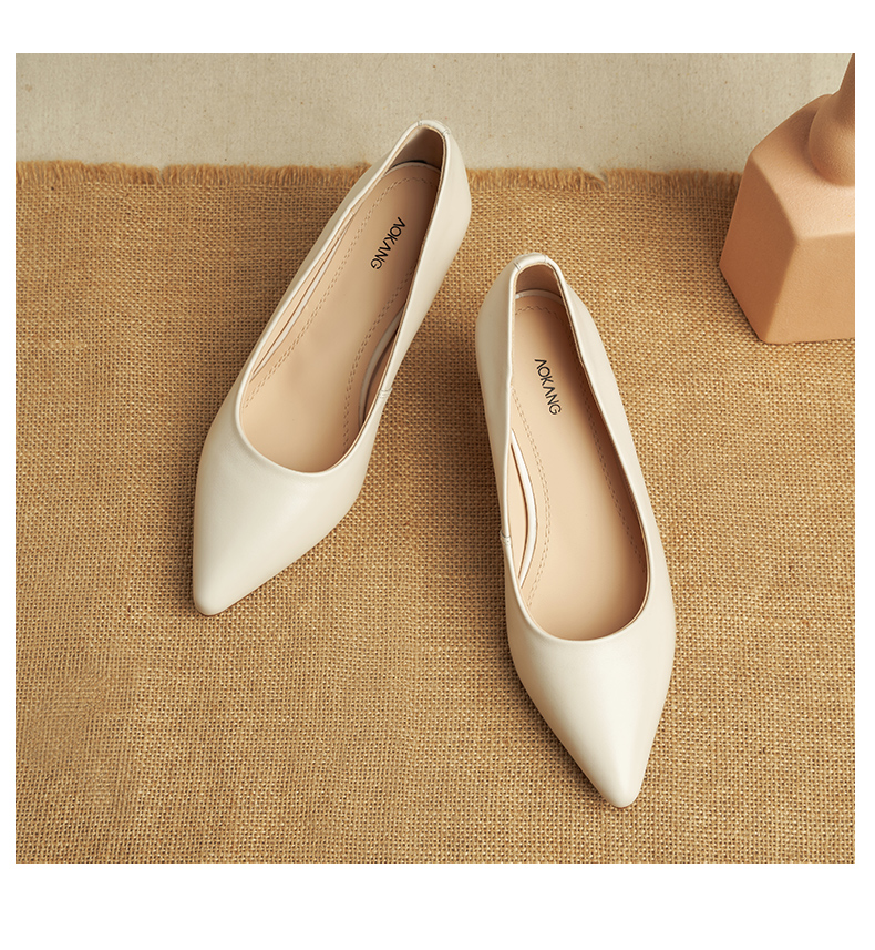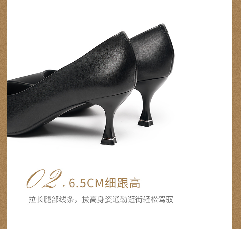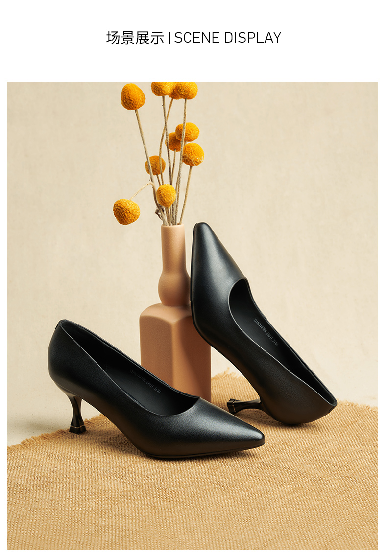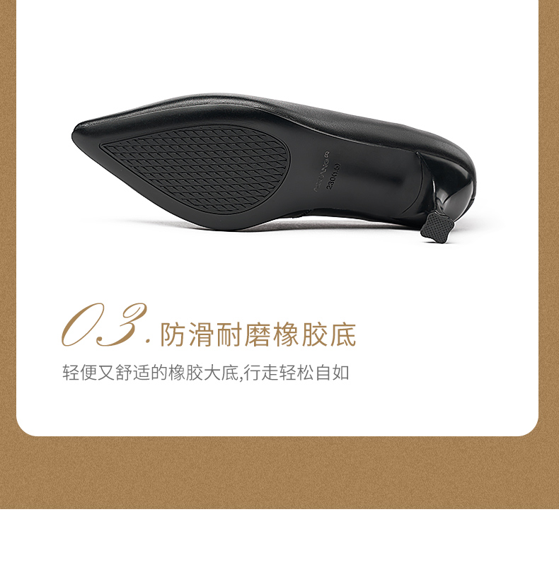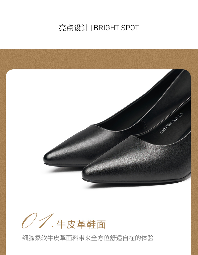 奥康女鞋新款细跟高跟鞋女牛皮尖头橡胶底空姐工作鞋上班职业鞋