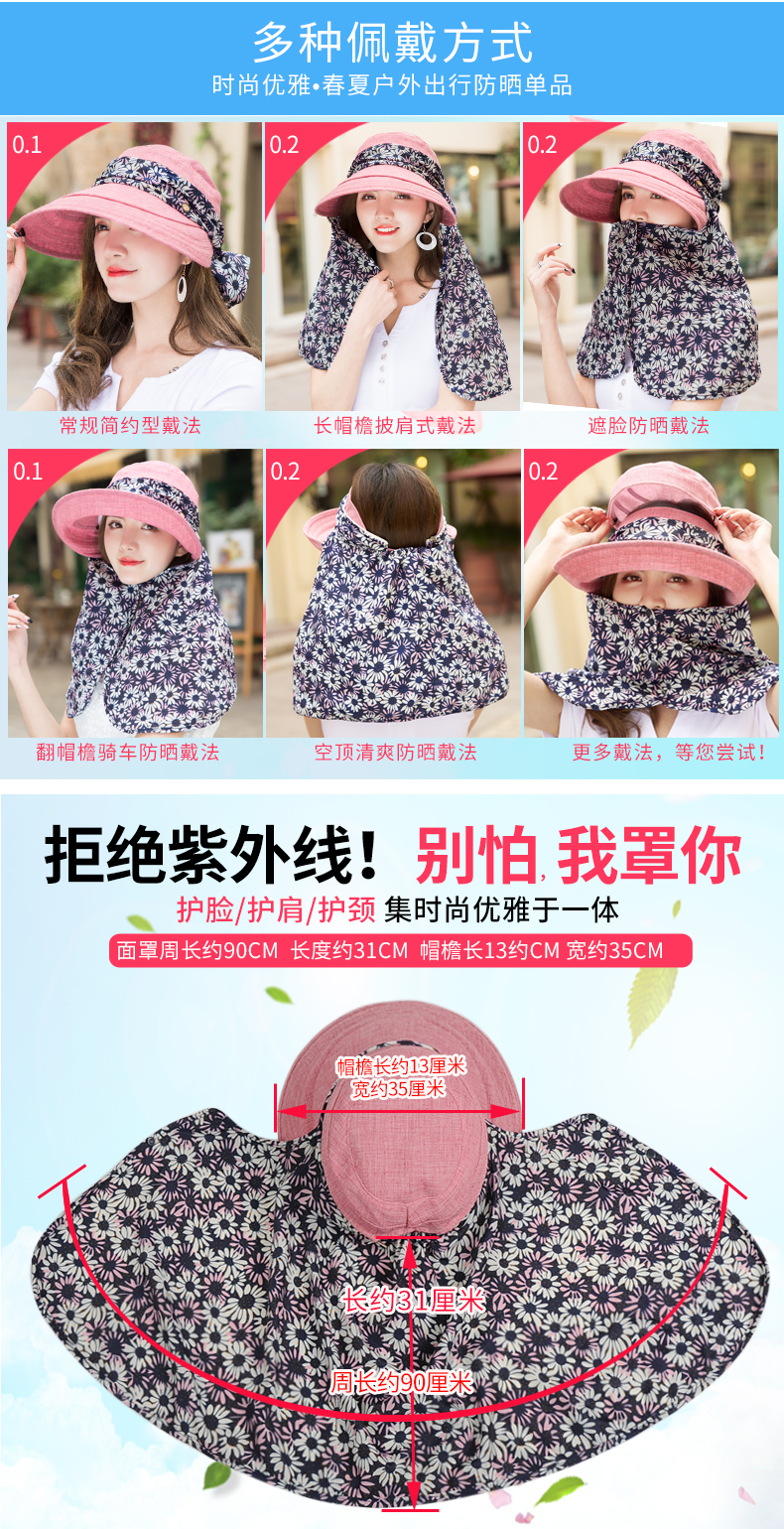 盛世尼曼帽子女夏天遮阳帽户外出游防晒帽骑车运动帽遮脸太阳帽潮