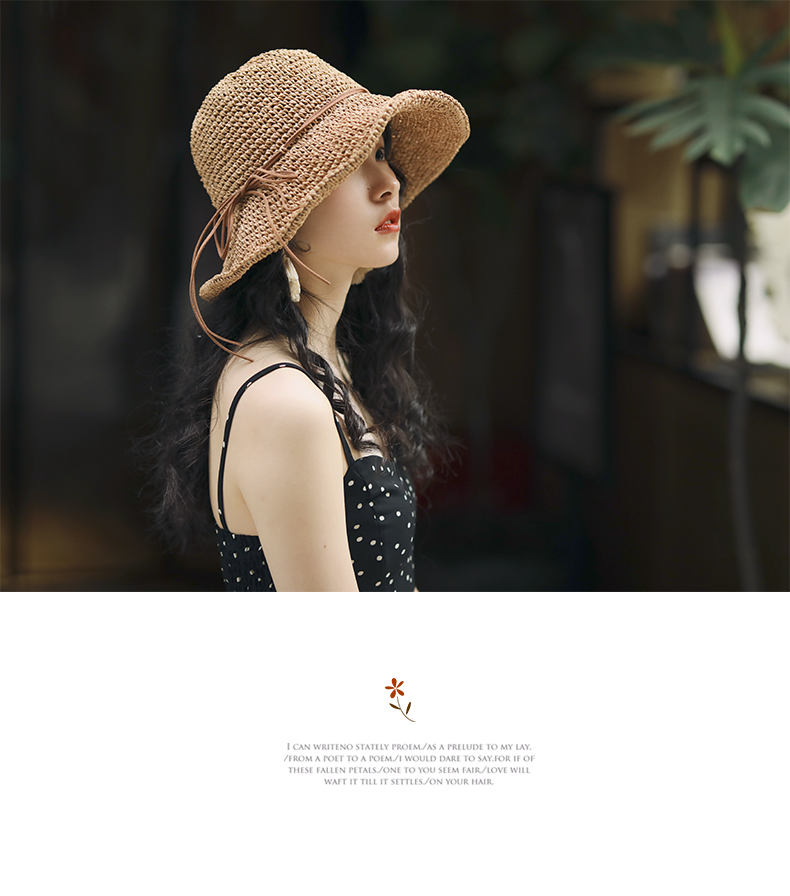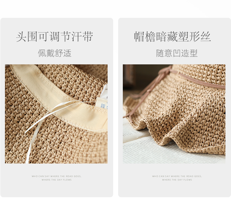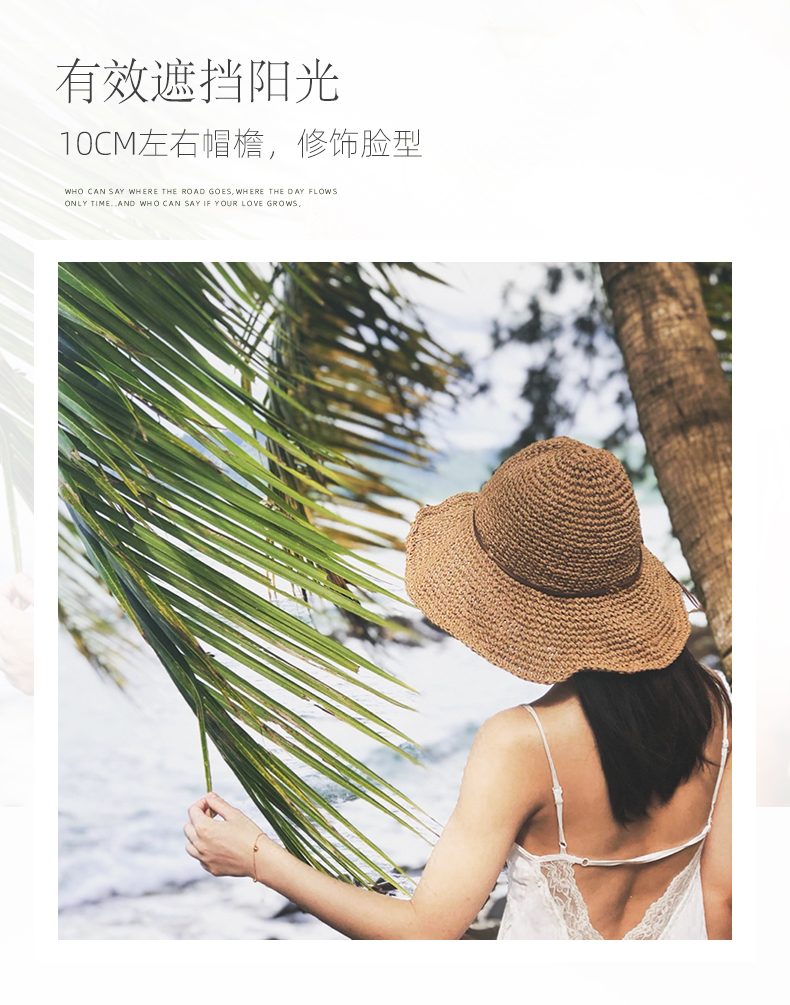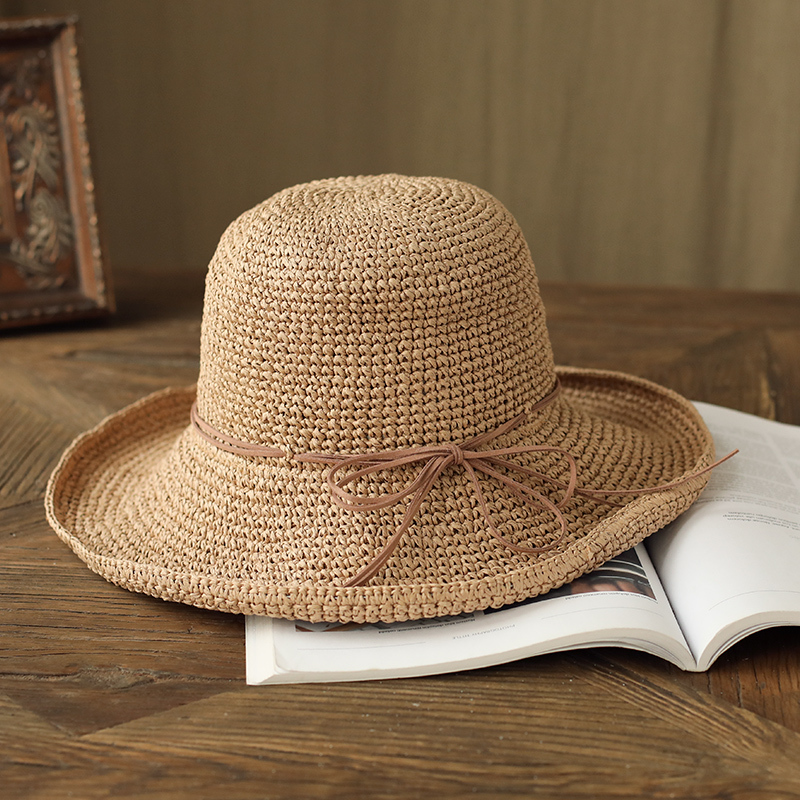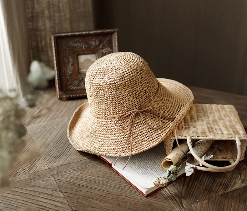 盛世尼曼草帽女夏天太阳帽大沿可折叠卷边遮阳帽出游沙滩帽蝴蝶结休闲凉帽帽子
