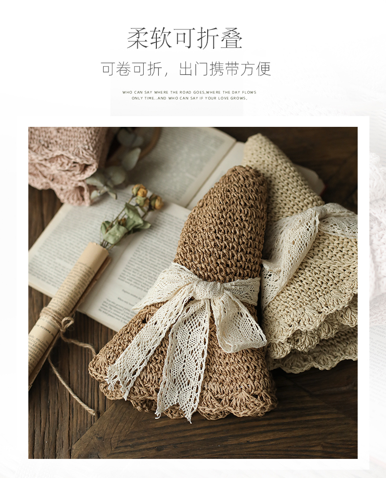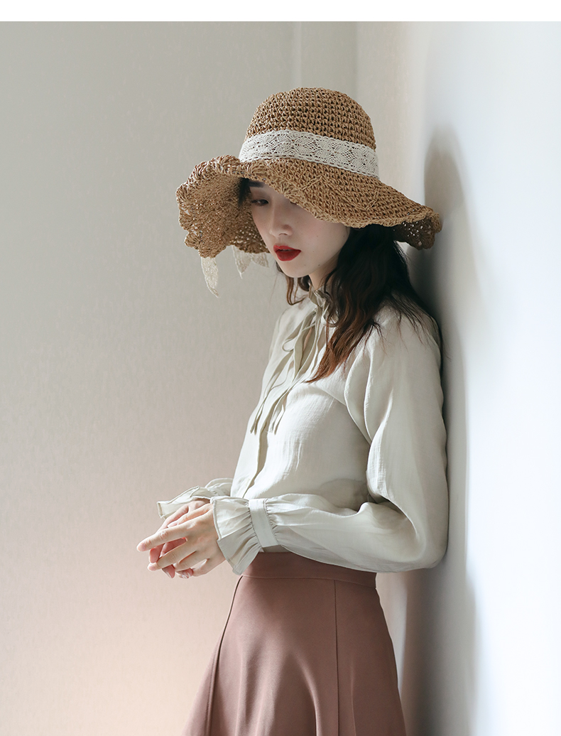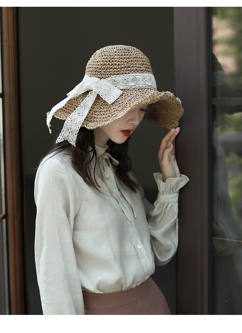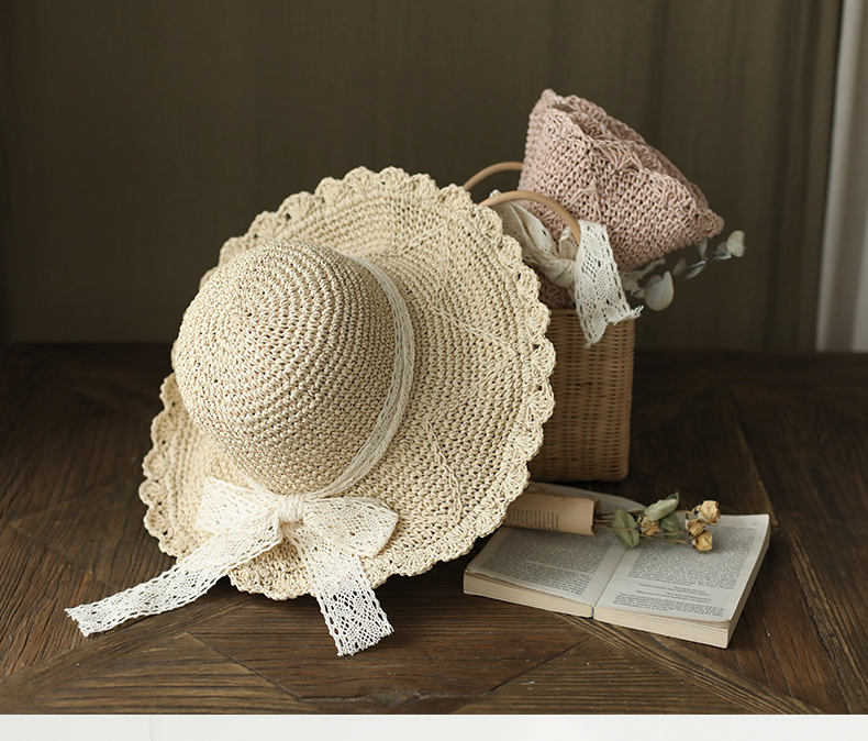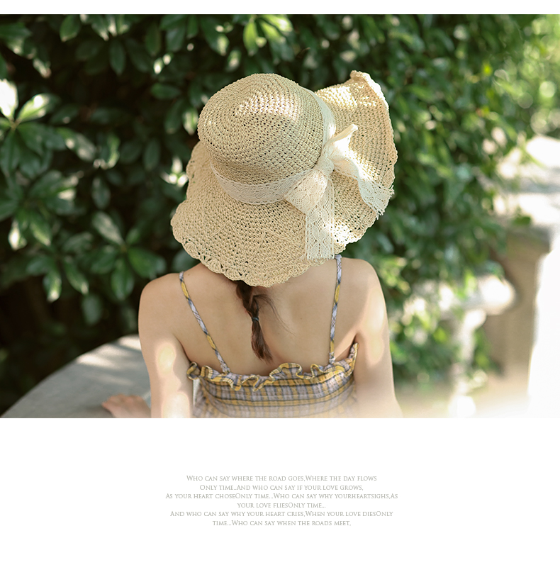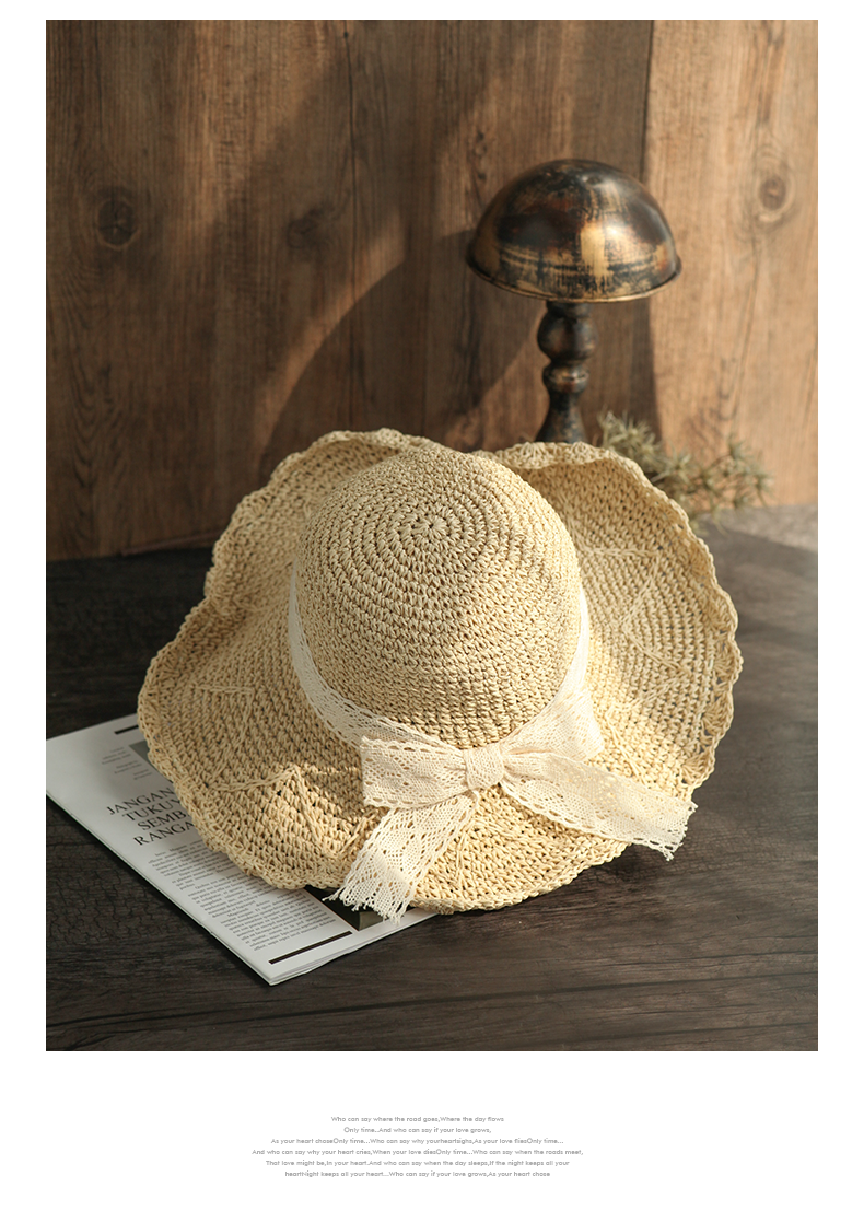 盛世尼曼草帽女夏天甜美蕾丝蝴蝶结遮阳帽海边度假太阳帽大檐可折叠沙滩帽帽子