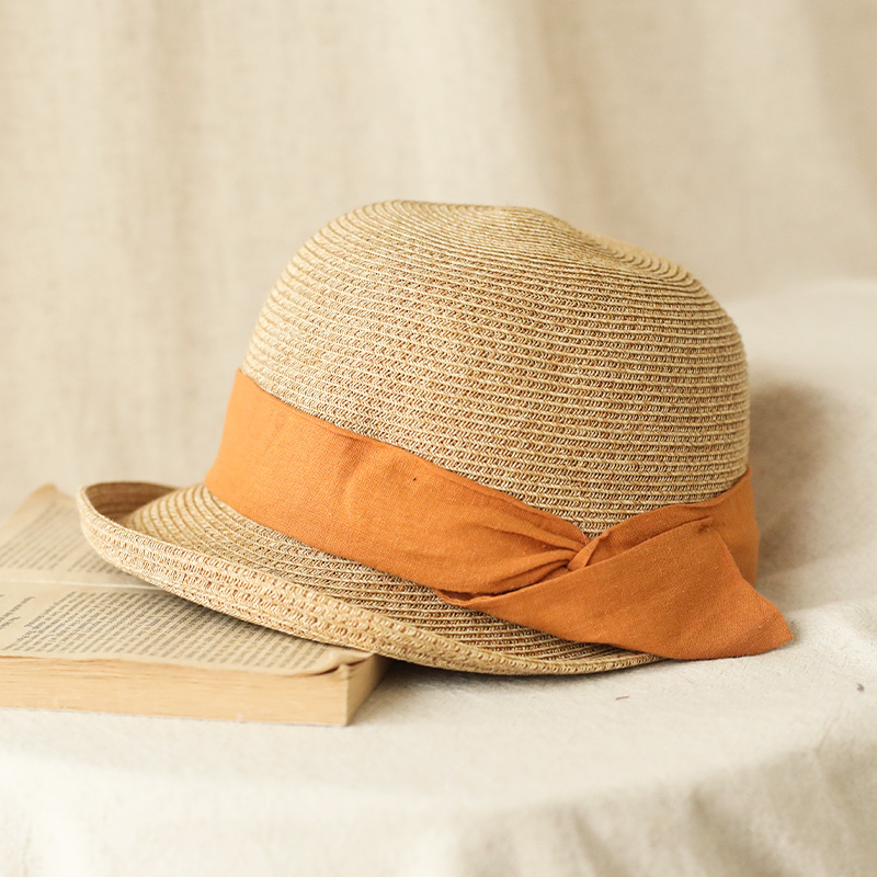 盛世尼曼日系小沿草帽女春夏季休闲韩版卷边盆帽可折叠气质百搭复古遮阳帽帽子