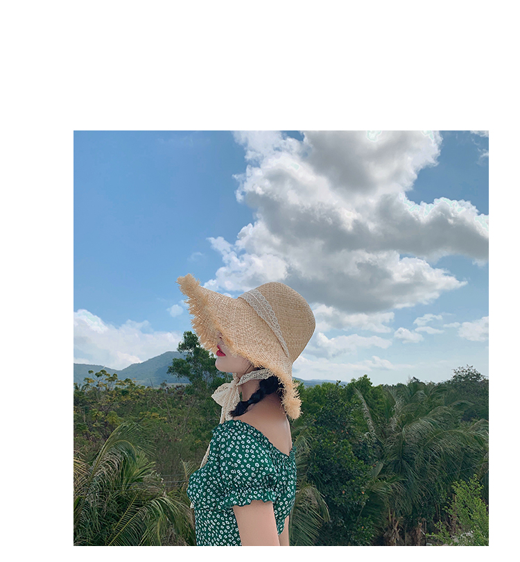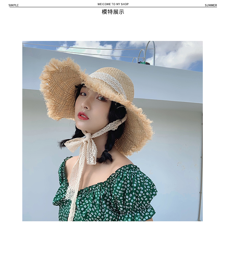 盛世尼曼帽子女夏小清新可折叠编织草帽沙滩大檐防晒遮阳帽韩版百搭潮夏天帽子 米色