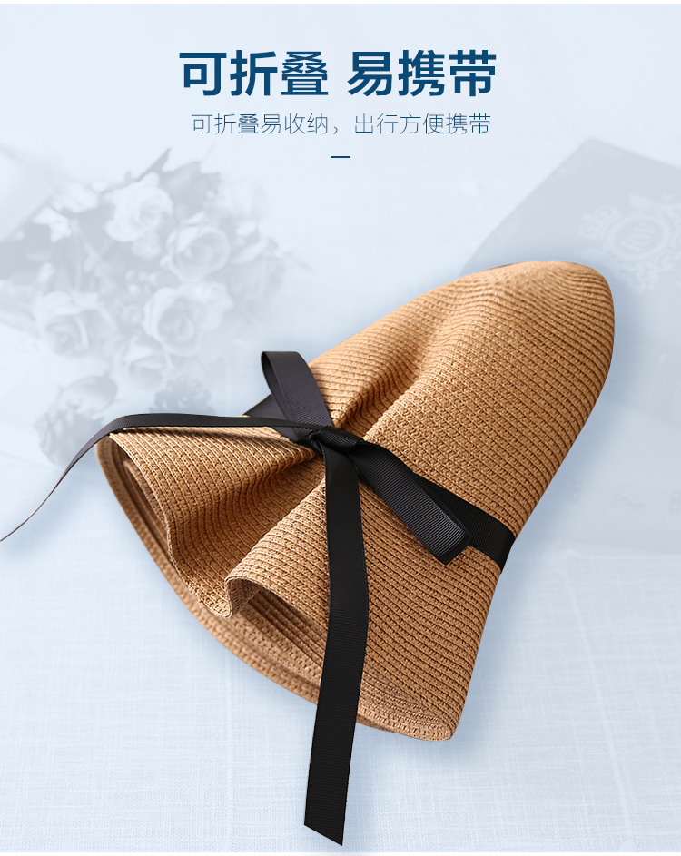 盛世尼曼帽子女夏天百搭草帽 海边度假沙滩帽 小清新大檐防晒遮阳帽太阳帽帽子