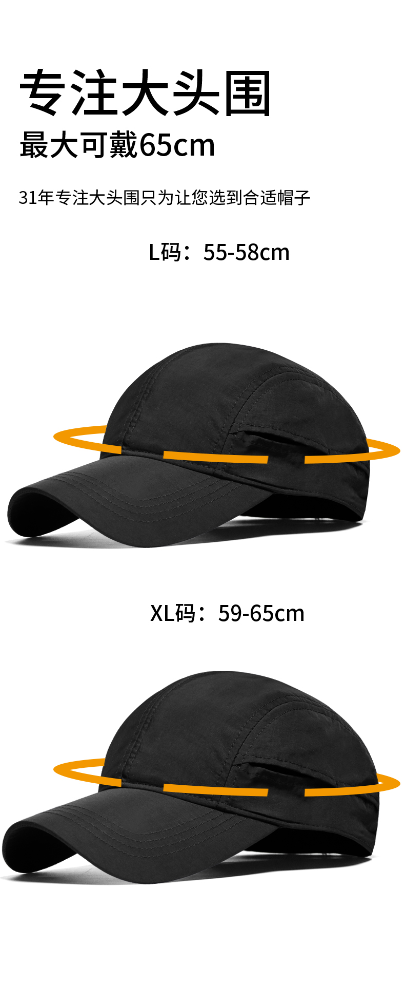 盛世尼曼大头围后封口帽子男夏天韩版潮速干防晒棒球帽大号遮阳太阳帽男士帽子